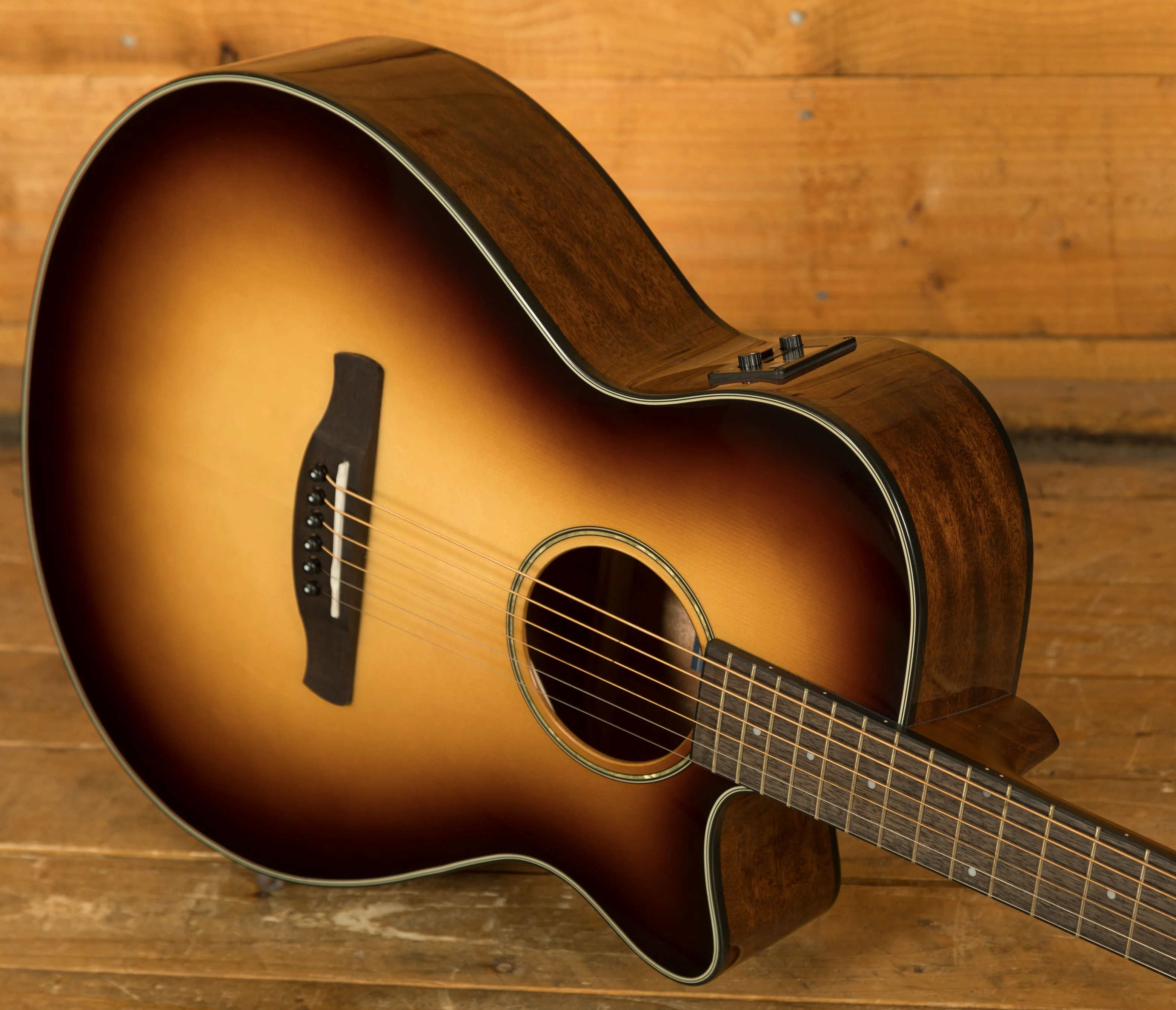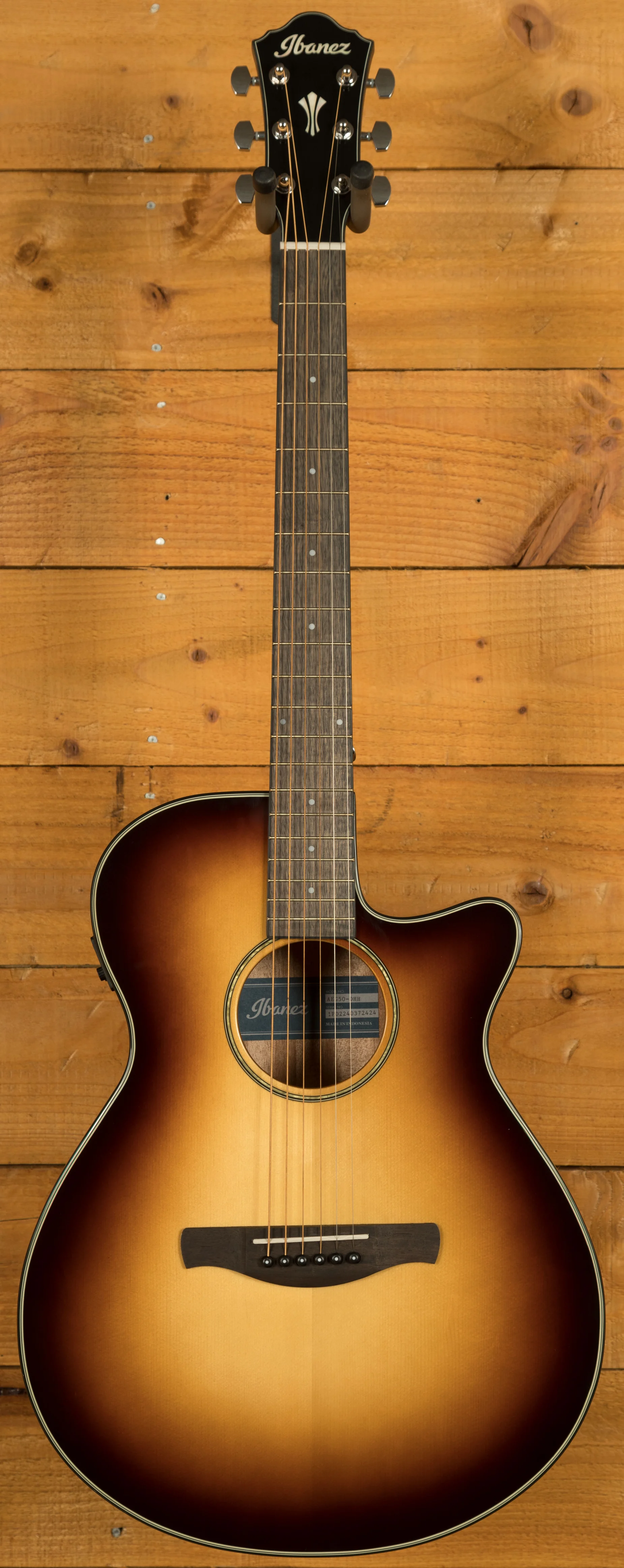 Electronics include the Ibanez T-Bar II undersaddle pickup and AEQ-TTS preamp with onboard tuner. The simple Volume and Shape controls allow quick tone adjustments, from warm and full to bright and crisp. The LCD display ensures visibility in any setting.
