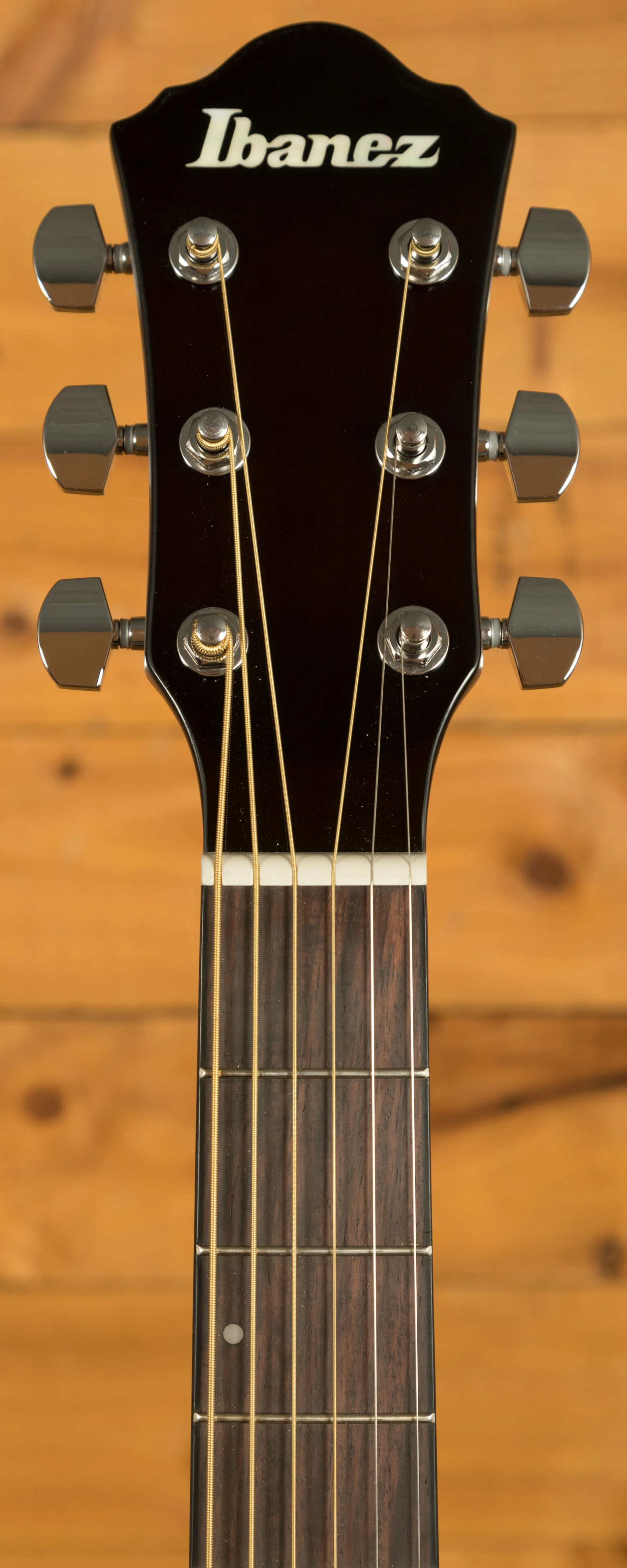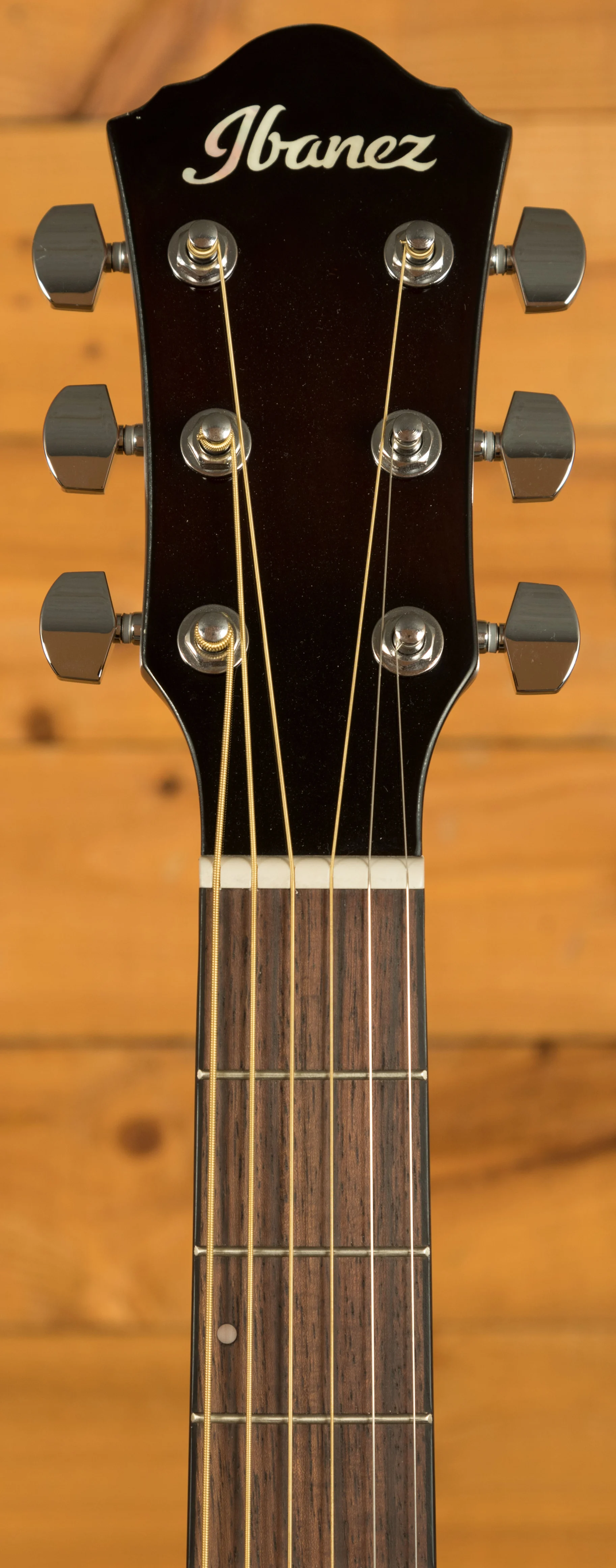Electronics include a Fishman S-Core undersaddle pickup and Ibanez AEQ-SP1 preamp with onboard tuner. The control panel features bass, mid, treble, volume, phase, and tuner switches, giving you full tonal control with intuitive layout.