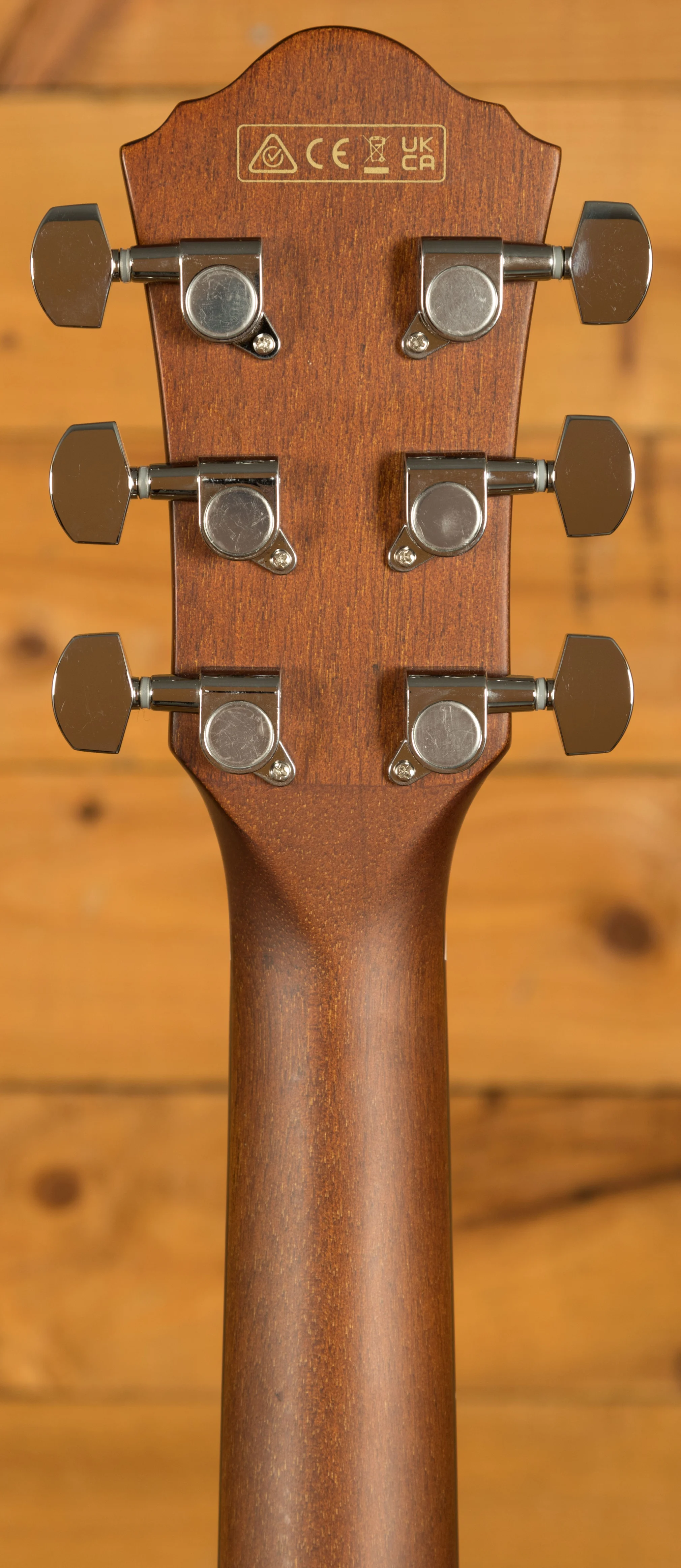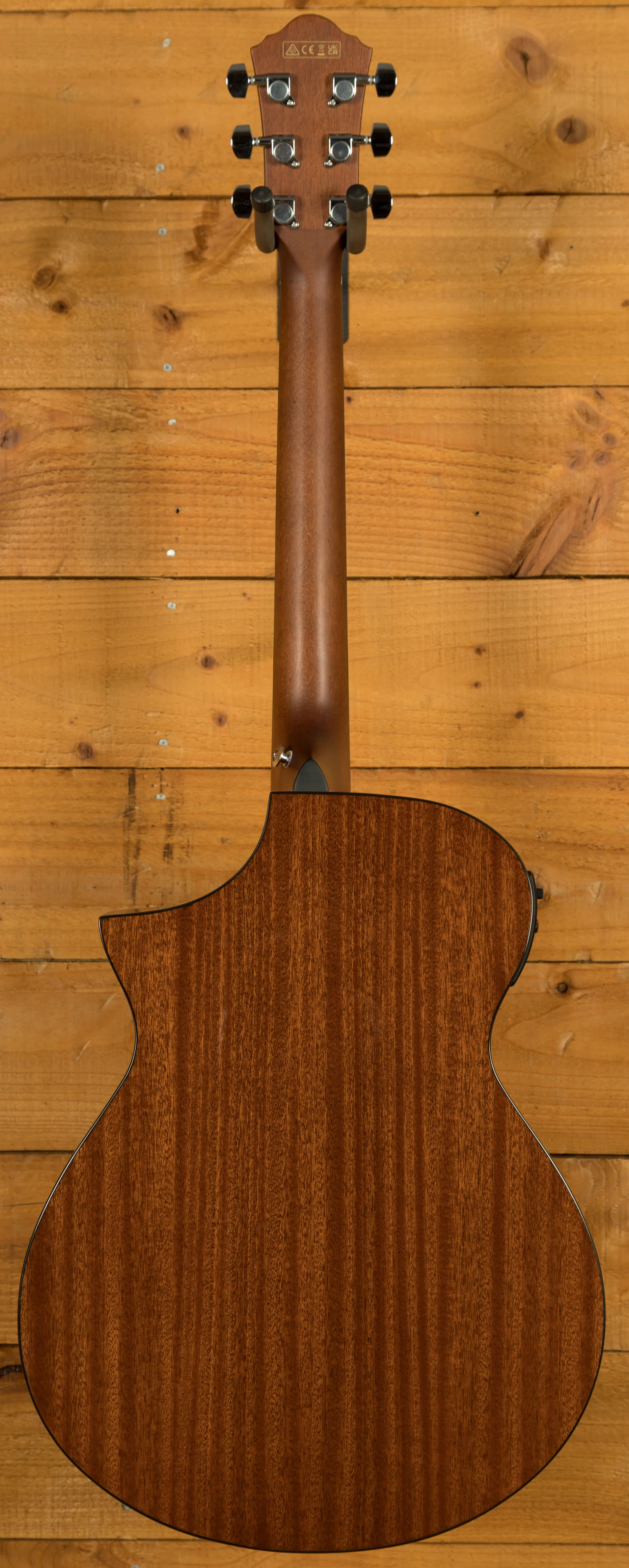 The Comfort Grip nyatoh neck and rosewood fretboard offer smooth playability across 20 frets. A rosewood top-loading bridge allows fast string changes without pins. Chrome die-cast tuners and acrylic rosette complete the clean aesthetic.