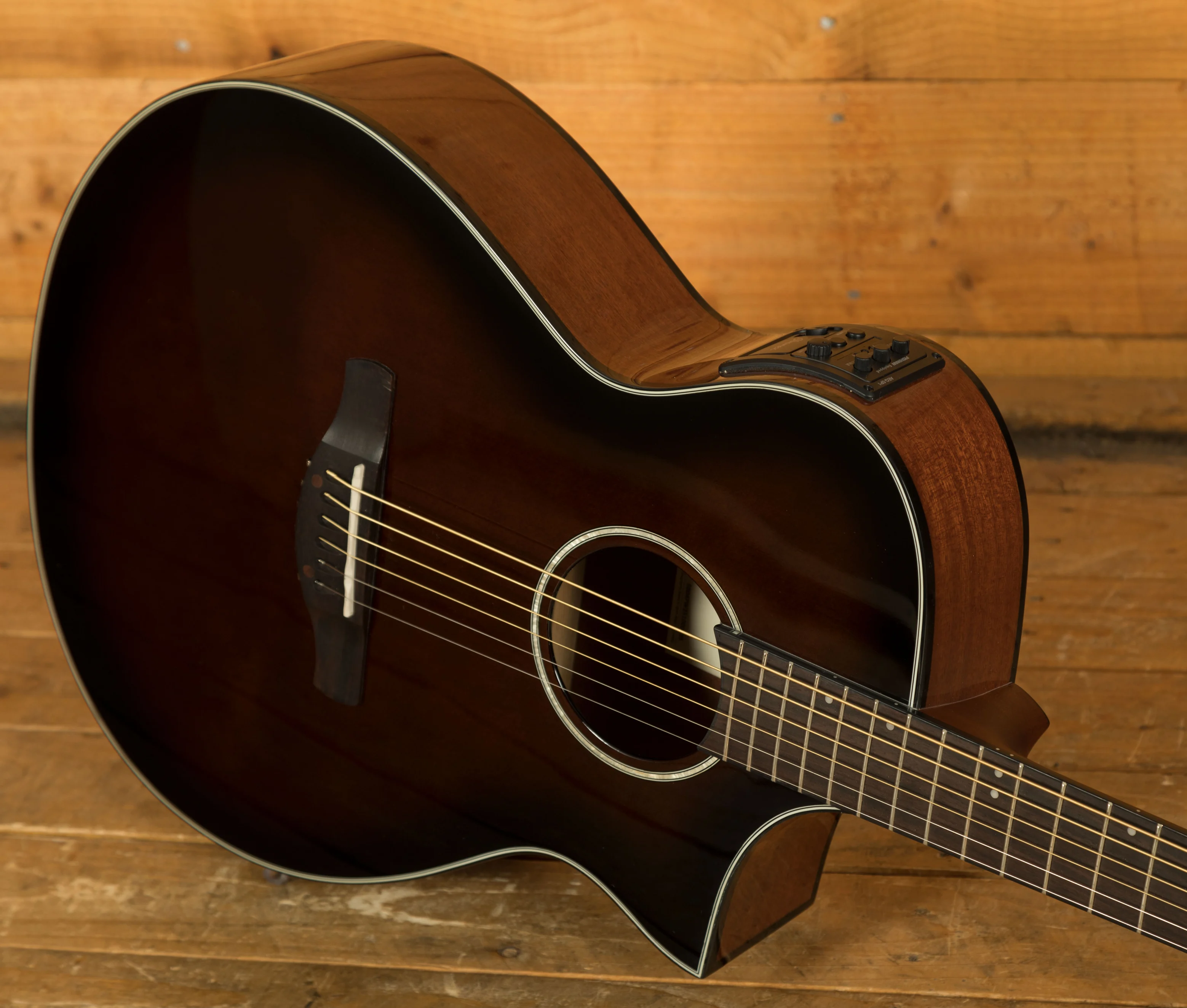 The AEWC11 in Dark Violin Sunburst High Gloss is a sleek electro-acoustic designed for electric players seeking acoustic tone with familiar feel. Its AEWC body features a contoured shape, soft Florentine cutaway, and forearm bevel for maximum comfort whether seated or standing.