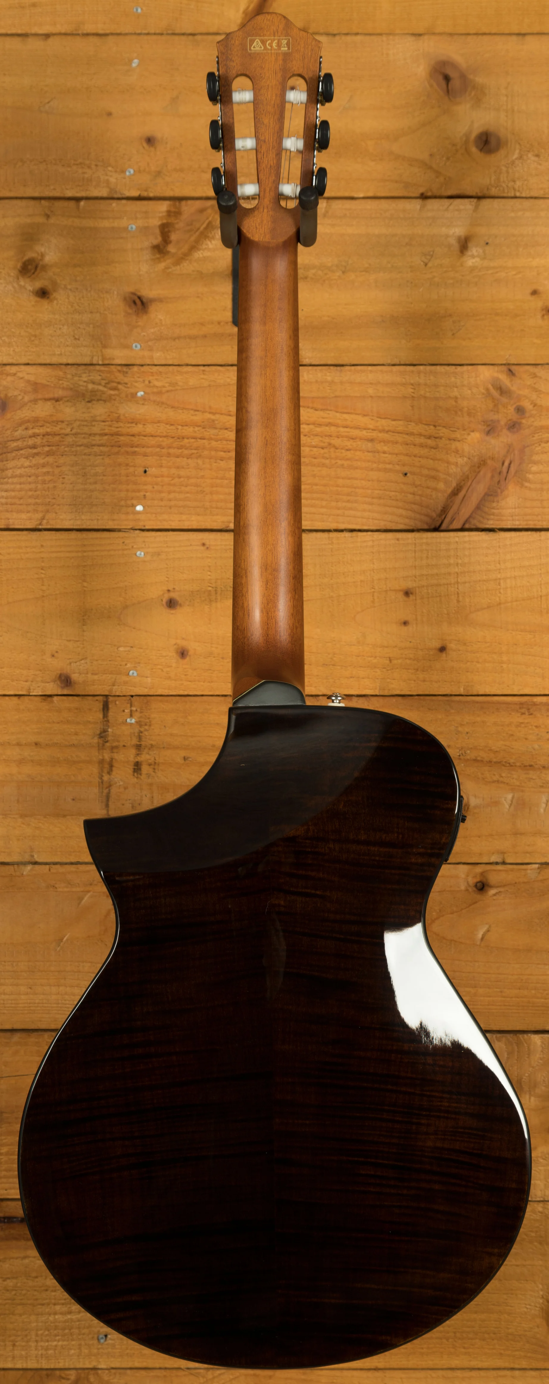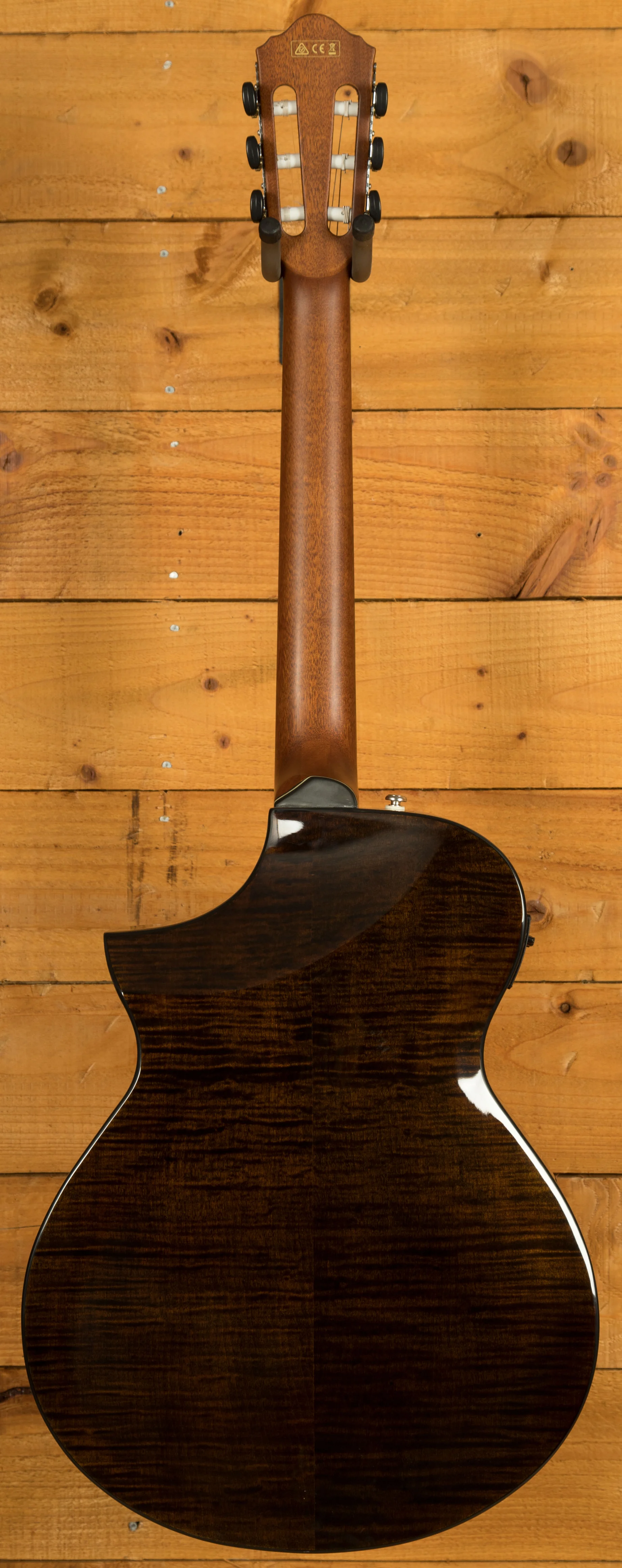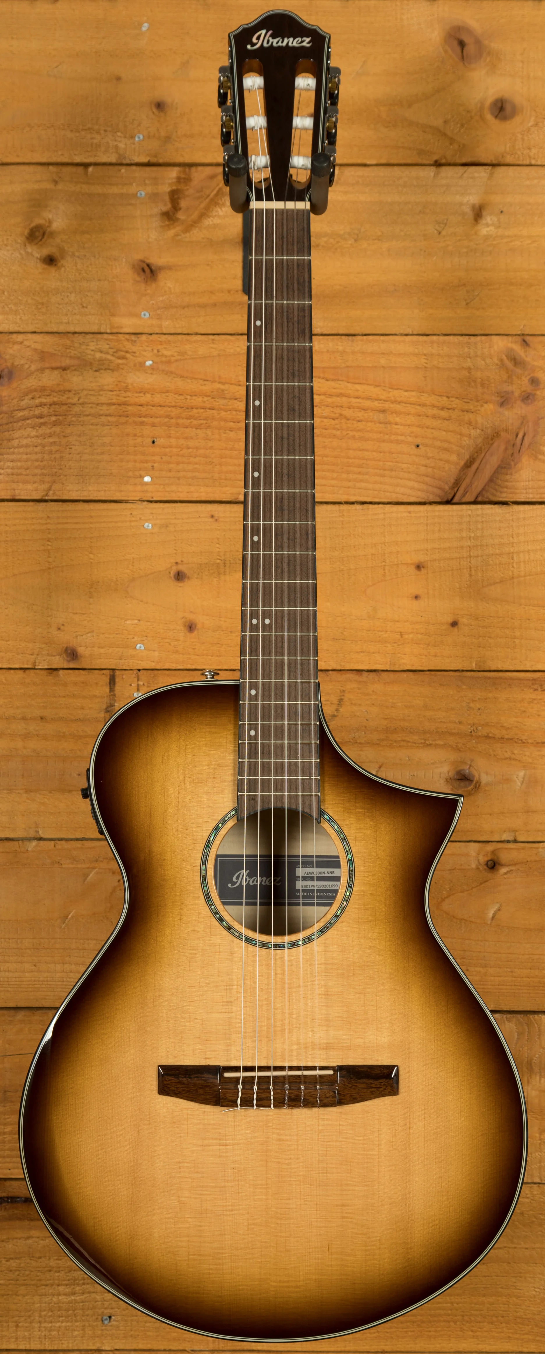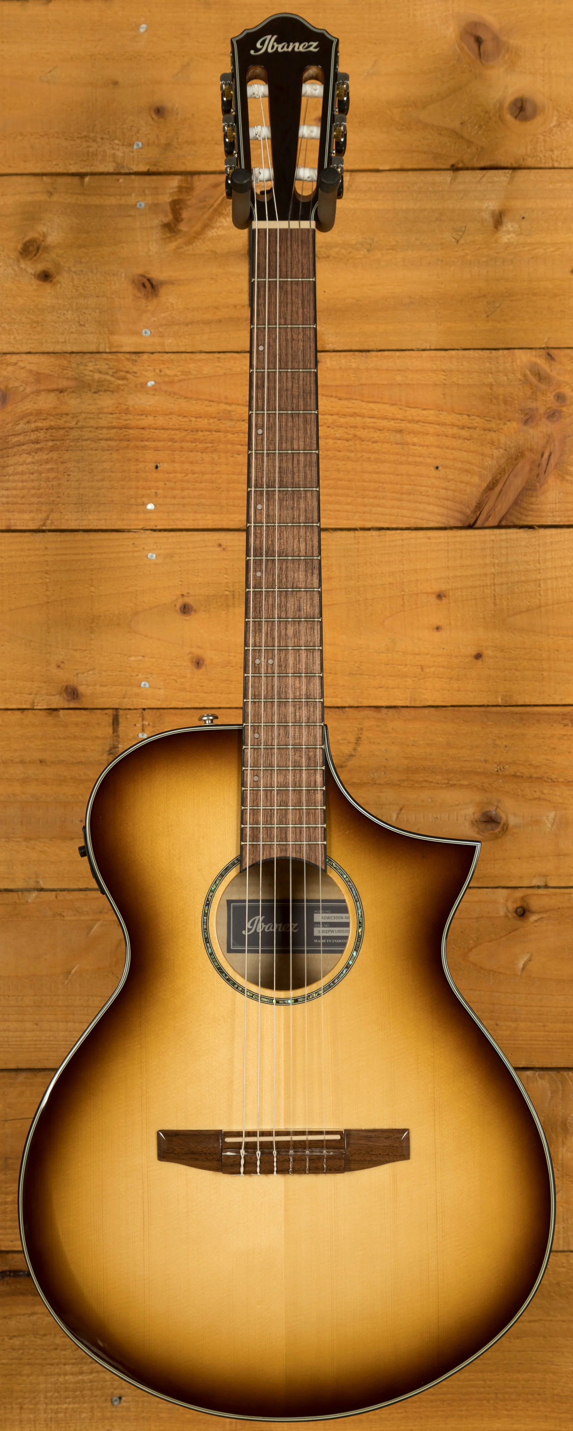 The AEWC300N is a modern nylon-string electro-acoustic designed for comfort, clarity, and stage-ready performance. Finished in Natural Browned Burst High Gloss, it features a solid Sitka spruce top paired with flamed maple back and sides for a rich, balanced tone and striking visual appeal.