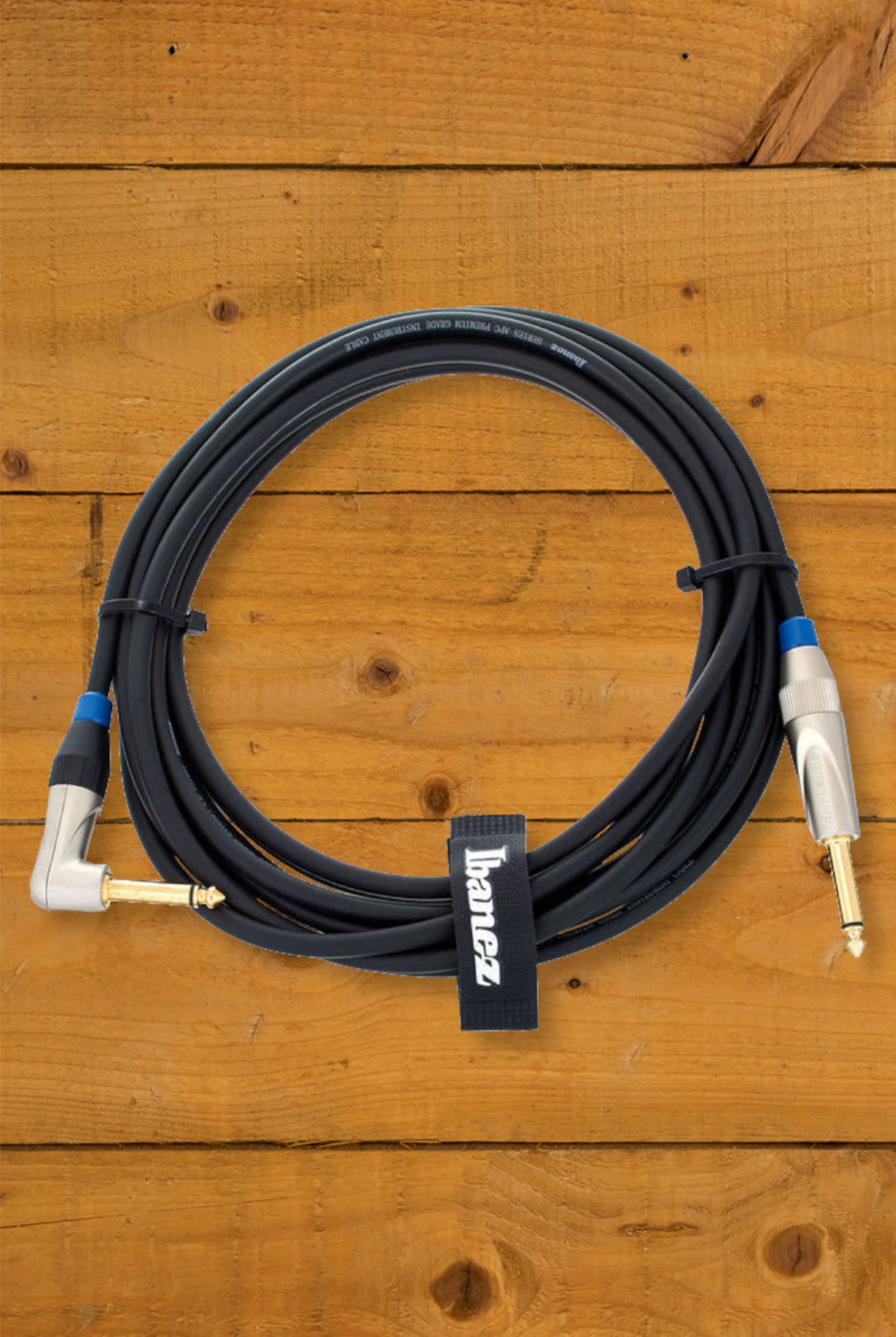 The cable features Amphenol plugs, known for their durability and strong, secure connections. Amphenol is a trusted brand in the audio industry, and their use here reflects Ibanez's commitment to high-quality components. These plugs are designed to resist wear and tear over time, ensuring the cable remains functional even after repeated use.
