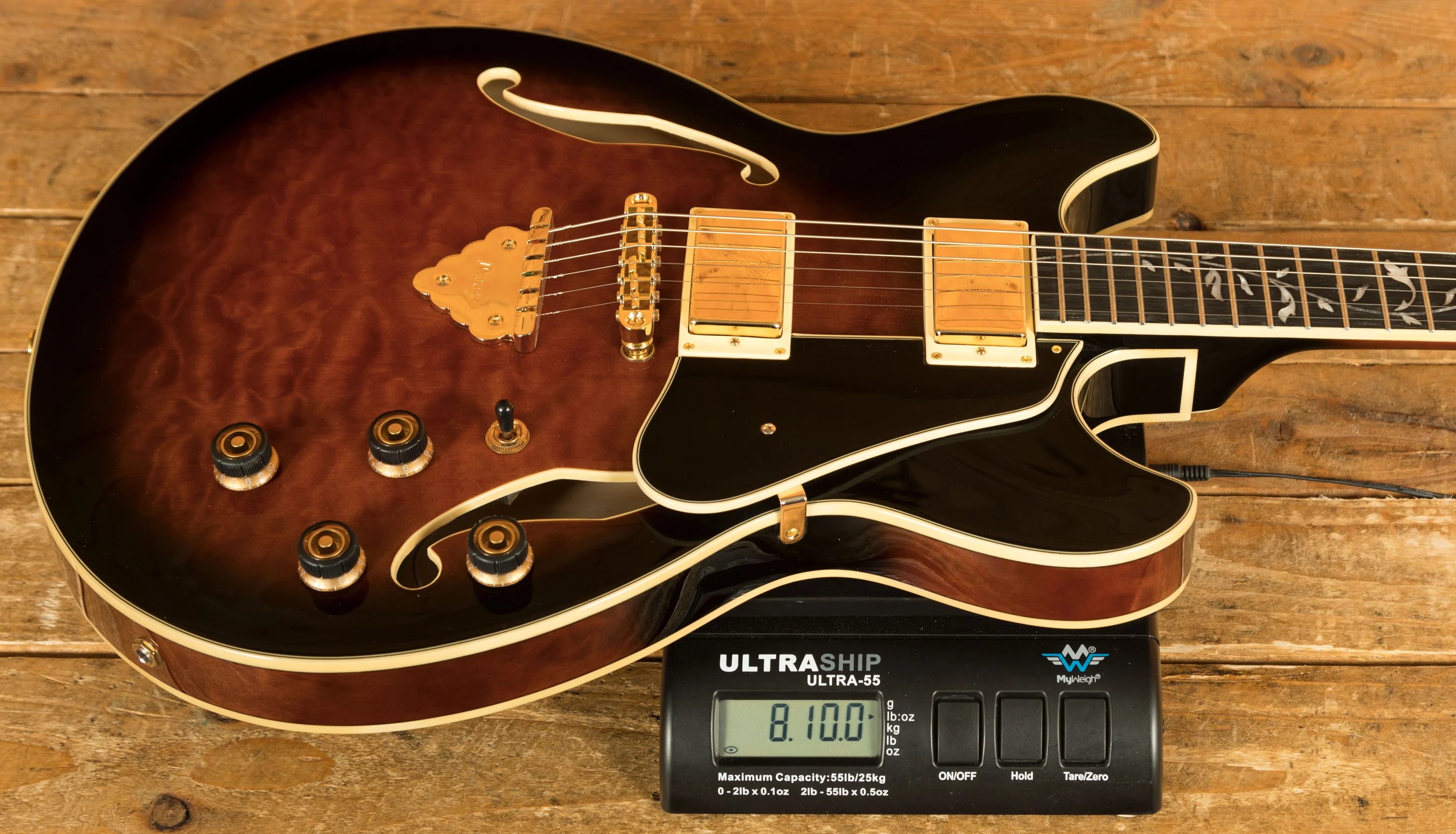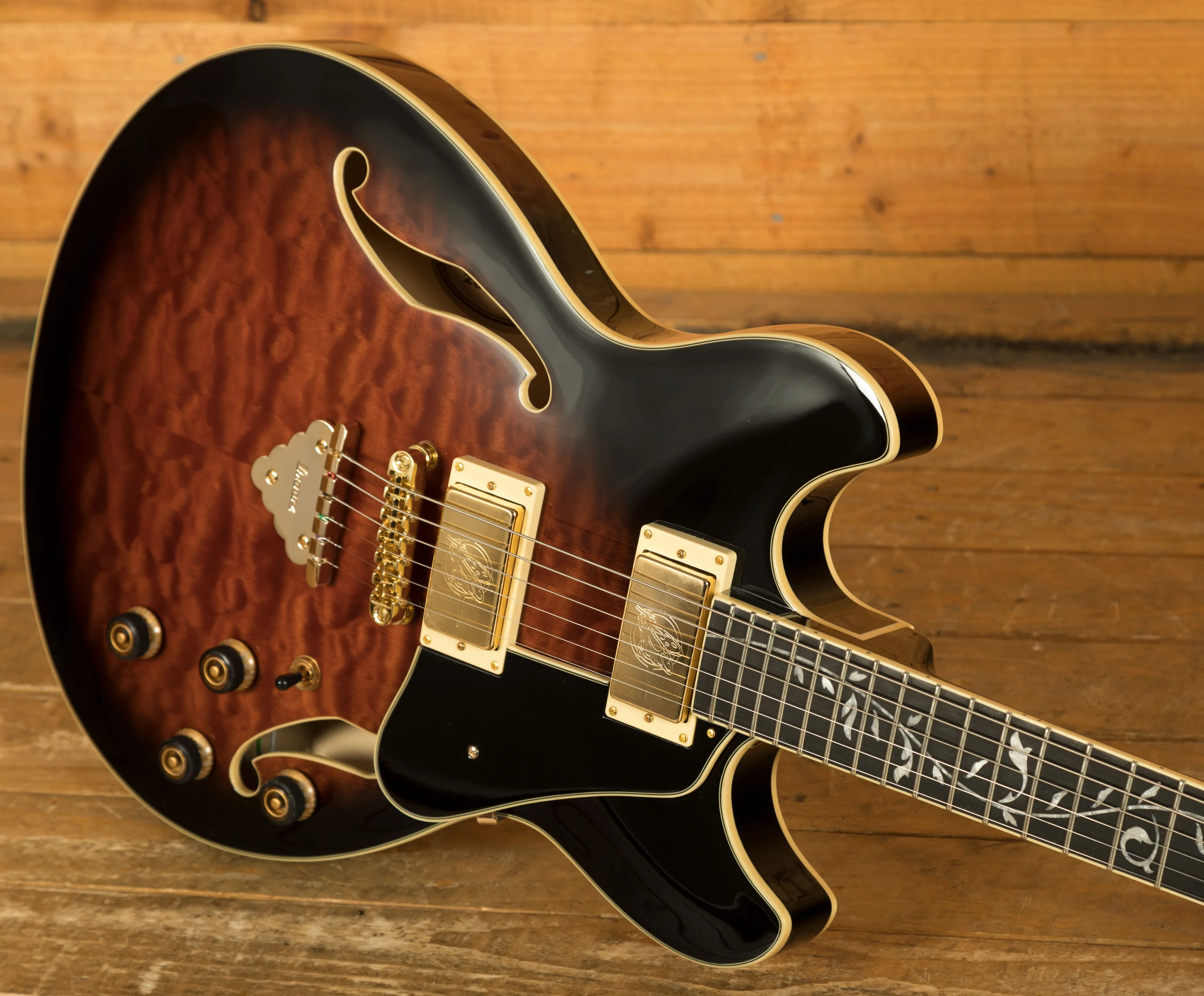 Equipped with Super 80 pickups, the AS93QMSP delivers a bright, articulate sound with excellent clarity, ideal for clean tones or detailed chord work. The Gibraltar Performer bridge contributes to consistent tuning stability and extended sustain, while its low-positioned saddles improve playing comfort. Completing the hardware, the Quik Change Classic tailpiece allows for fast and efficient string changes, reducing downtime and making the guitar easier to maintain for both live performers and home players.