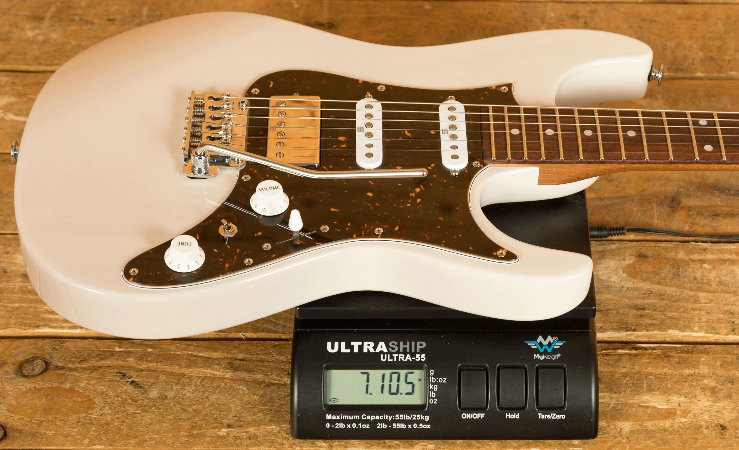 With an Alder body finished in Antique White Blonde you get stunning looks and rich, tight, natural tone. It looks real slick while the ergonomic body shape feels smooth, well balanced and poised for action.