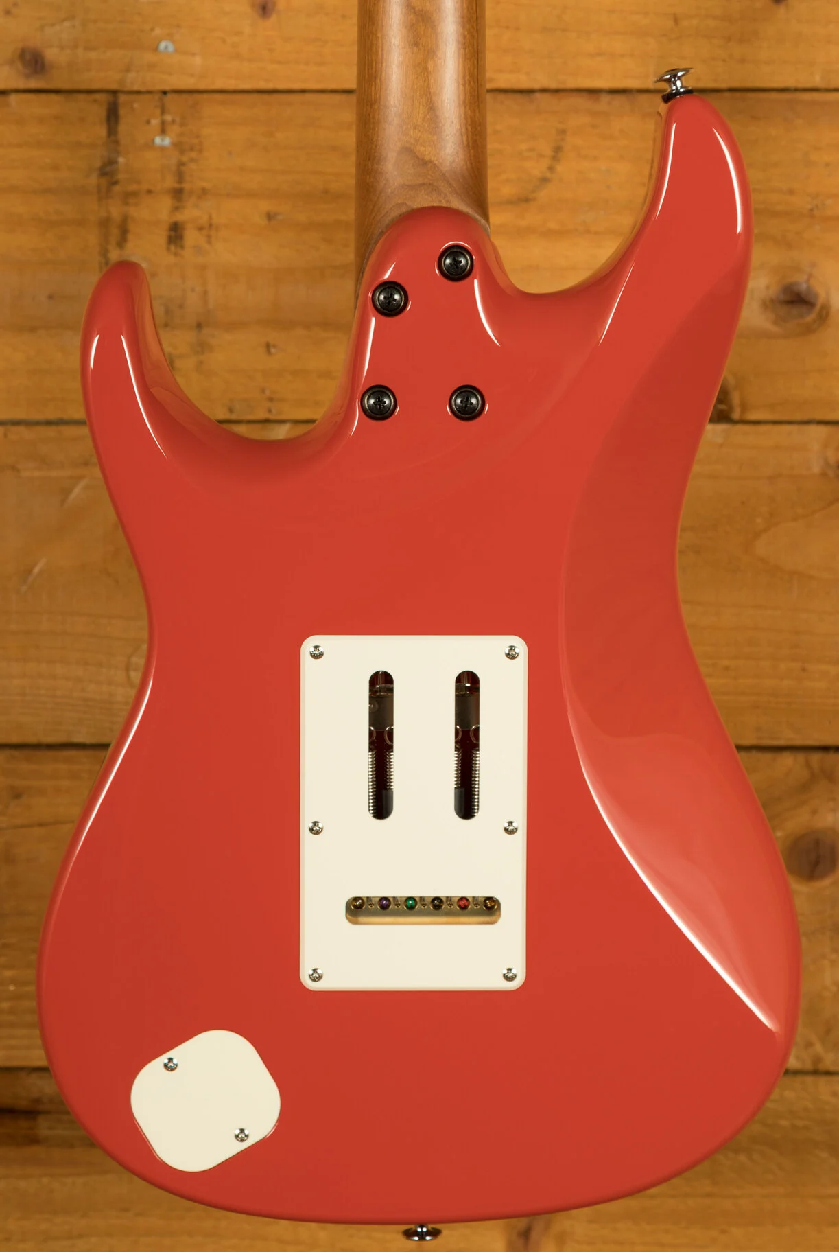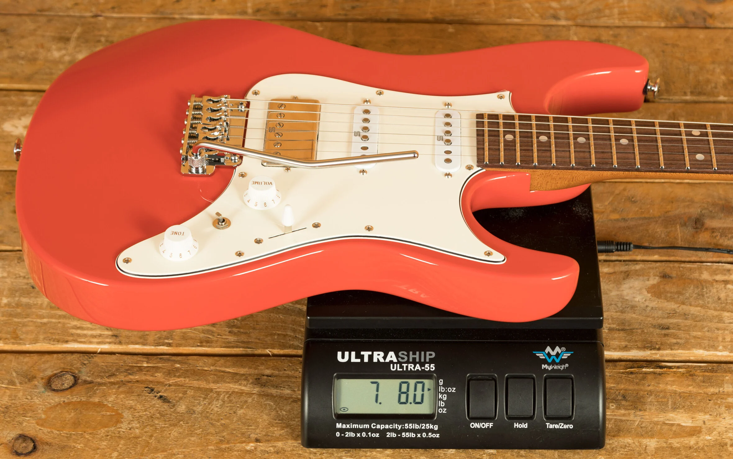 With an Alder body finished in Vermillion Red, you get stunning looks and rich, tight, natural tone. It looks real slick while the ergonomic body shape feels smooth, well balanced, and poised for action.
