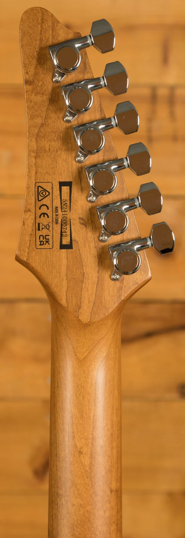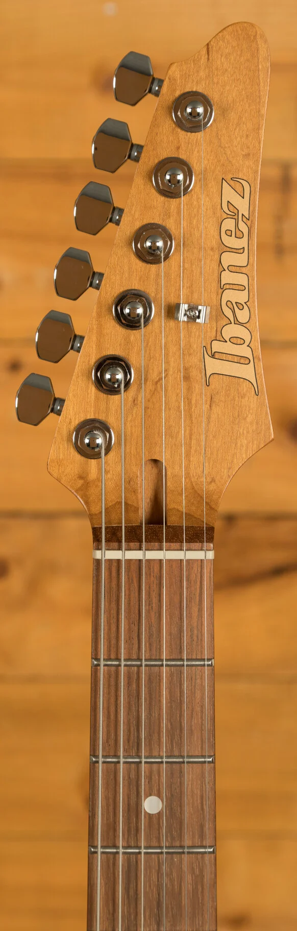 The neck of the AZ24S1F is crafted from Roasted Maple, a process that enhances the wood's stability, durability, and resistance to temperature and humidity changes. This results in a neck that is less prone to warping or shifting, ensuring consistent playability over time. The roasting process also imparts a subtle warmth to the neck's tone. The Jatoba fretboard, with its reddish-brown hue and smooth feel, adds a rich midrange and crisp high-end to the overall sonic palette. Jumbo stainless steel frets offer exceptional durability and a smooth playing surface, providing effortless bending and vibrato while ensuring long-lasting performance. Specs like the AZ neck profile, 25.5" scale length, and 305mm radius fretboard make this guitar feel slick to play.