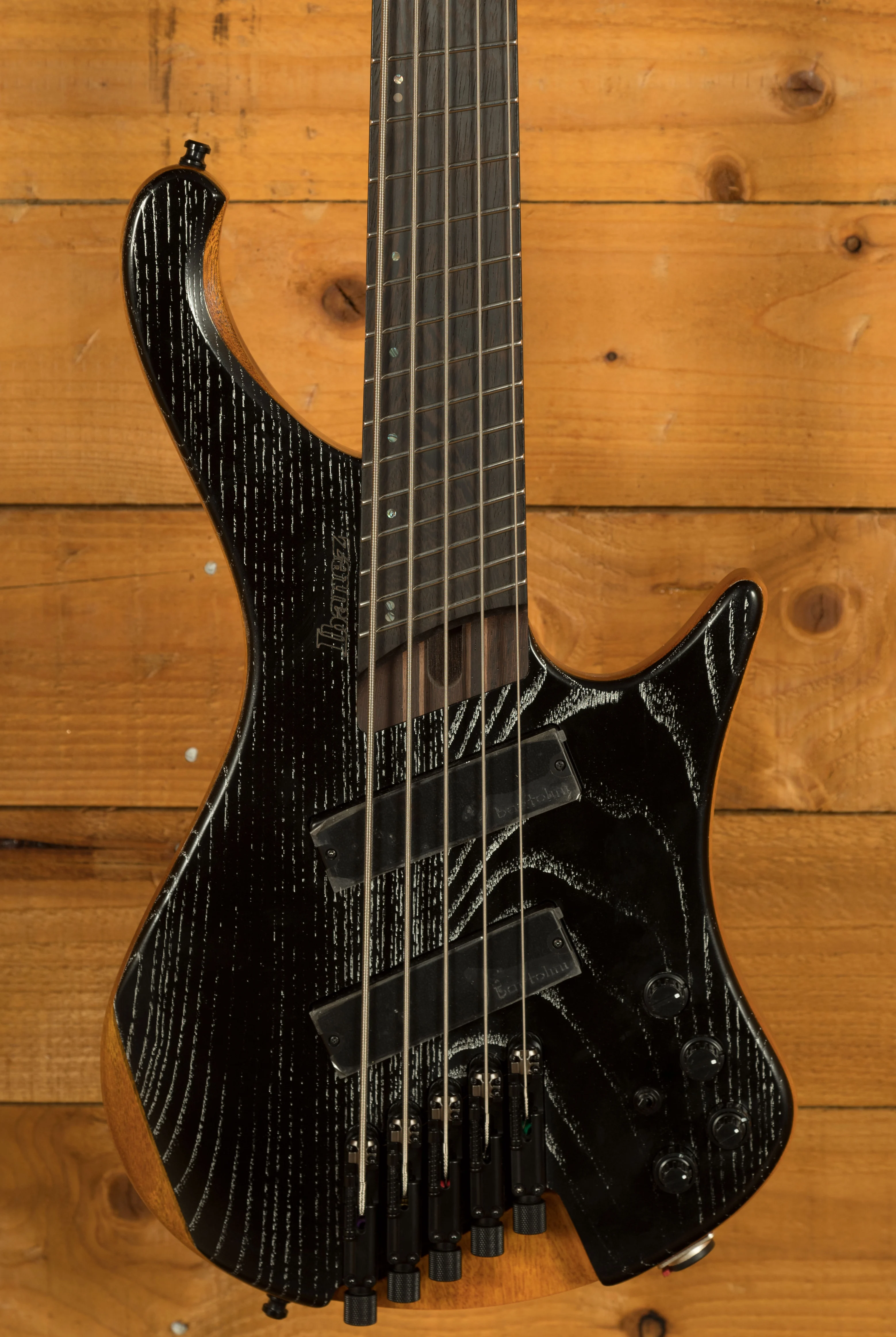 This multiscale bass runs from 35" on the low B to 33" on the G string, improving tension and clarity across all five strings. Bartolini BH2 pickups deliver tight lows, punchy mids, and smooth highs. The Vari-Mid 3-band EQ with bypass switch and passive tone control gives you full tonal control with minimal fuss.