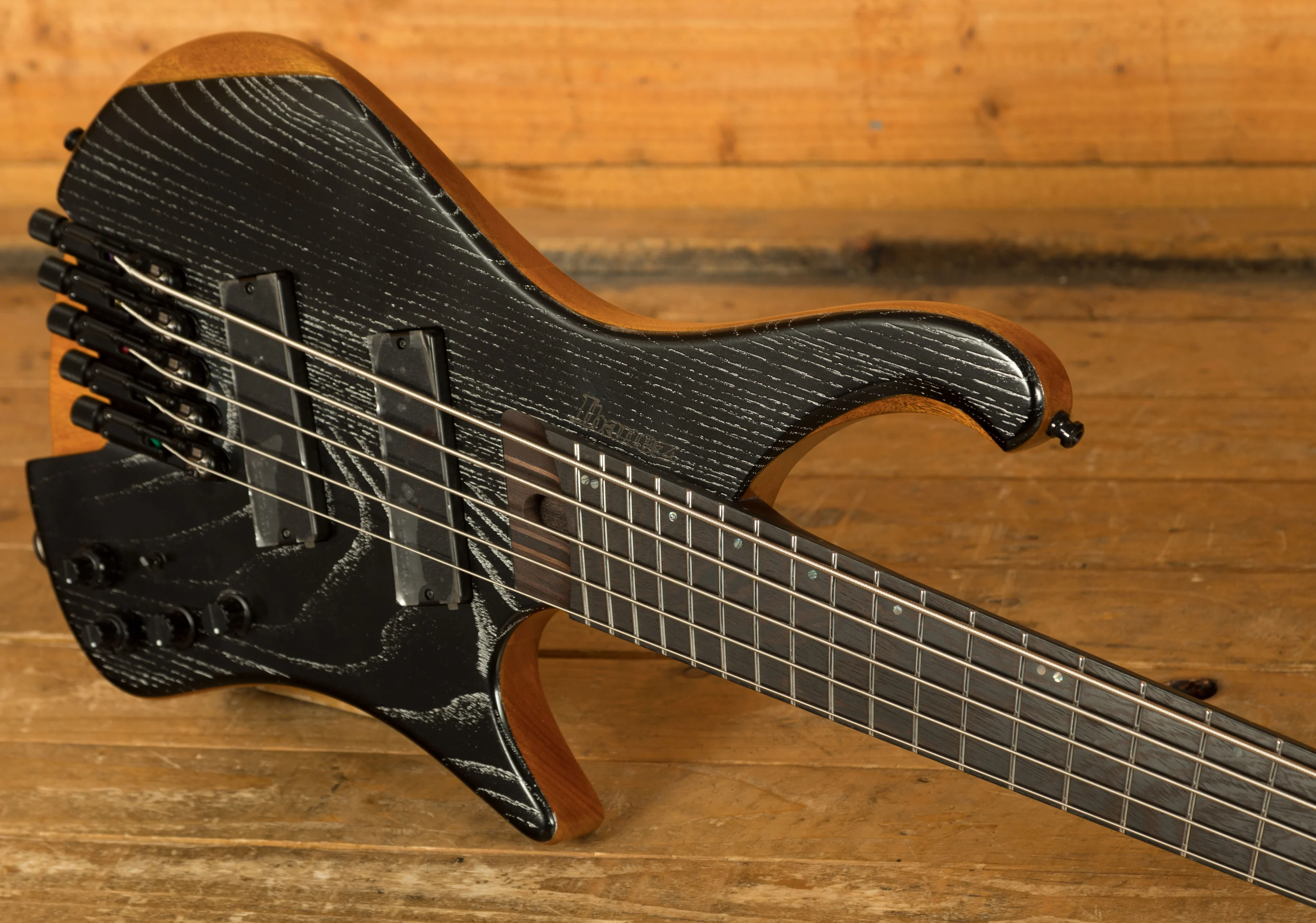 The EHB1135MS is a flagship model from Ibanez's Bass Workshop series, built for modern players who demand comfort, clarity, and cutting-edge design. Finished in Silver Wave Black Low Gloss, it pairs sleek aesthetics with serious performance.