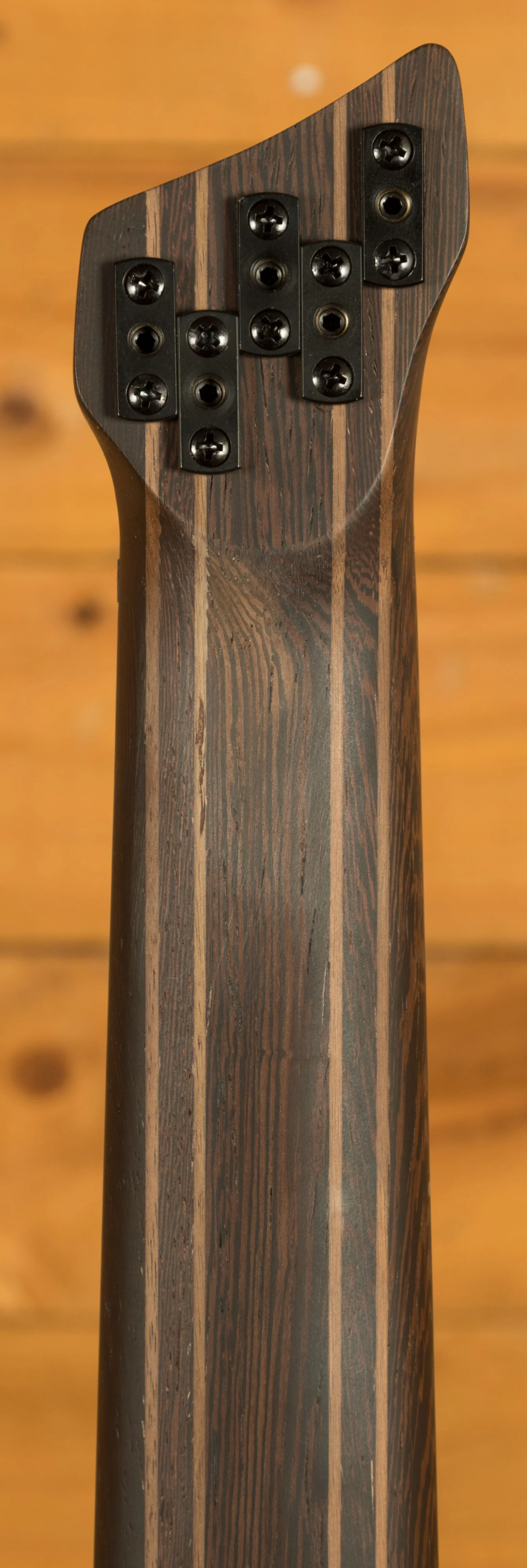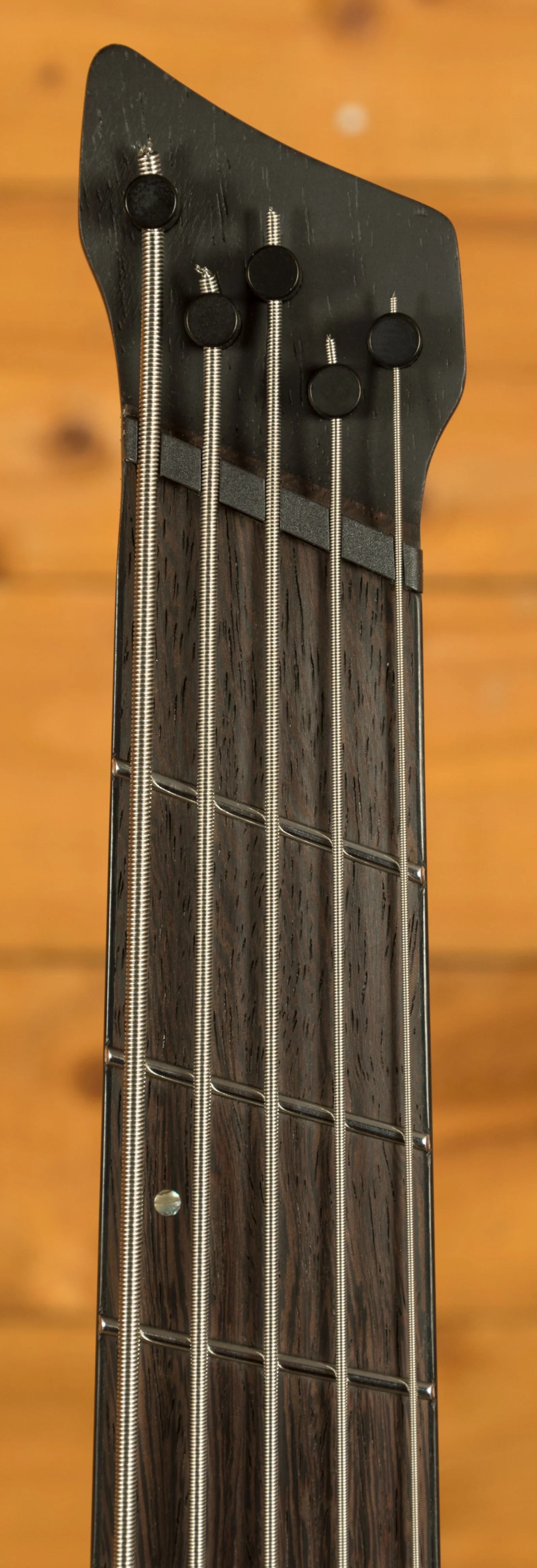 The bass's Panga Panga fretboard, with its beautiful wood grain, produces a tight low and mid range, along with a sharp attack on the high end, enhancing the overall sonic palette.