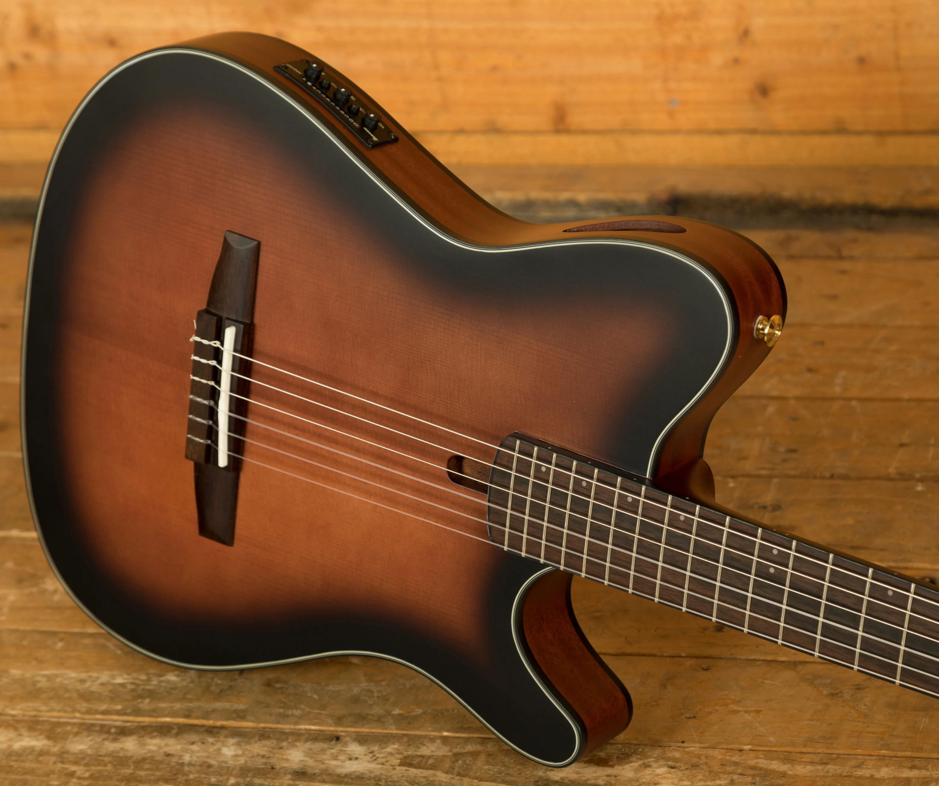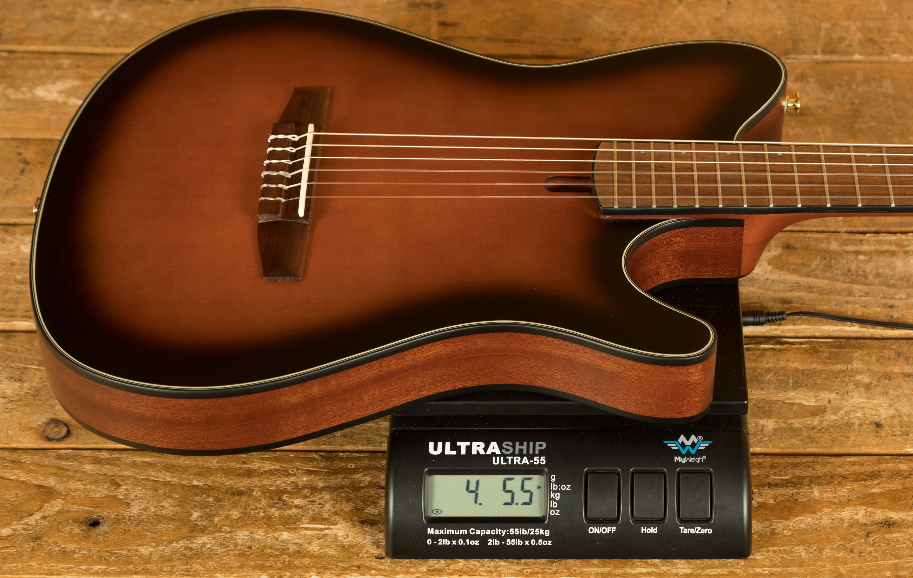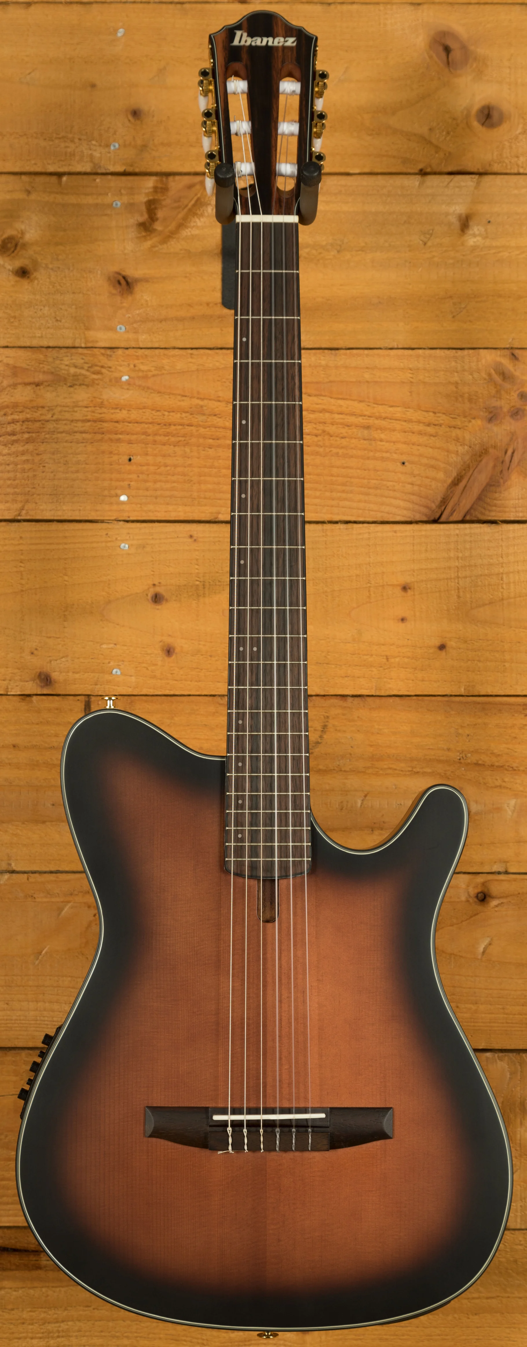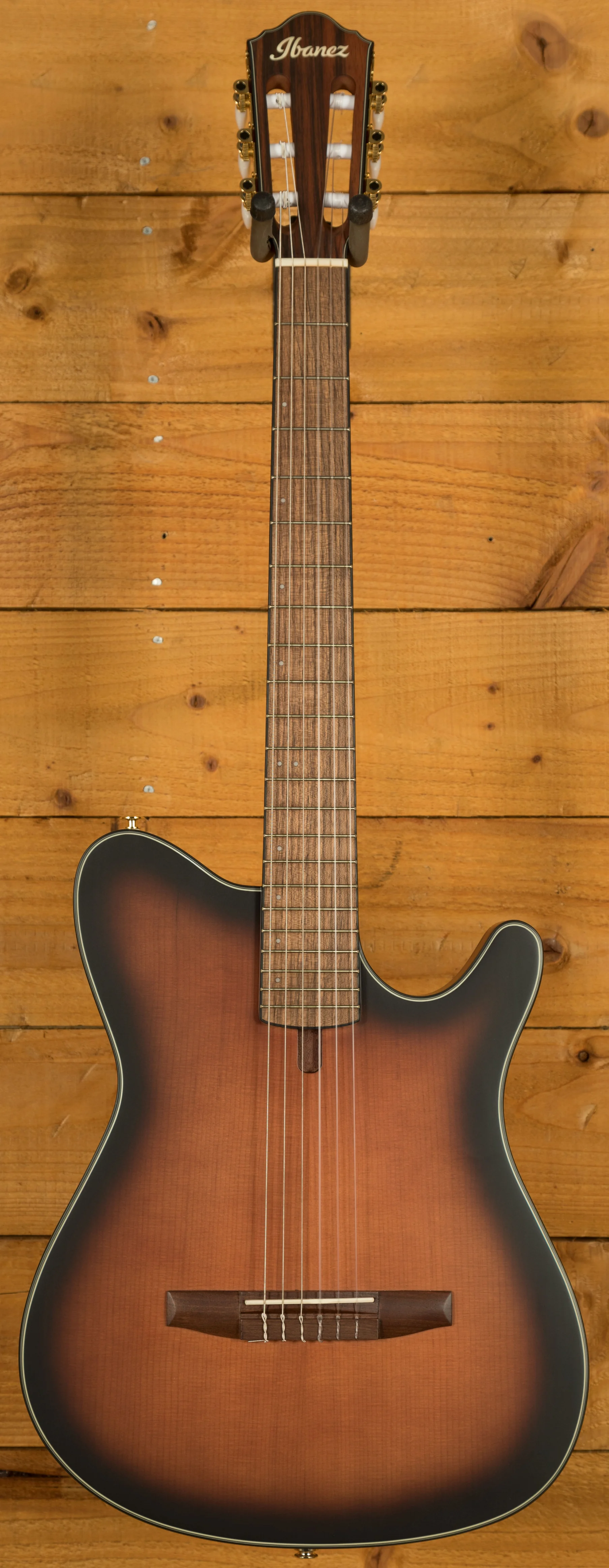When Ibanez set out to create with the FRH Series was a guitar with all the tonality of a nylon string guitar but with a playability and feel that would be more at home in the hands of an electric guitar player. What they created was a fully hollow body, nylon-strung version of their FR model.