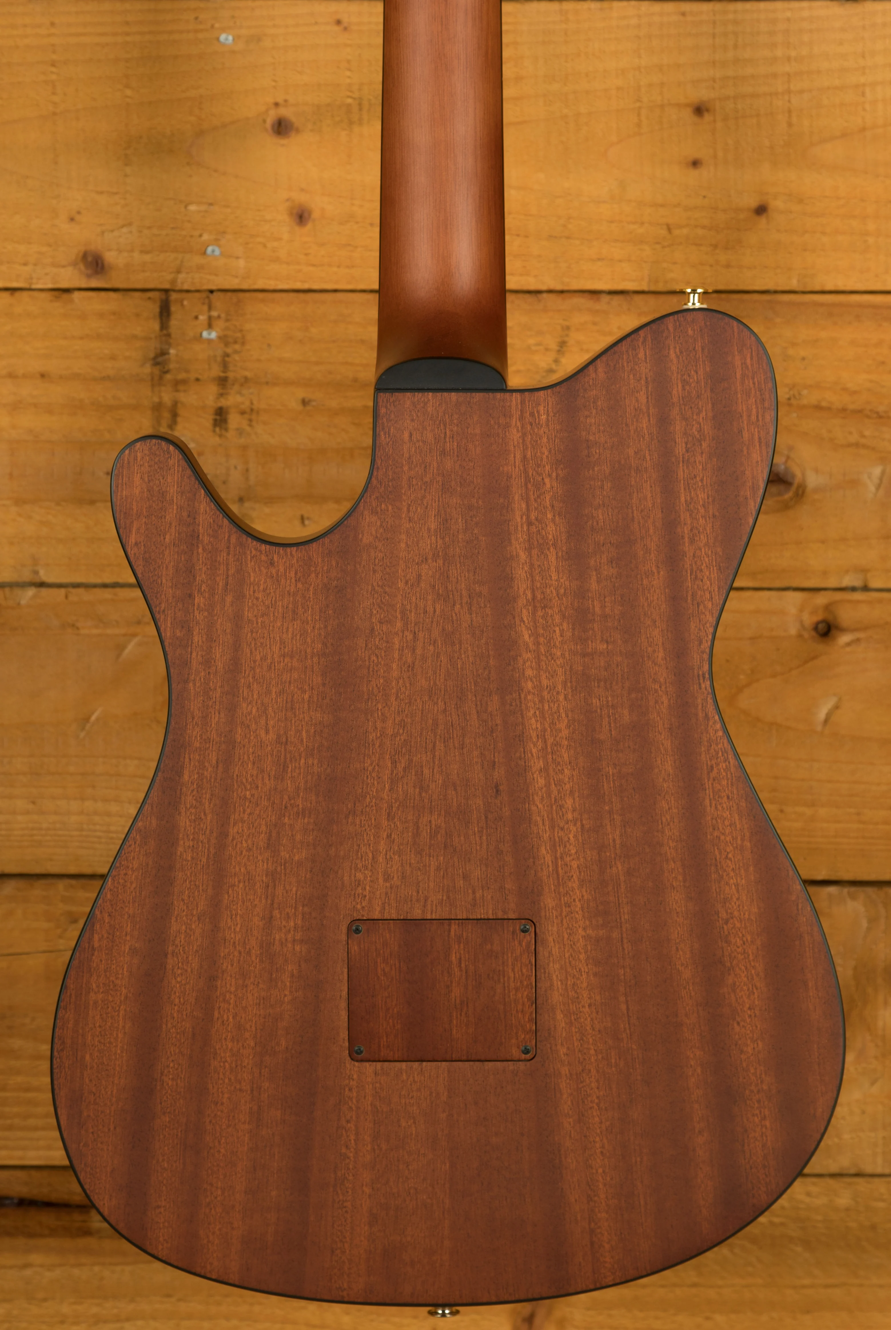 The thin, compact body, 46mm width nut, 400R fretboard radius, superior upper-fret access, and 22 frets all accumulate in what is a much more natural feeling guitar to someone more used to electrics.