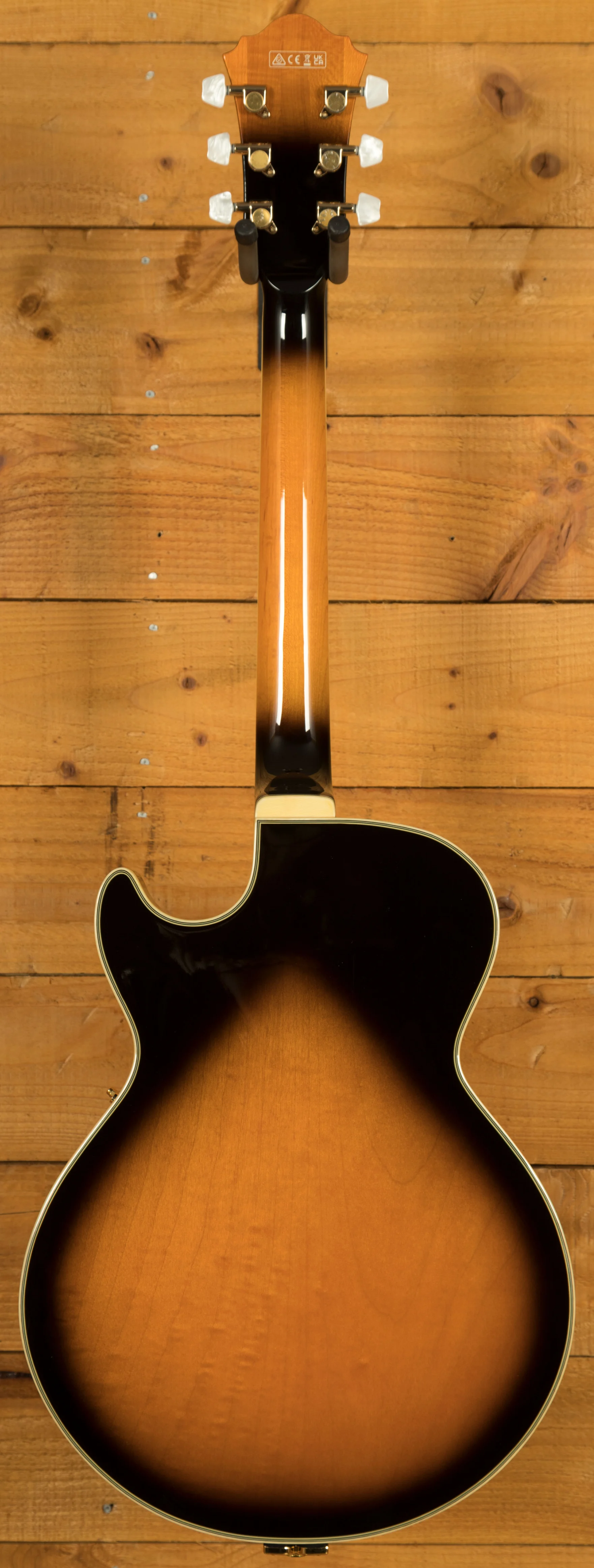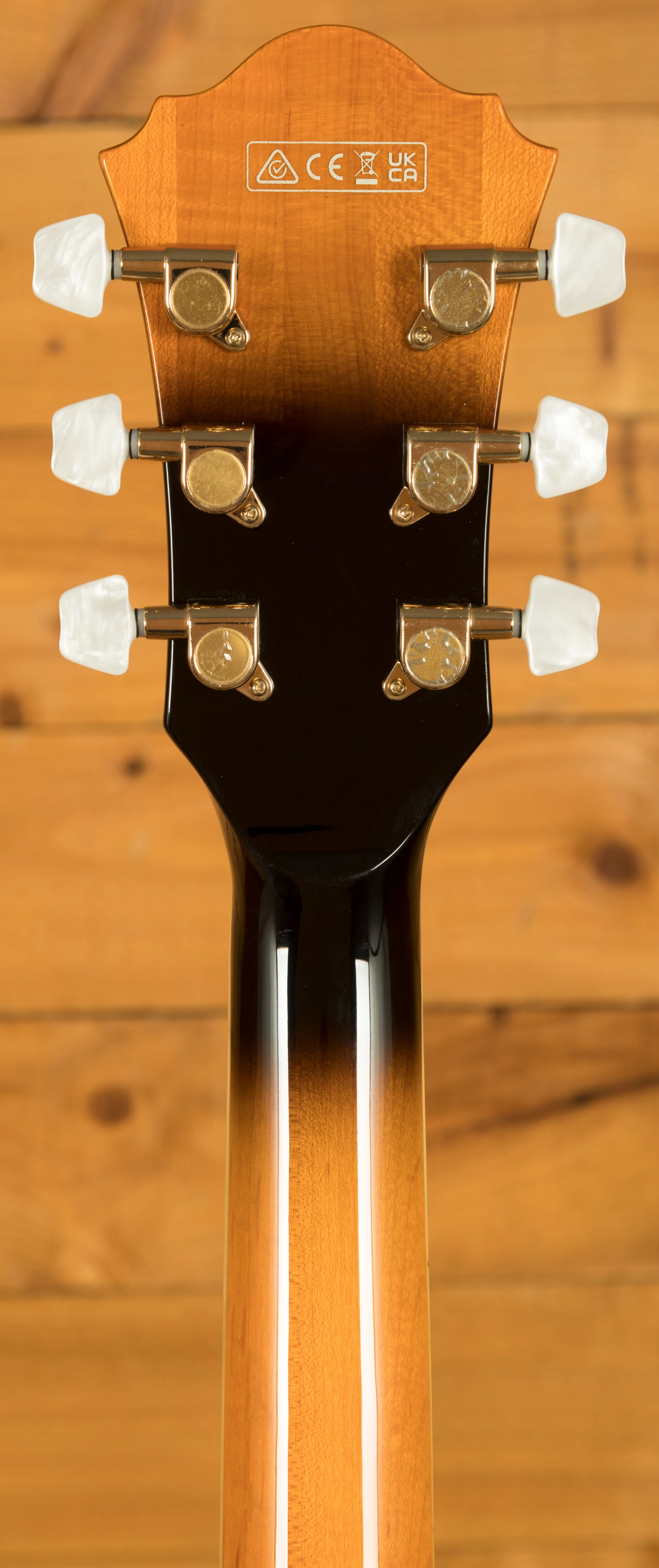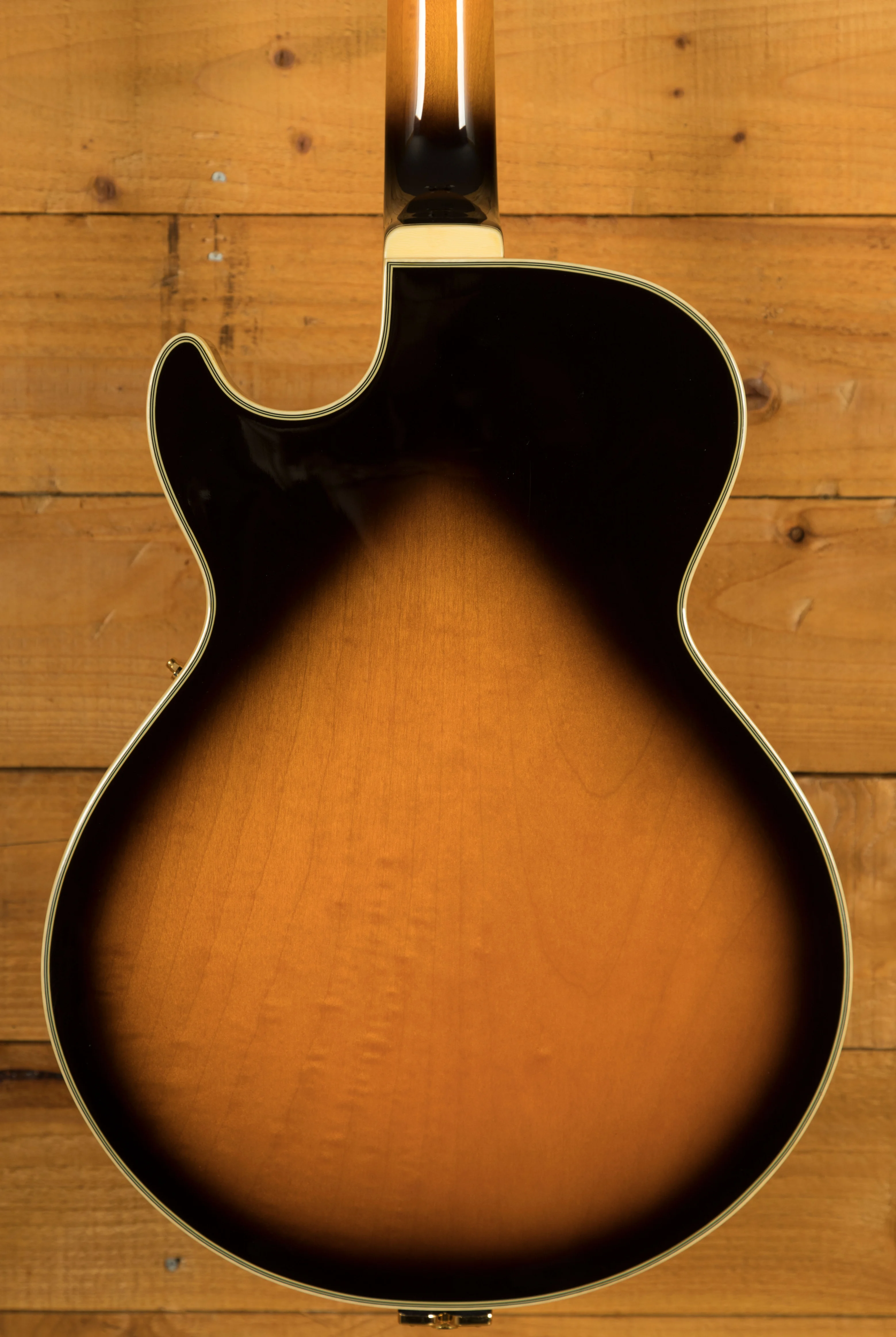 It features an ebony fingerboard, bridge and saddle. Ebony produces a tight low end and mid-range with a defined high end attack. It also delivers quick response and rich sustain. The GB Special pickups are installed floating off the body for maximum freedom of the top - eliminating feedback and enabling a superb, warm jazz sound, both acoustically and when plugged-in.