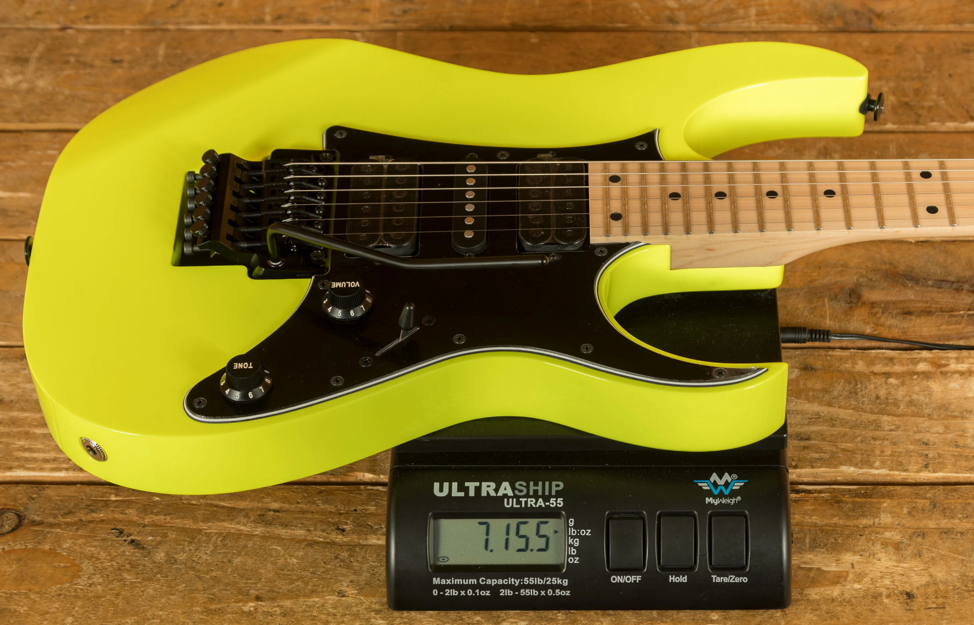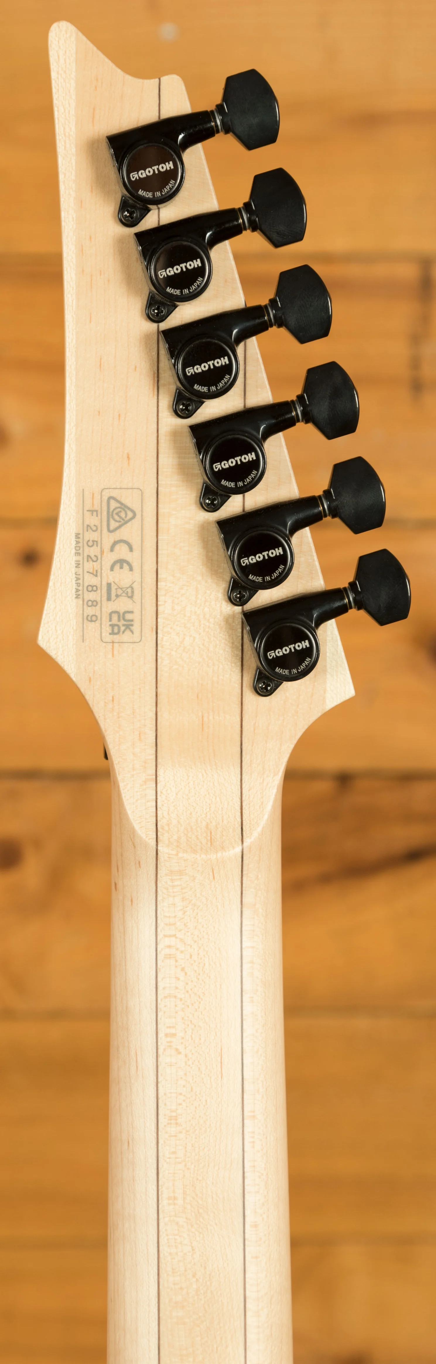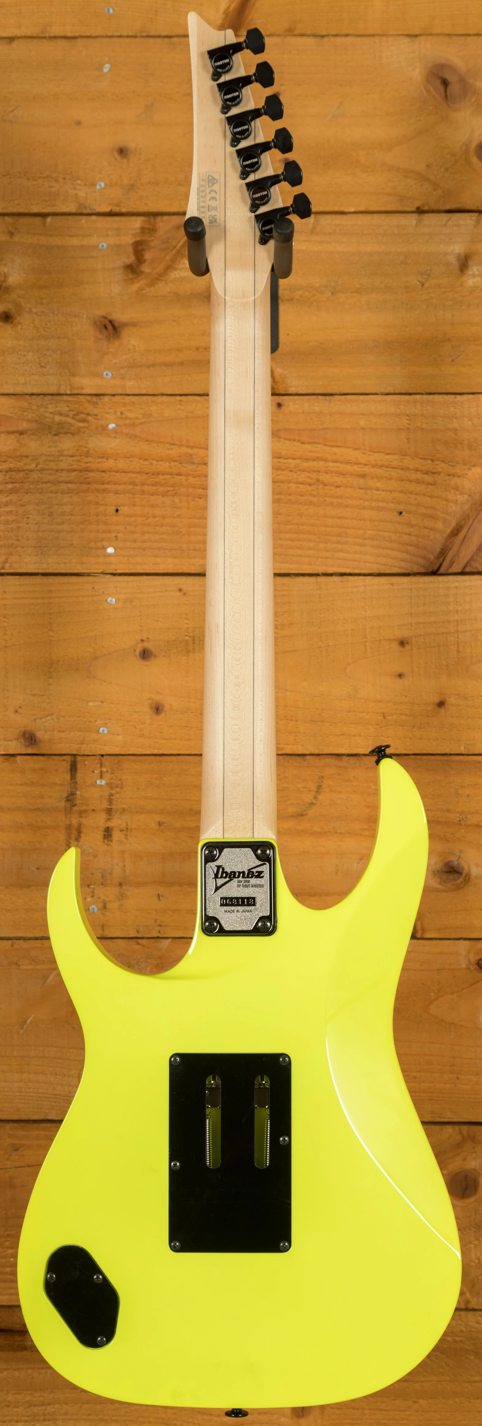 A 5 piece Maple/Walnut Super Wizard neck is adorned with a Maple fingerboard with black dot inlays. It's designed for speed and precision, perfect for today's metal players.