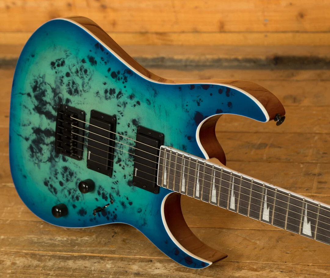 The Ibanez GRGR221PA-AQB Aqua Burst is something pretty special from this highly regarded line. With a beautiful Okoume body with a Poplar Burl Art Grain Top, you not only get stunning looks but rich, tight, natural tone. Finished in Aqua Burst, it looks a million dollars. The ergonomic body shape feels smooth, well balanced and poised for action.