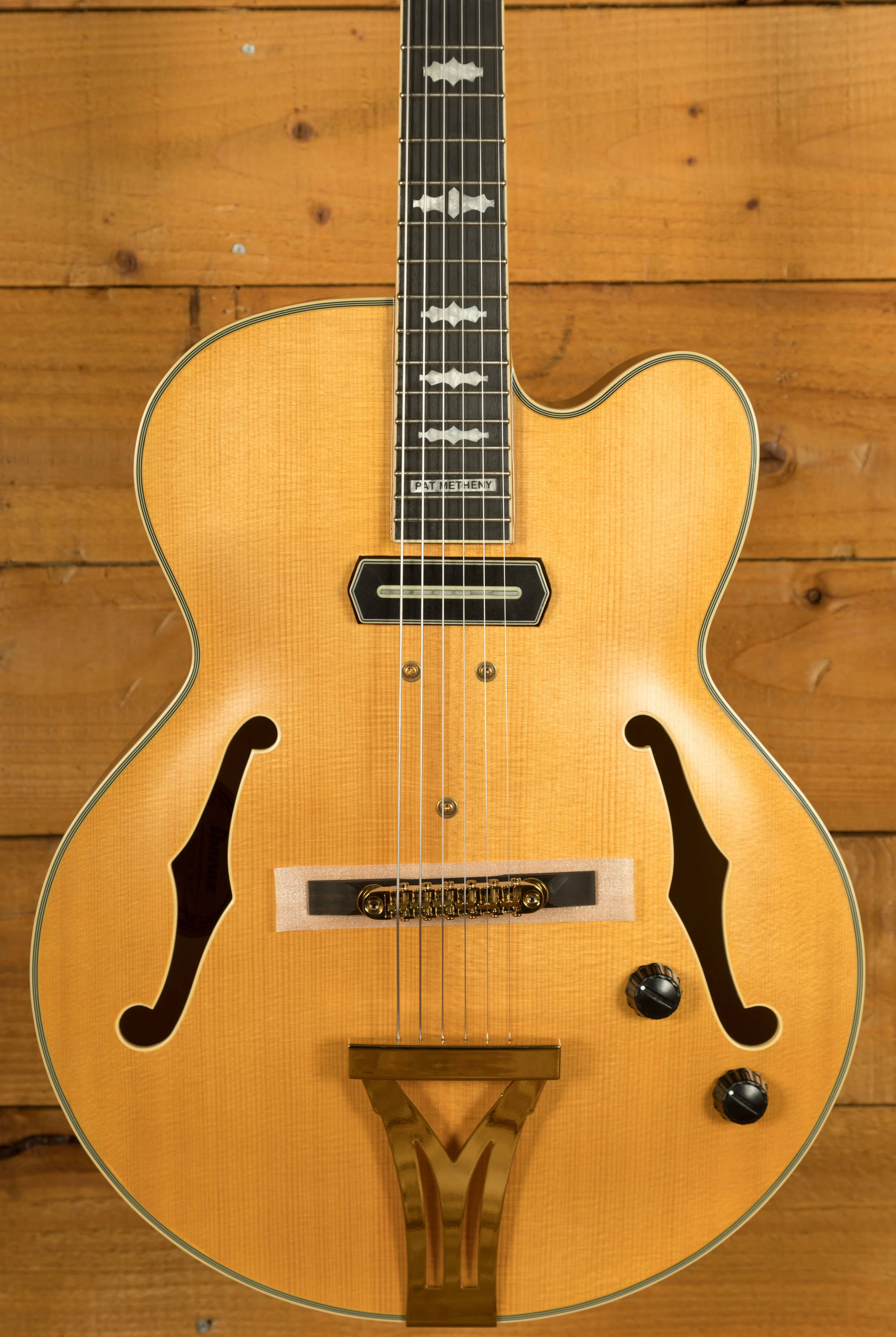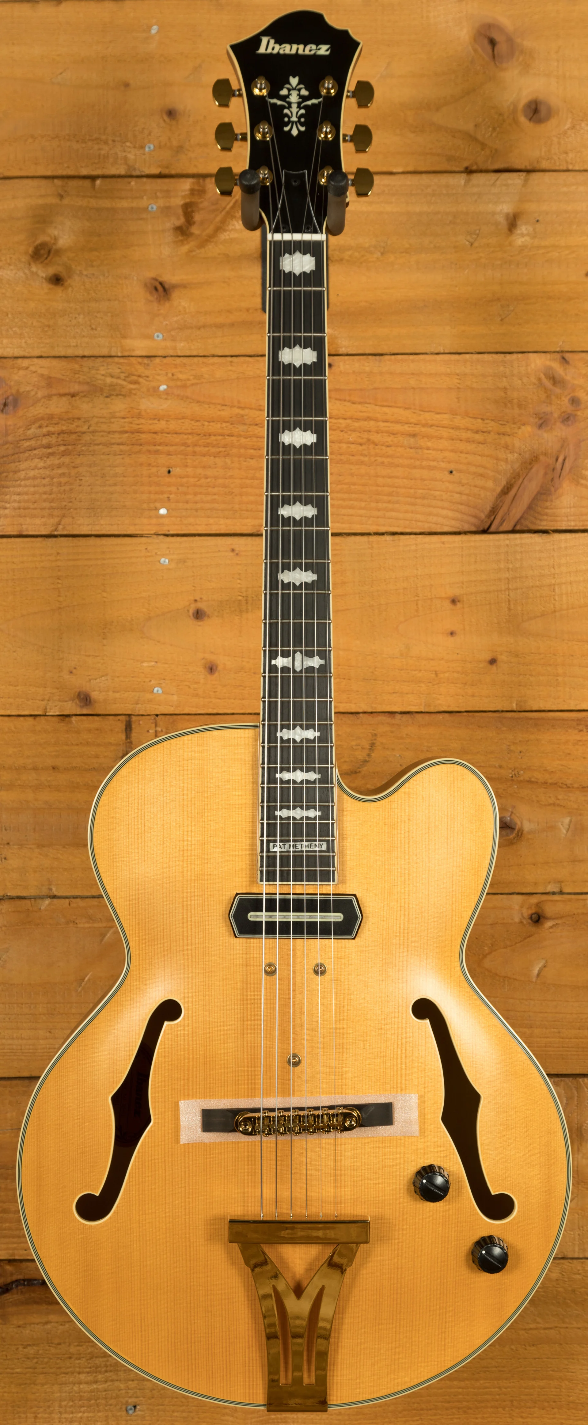 Skip to content Ibanez PM3C Pat Metheny Hollow Body - Natural Amber Low Gloss
