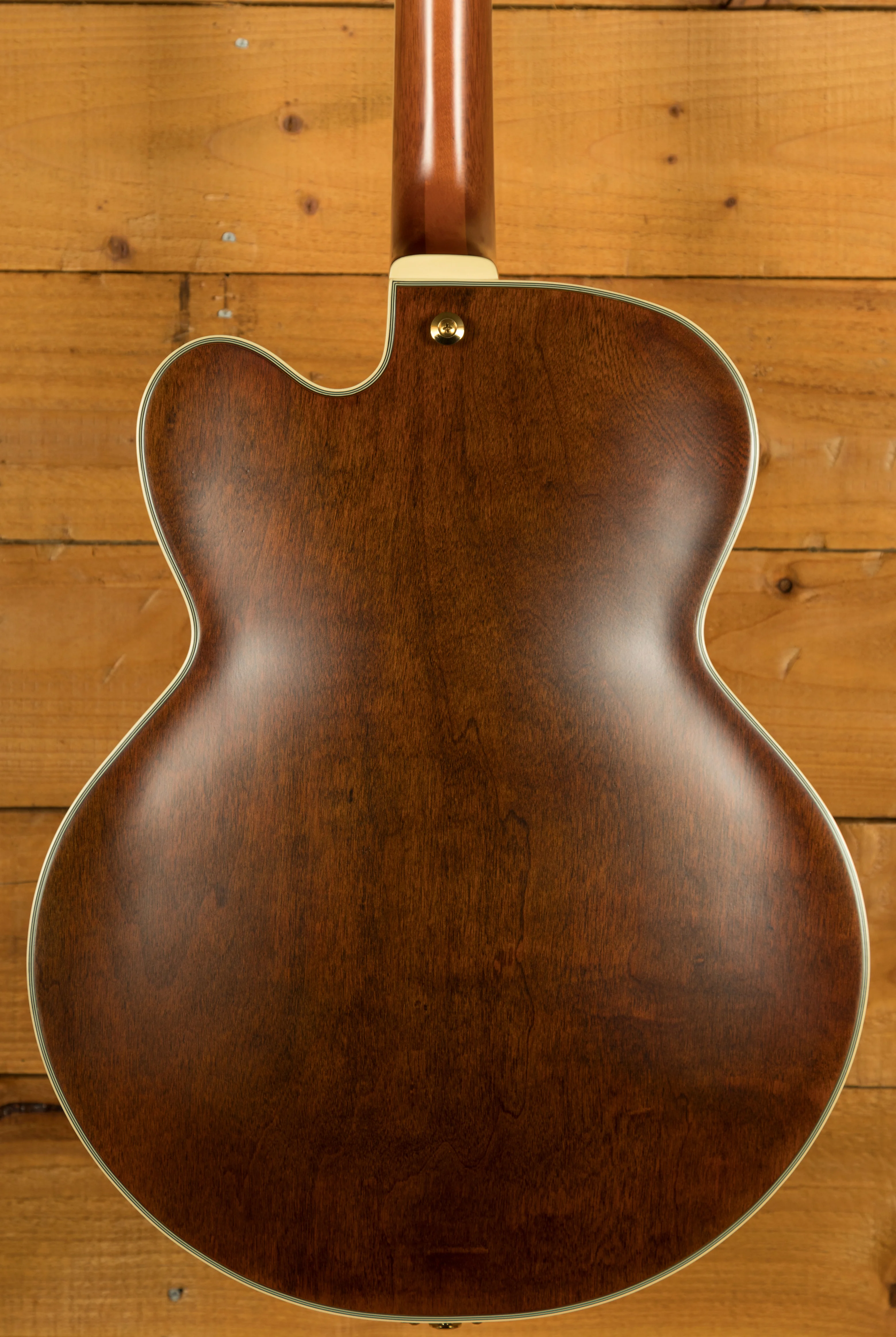 The 3-piece Nyatoh/Maple neck provides excellent resonance and sustain, with a unique profile designed specifically for Metheny. Measuring 20mm at the 1st fret and 22mm at the 9th fret, this neck shape offers comfort and stability, making it easy for players to navigate complex chord shapes and melodies. The ebony fretboard, known for its tight lows and strong high-end attack, further enhances the guitar's responsiveness and tonal clarity. Its 305mm (12") radius is ideal for smooth chord transitions and expressive bends without any risk of fretting out.
