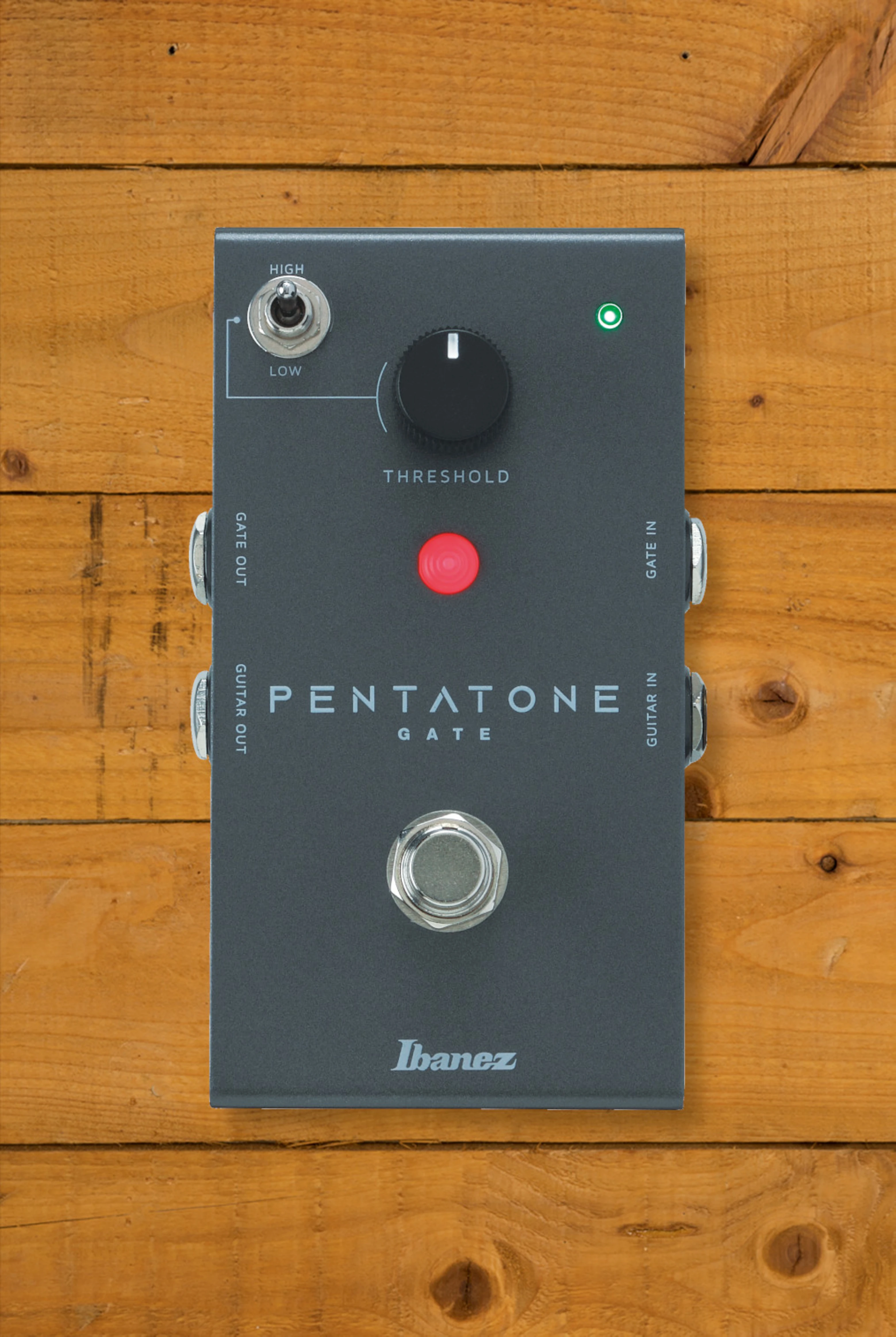 The Ibanez PTGATE introduces the standalone version of the GATE section from the acclaimed Ibanez Pentatone Preamp. Purposefully designed to deliver a swift response and natural sustain, the Pentatone Gate boasts an additional threshold mode switch for nuanced control over the gate's threshold within a suitable range. This pedal features intuitive controls, with a single Threshold knob ensuring simple operation while achieving the desired gating effect. The threshold mode switch provides flexibility by allowing users to toggle between High and Low threshold ranges. With a compact design and weighing in at (1.0lb) including the battery, the PTGATE is a portable solution for noise reduction in a guitarist's signal chain. The 4 I/O jacks enhance its versatility, enabling strategic placement in a signal chain - ideal for use after distortion pedals or between the send/return of a guitar amplifier. Powered by a 9V battery (006P) or an external AC adapter, the PTGATE ensures a seamless, noise-free performance with true bypass functionality.