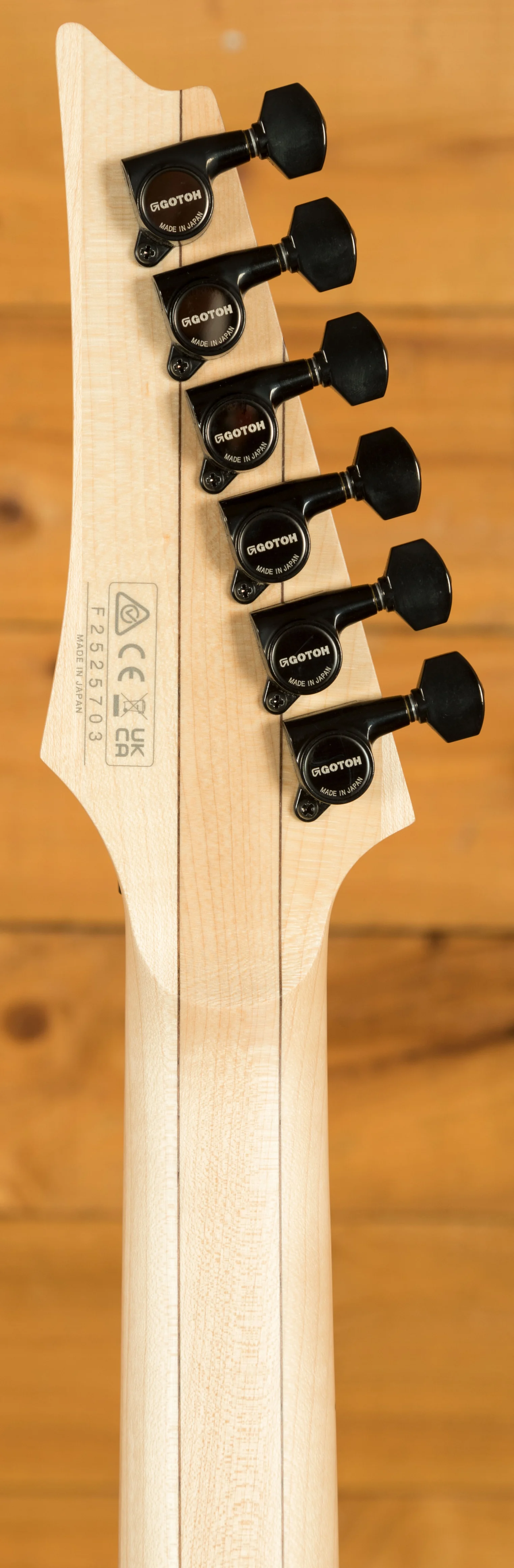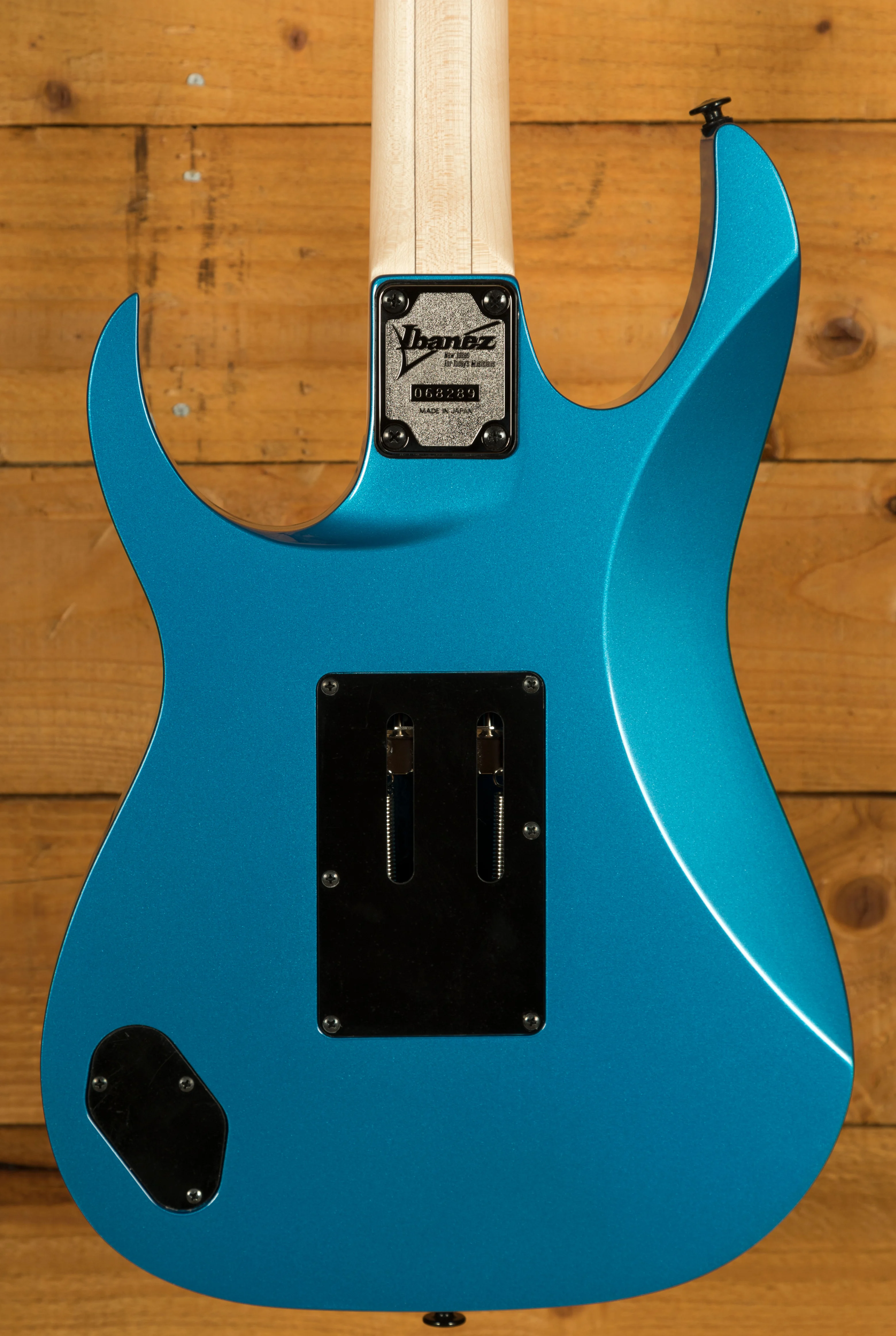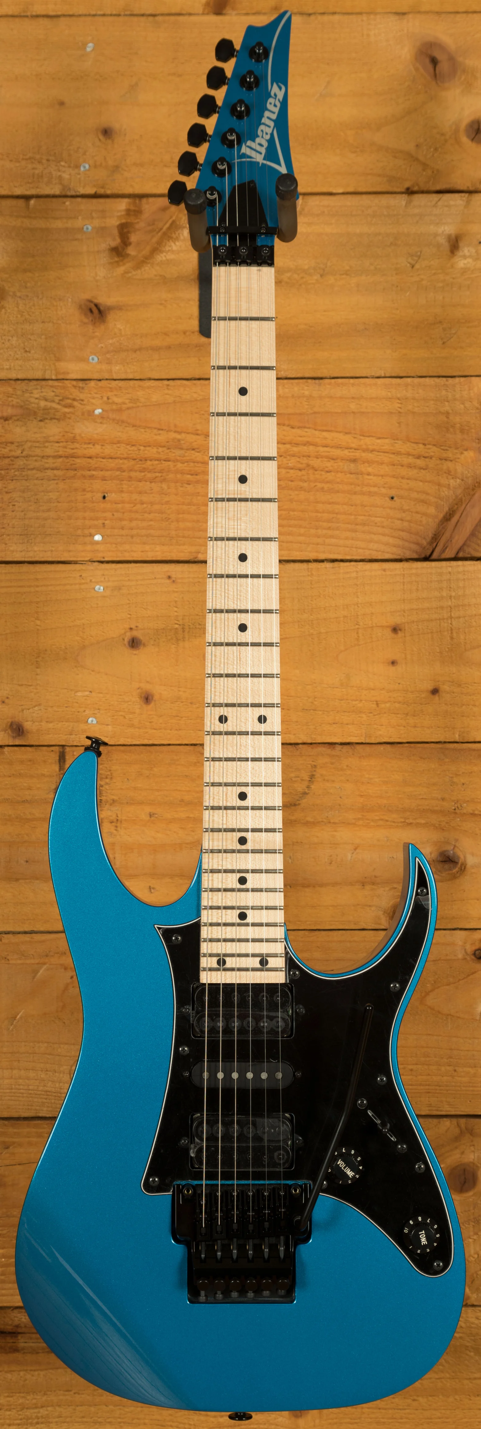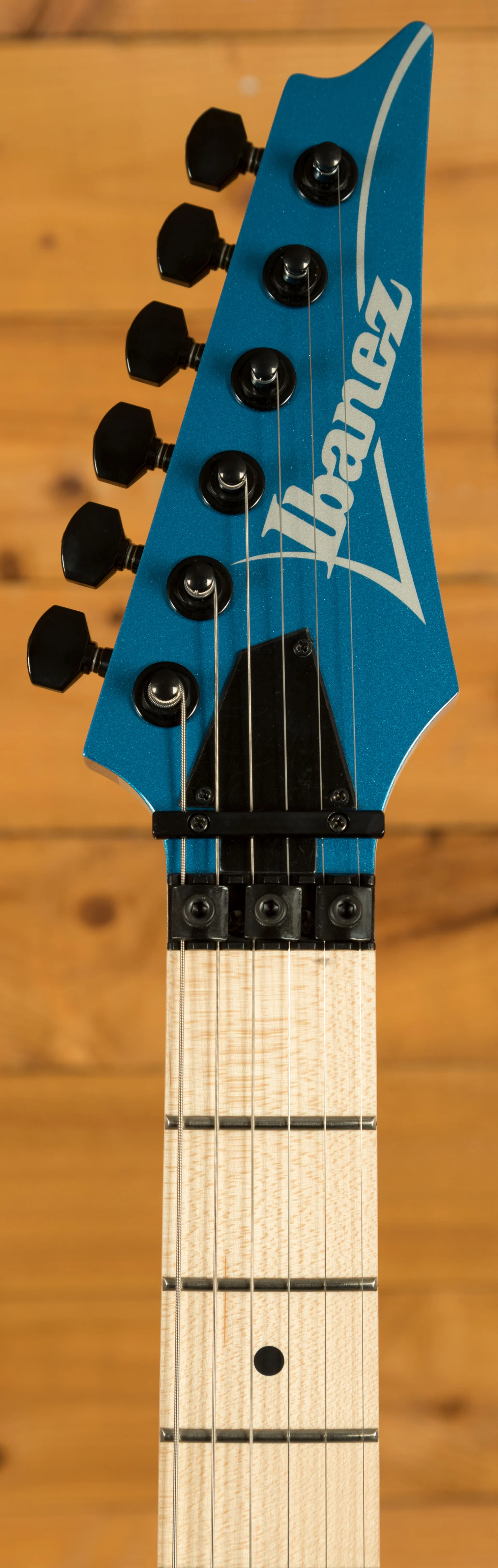 A 5 piece Maple/Walnut Super Wizard neck is adorned with a Maple fingerboard with black dot inlays. It's designed for speed and precision, perfect for today's metal players.