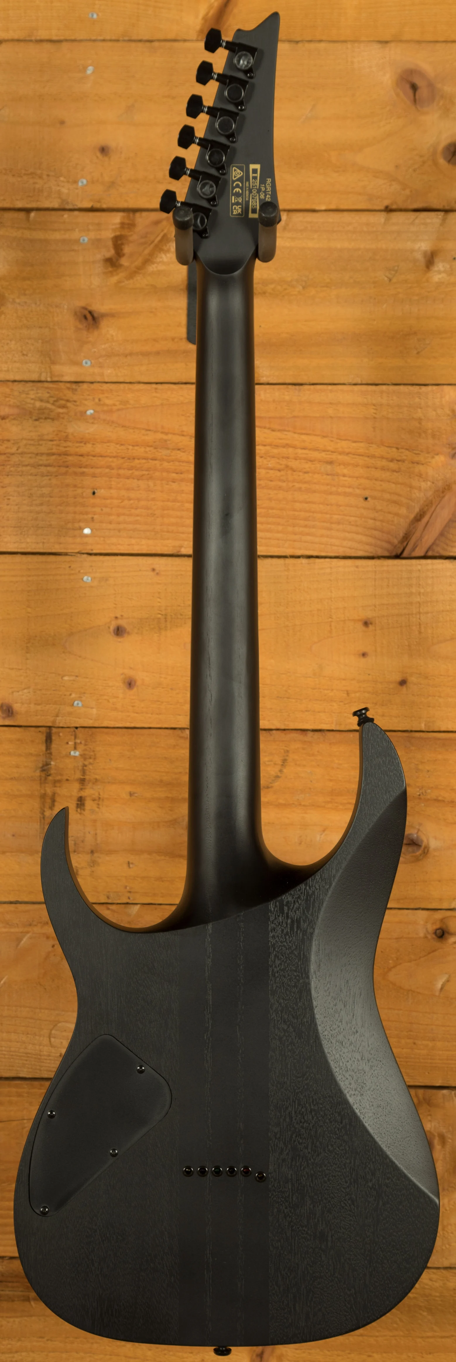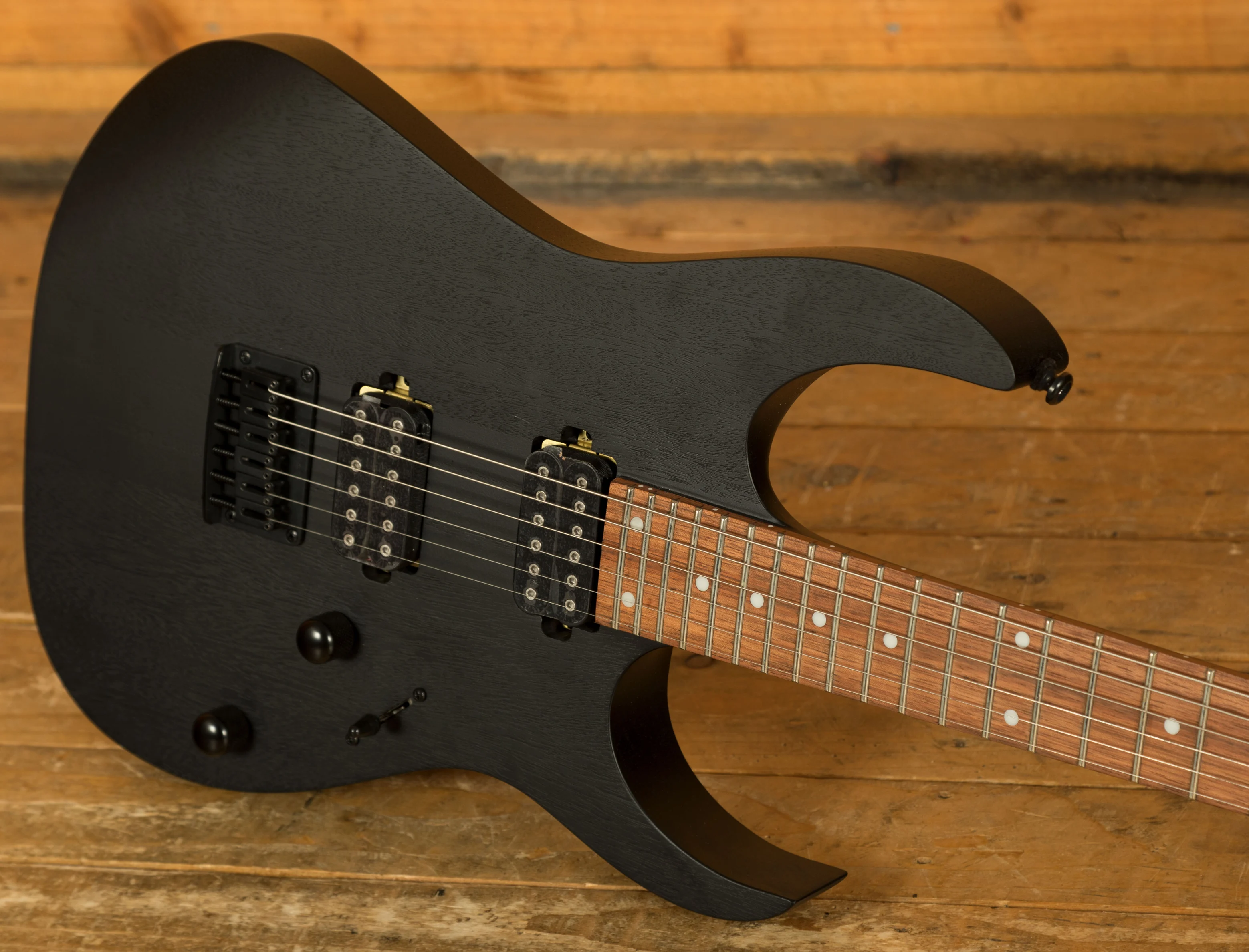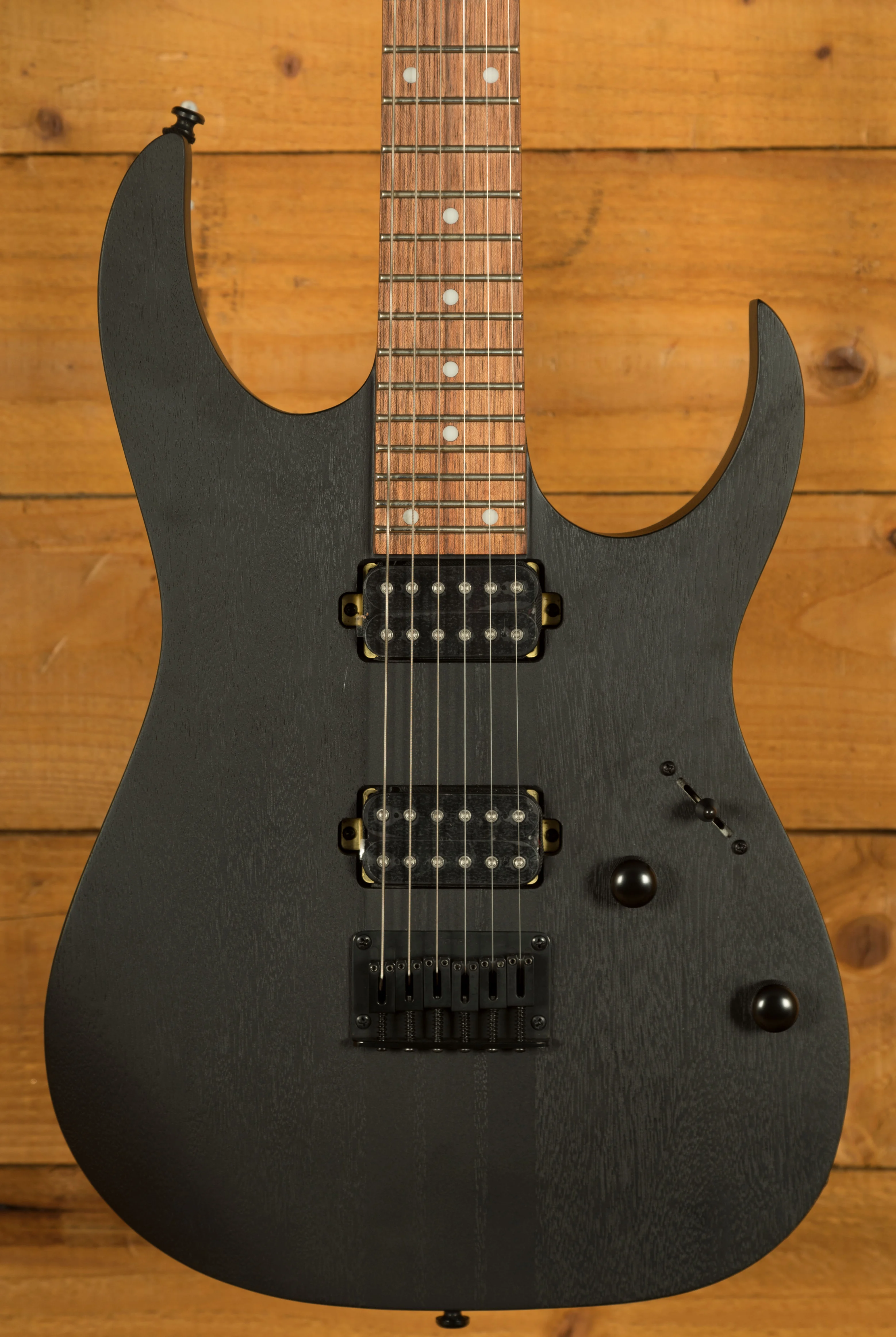 The RGRT421 takes the classic RG formula and adds neck-through construction for enhanced sustain and sleek aesthetics. Finished in open-pore Weathered Black, it has a raw, industrial vibe that pairs perfectly with its aggressive tone and fast playability.