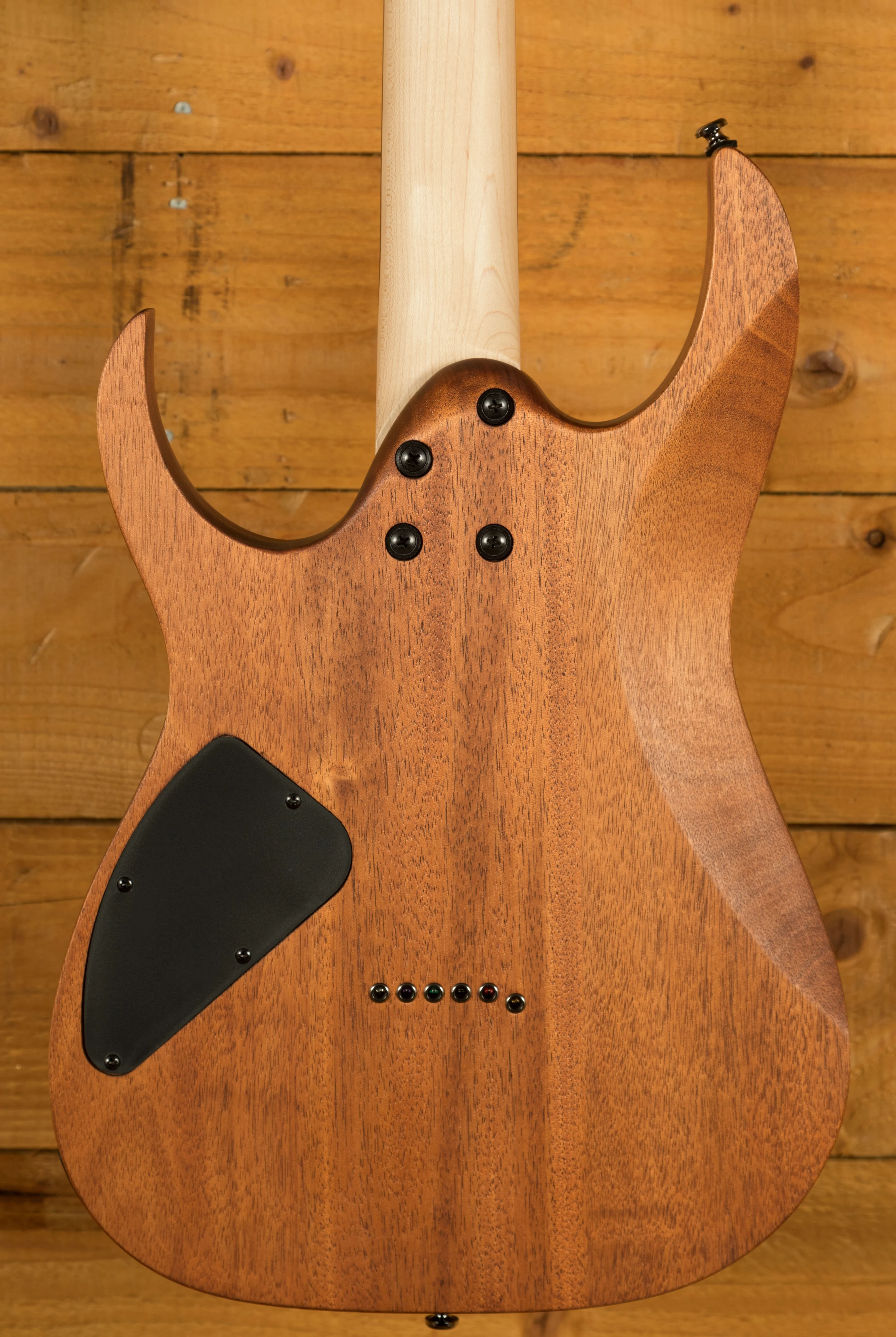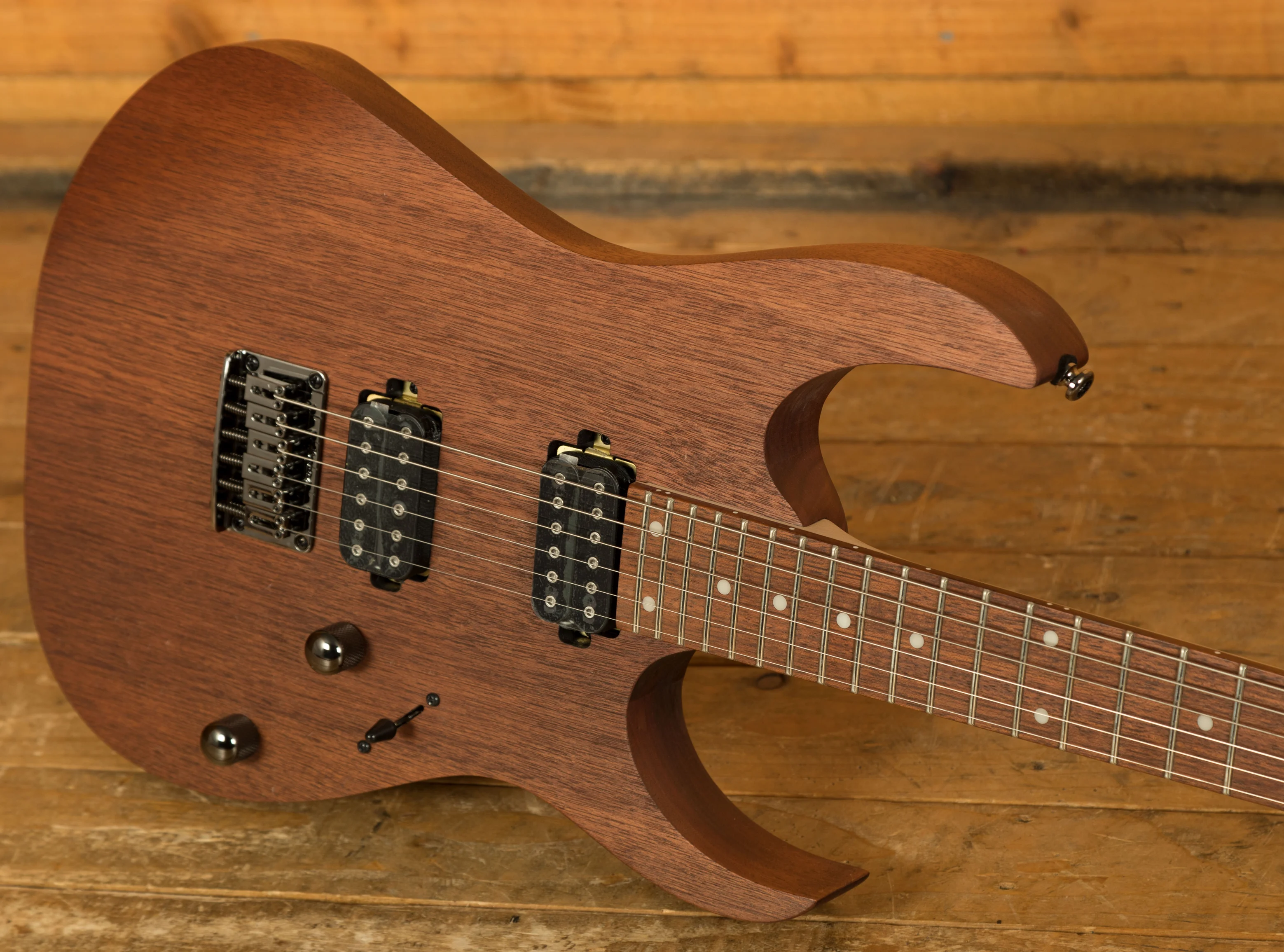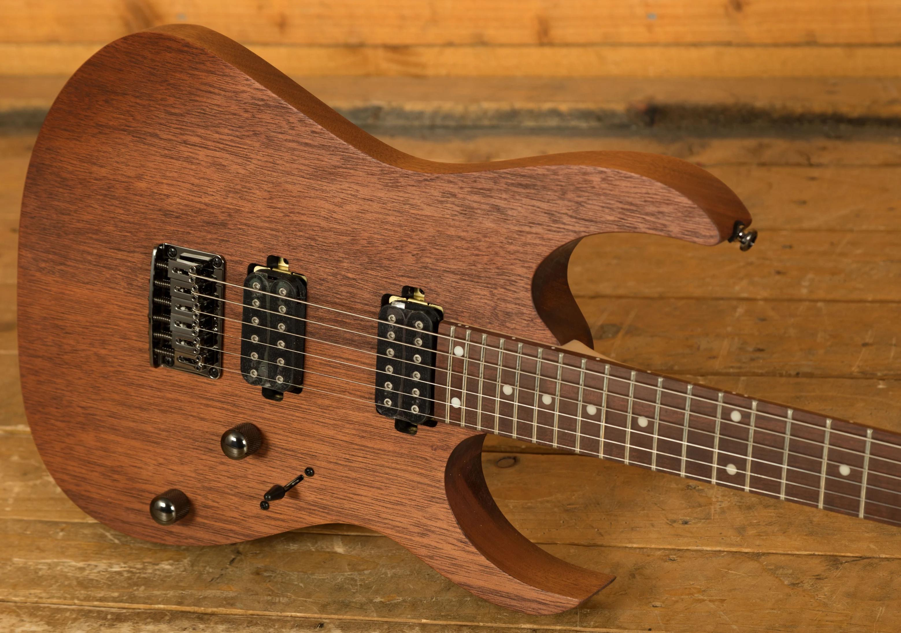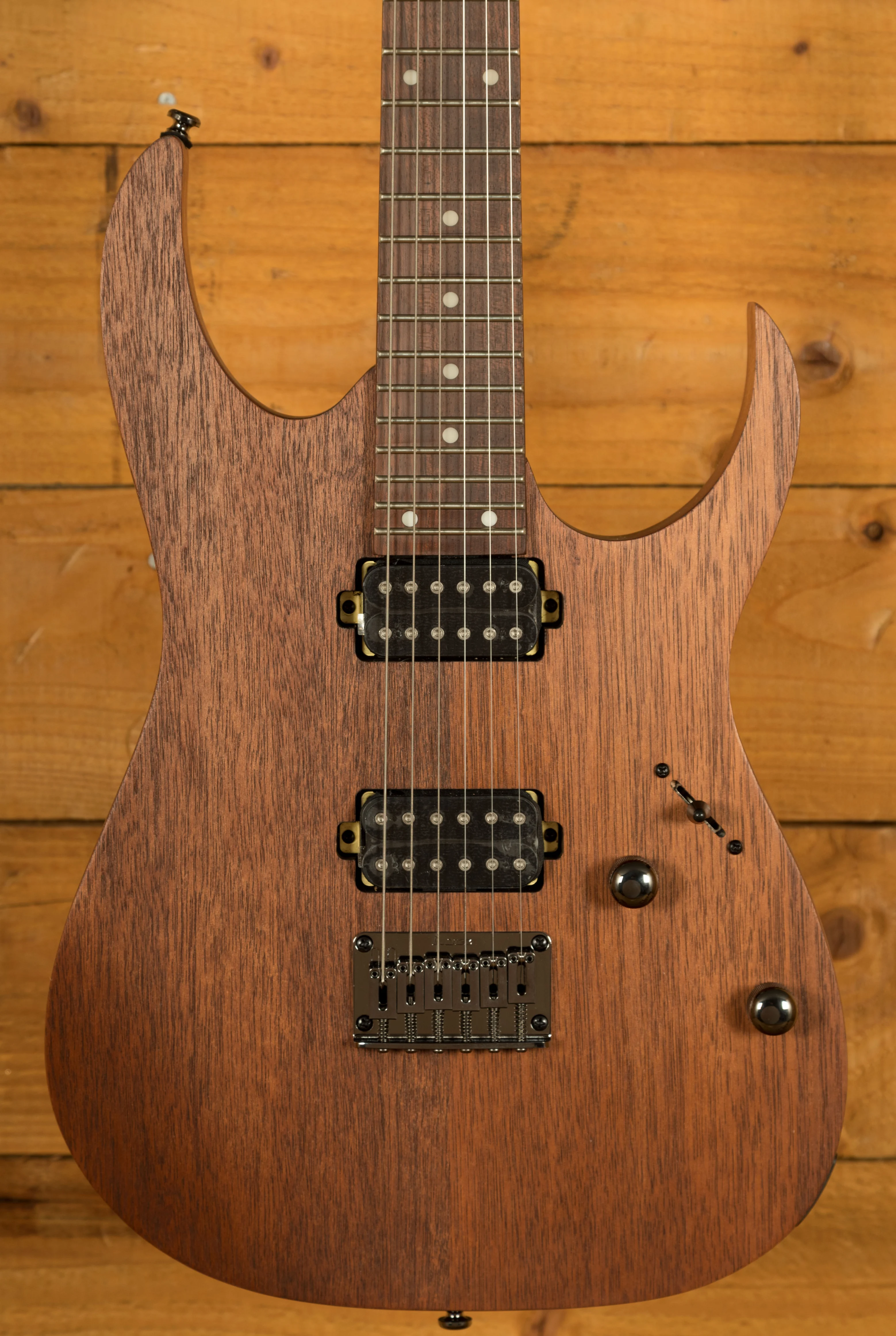 The Ibanez RG421-MOL is something pretty special from this highly regarded line. With a beautiful Meranti body, you not only get stunning looks but rich, tight, natural tone. Finished in Mahogany Oil, it looks a million dollars. The ergonomic body shape feels smooth, well balanced and poised for action.