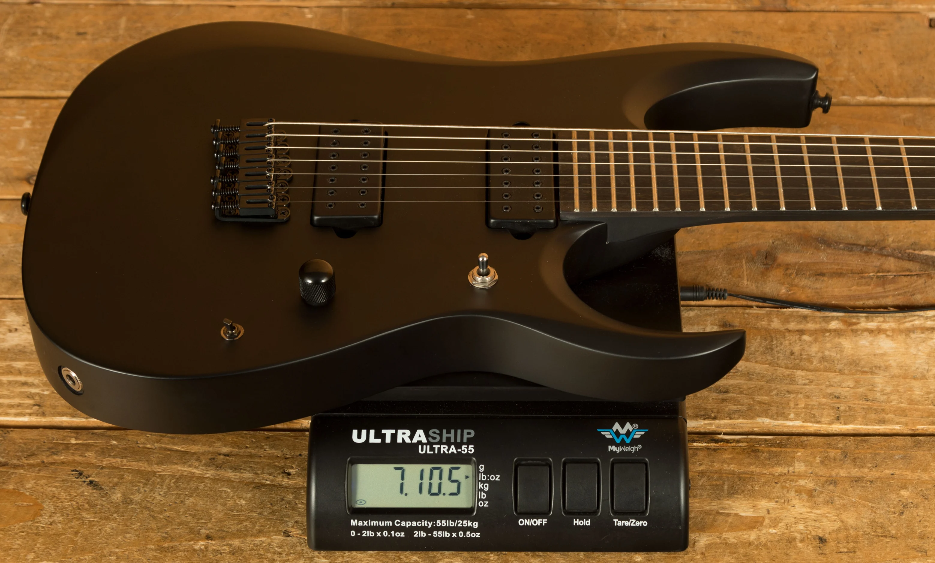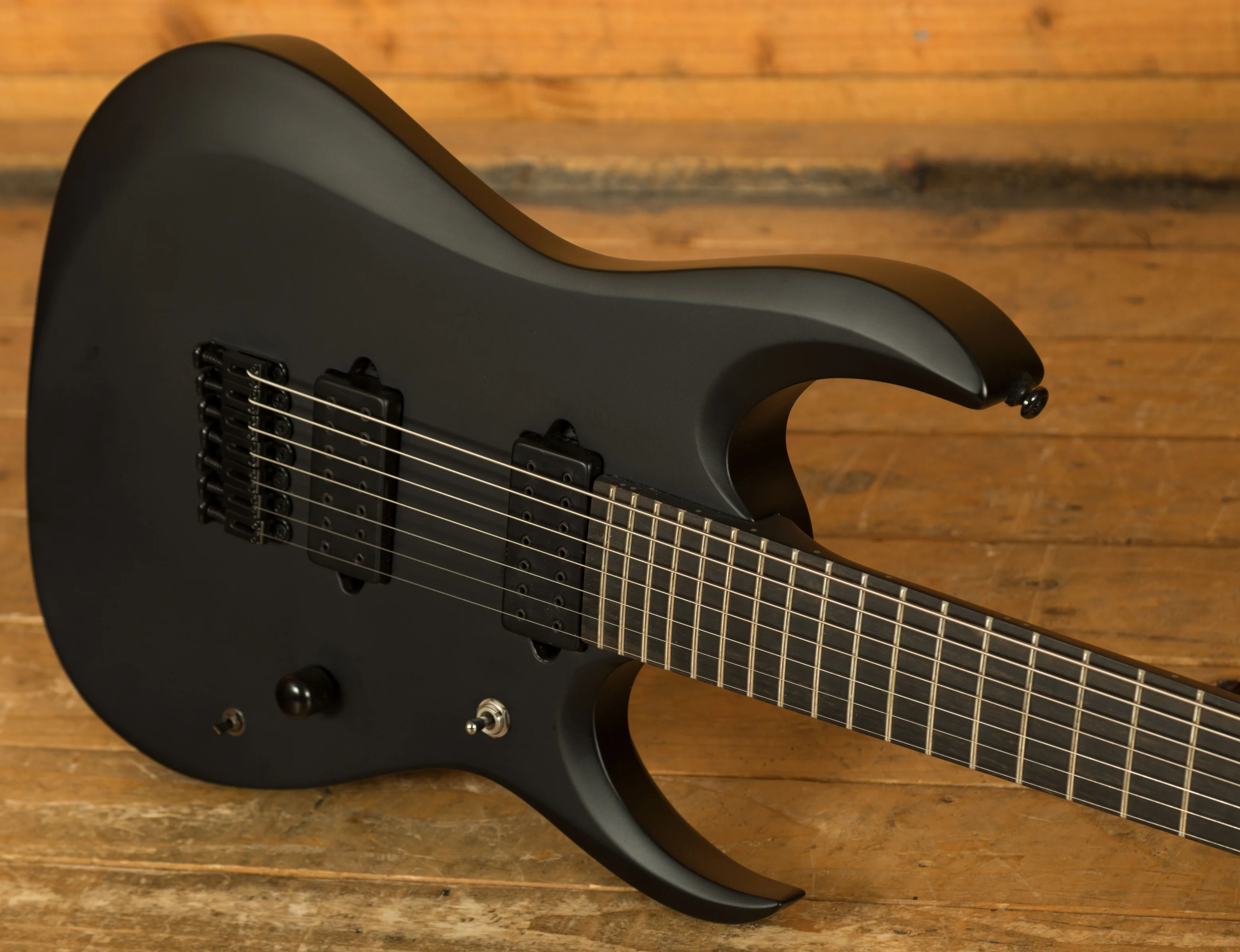 Ibanez designed their Iron Label series to be optimised for metal and metal alone. This guitar looks great for someone wanting a dark aesthetic with a no-nonsense approach to achieving great heavy tones and having great playability. The scale length of the guitar is extended by one-inch, to 26.5". This gives good stability for down-tuning without making the guitar feel too cumbersome to play. The pickups are passive, so there is no battery changes to worry about. The pickups themselves are high-quality DiMarzio D Activators, designed for powerful, tight metal tones, with a great low-end response. The guitar comes equipped with a coil-tap switch that works for both pickups, so you can achieve clear tones your cleans or lower-gain sections also.
