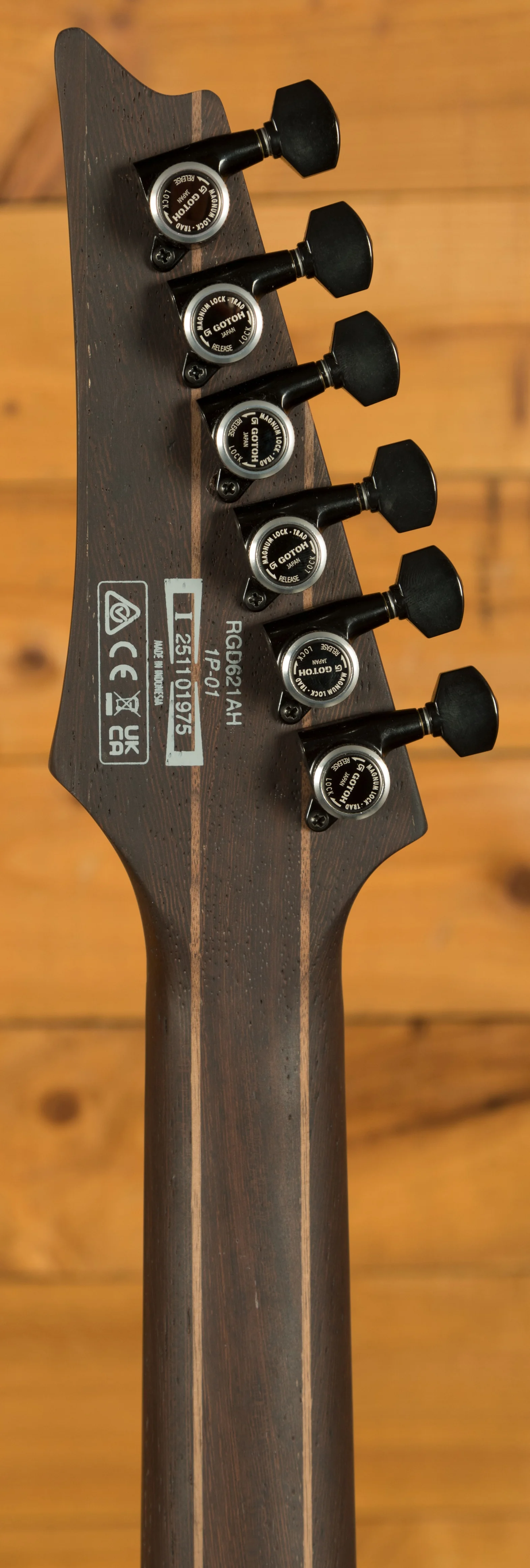 The Ibanez RGD621AH is built for players who want tight, aggressive low-end response and modern metal precision. As part of the RGD series, it features Ibanez's signature 26.5 inch scale, designed specifically to keep the low E string clear, punchy and articulate under high gain. Whether you're riffing in standard or dropped baritone tunings, the RGD621AH stays focused and responsive.