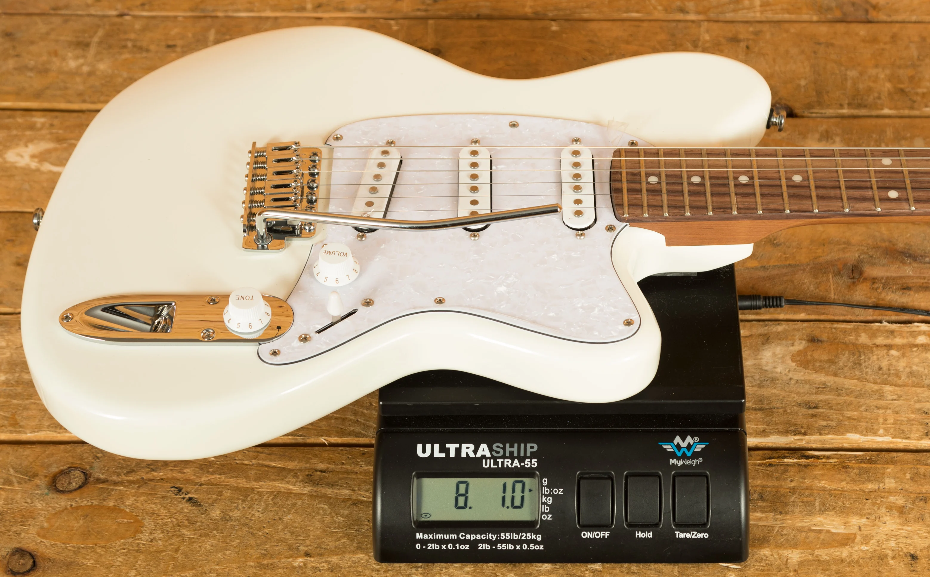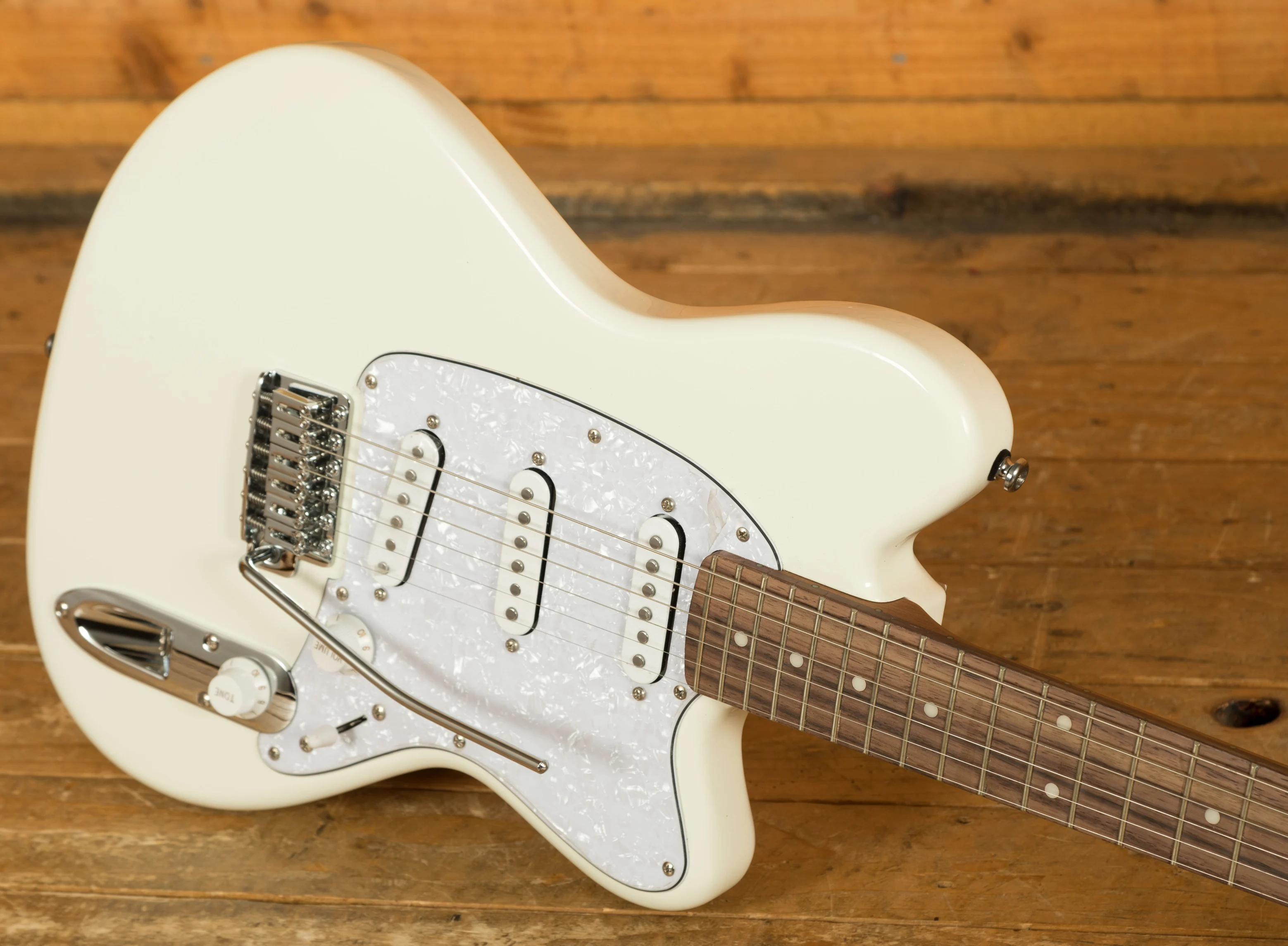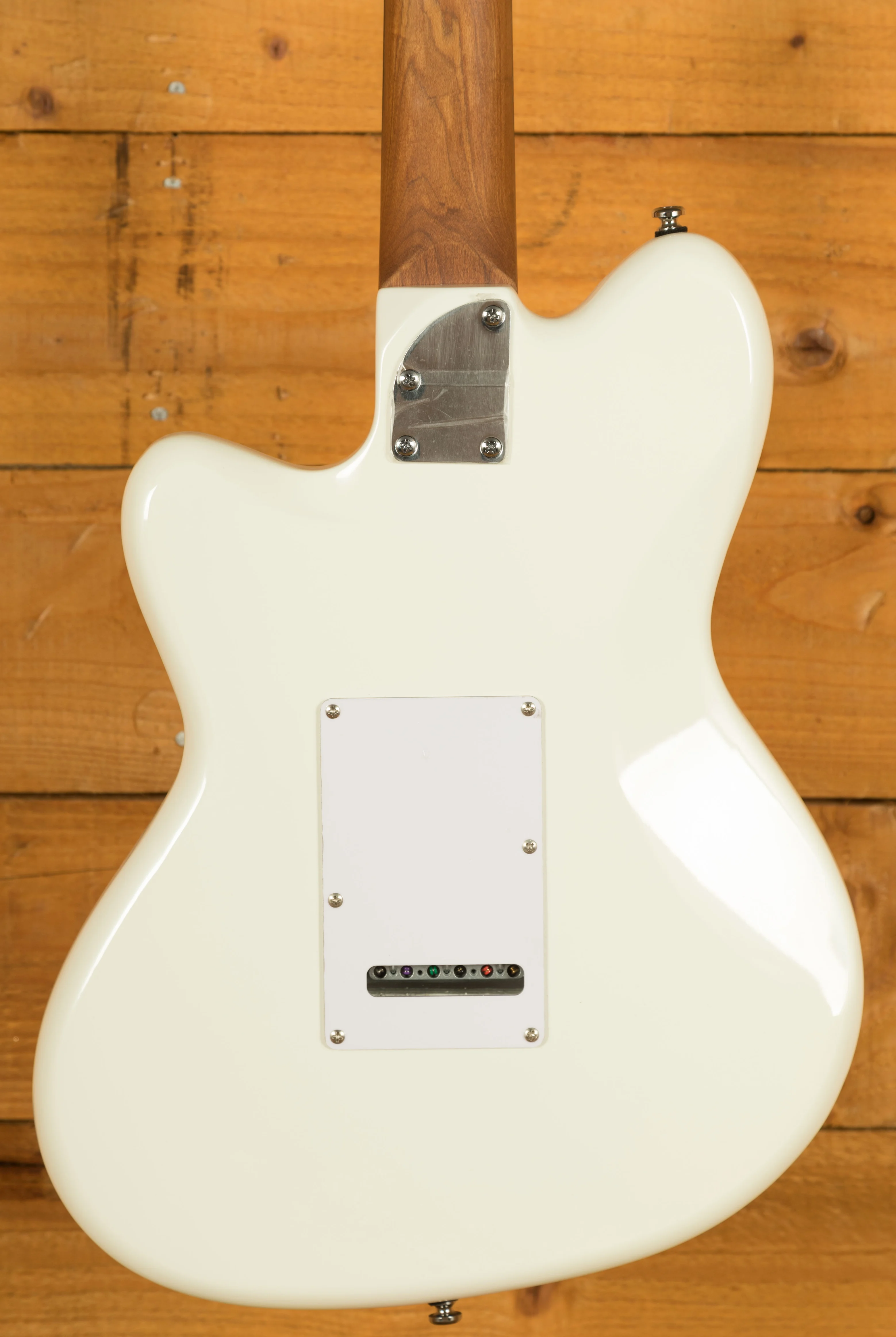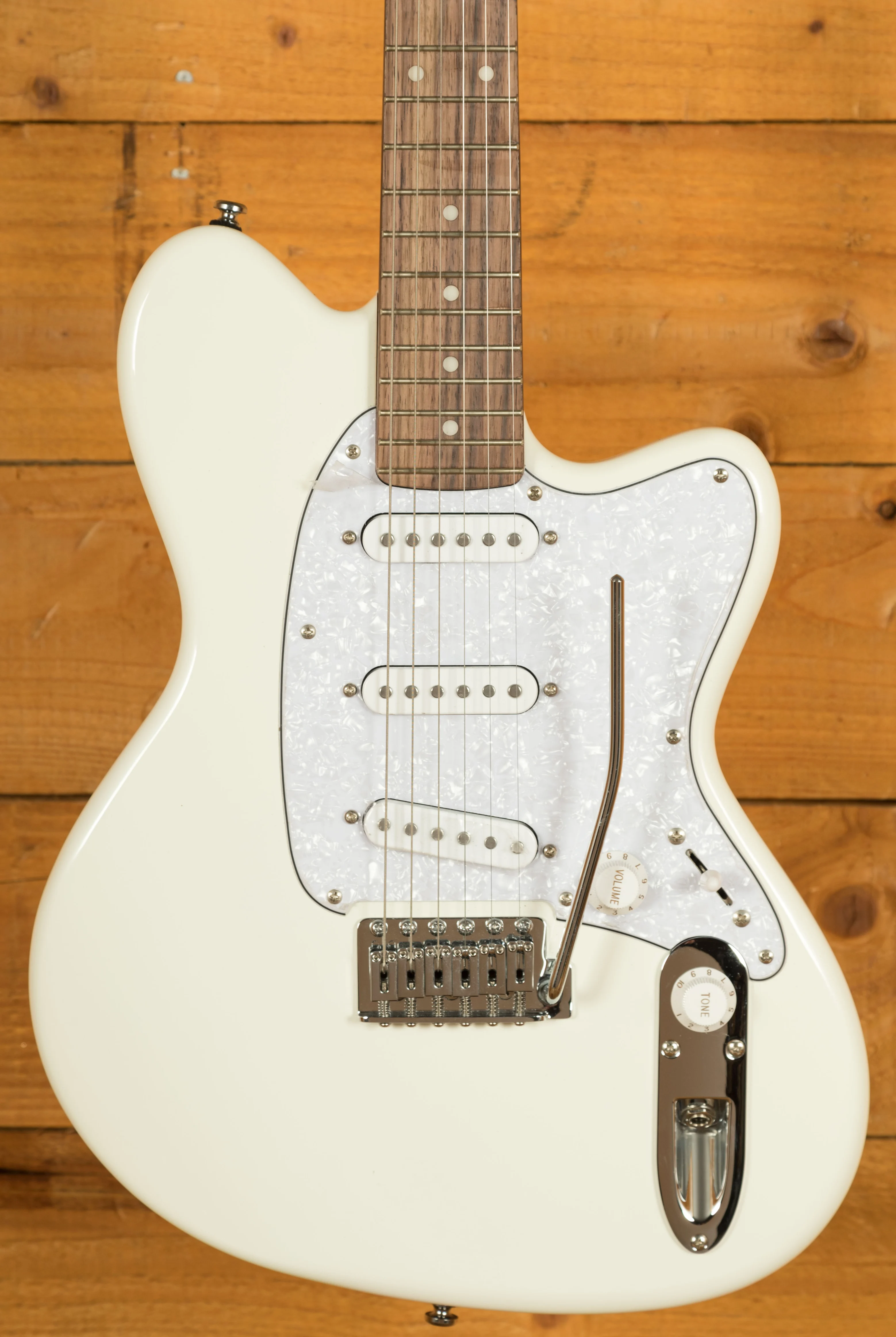 A T106 tremolo bridge with six independent saddles allows precise intonation and height adjustment, while Gotoh MG-T locking tuners ensure rock-solid tuning and quick string changes. The chrome hardware and sturdy output jack round out a clean, performance-ready build.