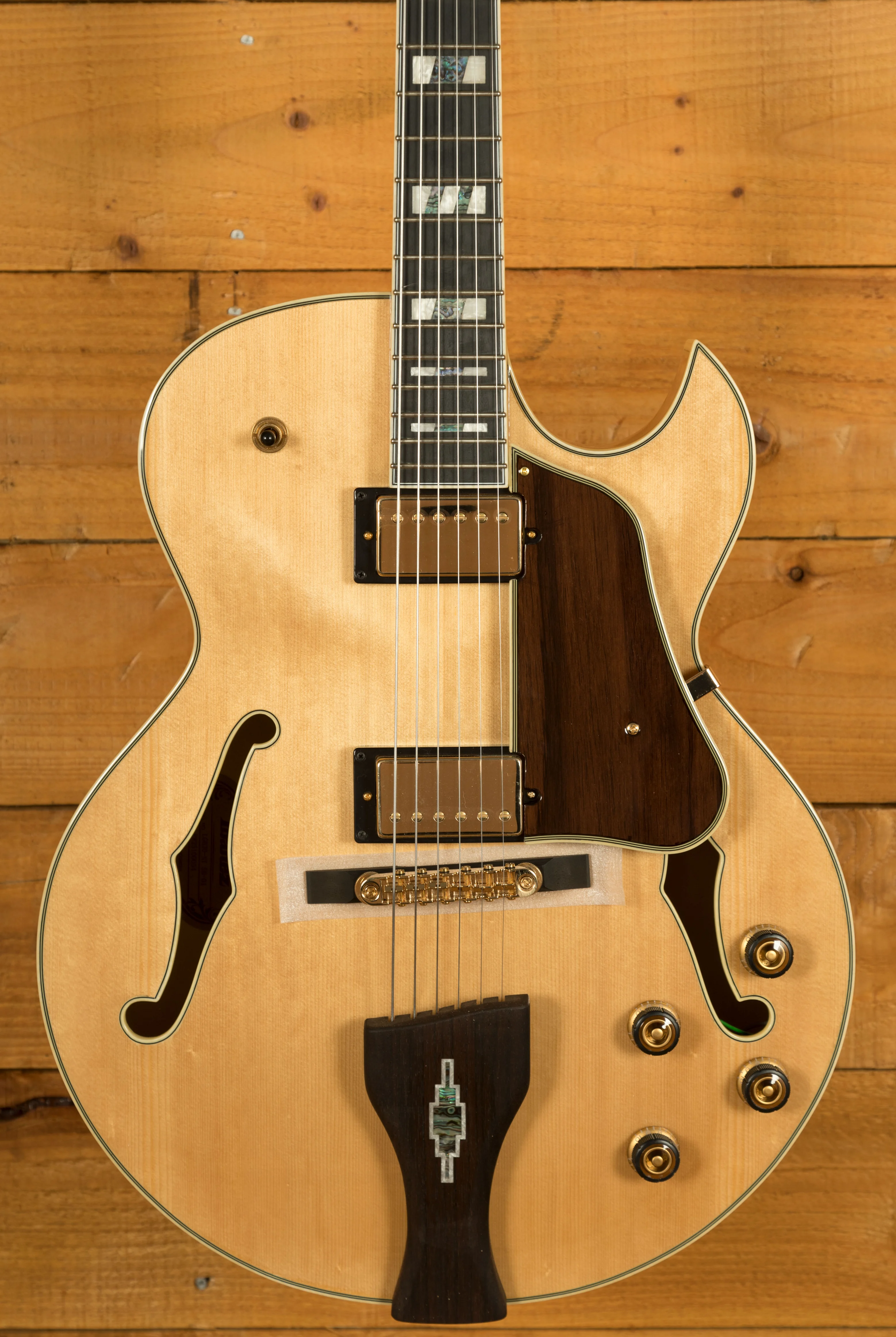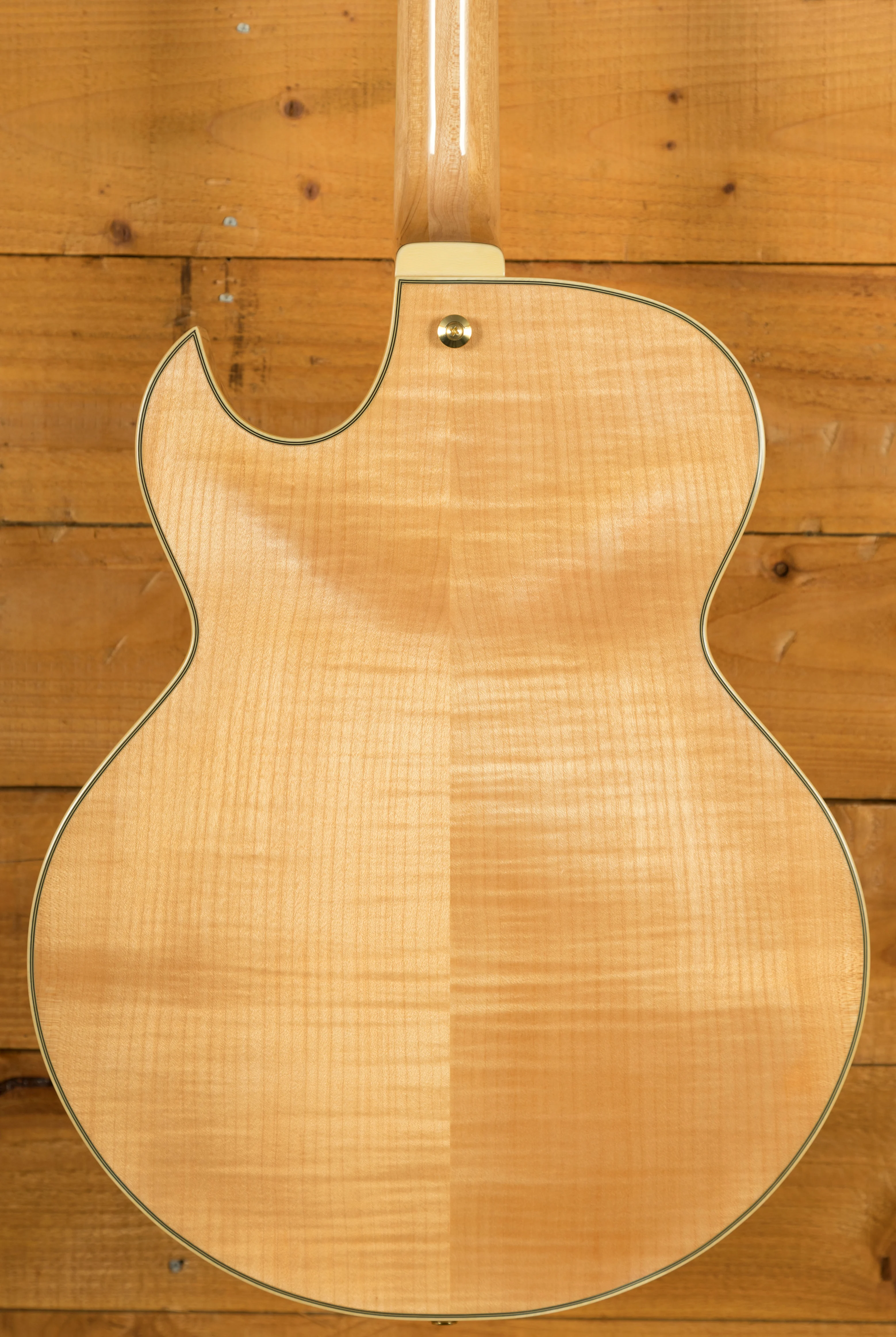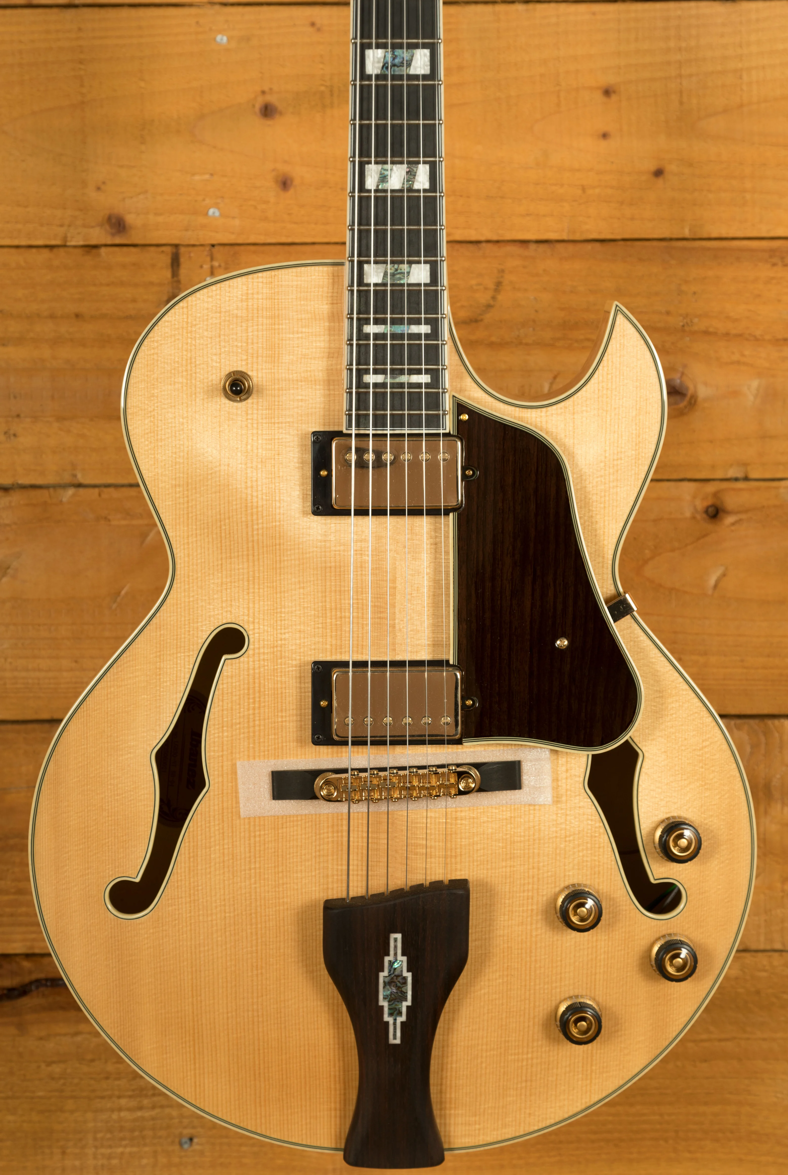 With a Vintage Yellow Sunburst Solid Spruce top on Flame Maple back and sides, you not only get stunning aesthetics but a beautiful natural tone too, rich and even, it delivers the smooth soul and jazz vibes that George Benson is so well known for. It's super dynamic and has great response.