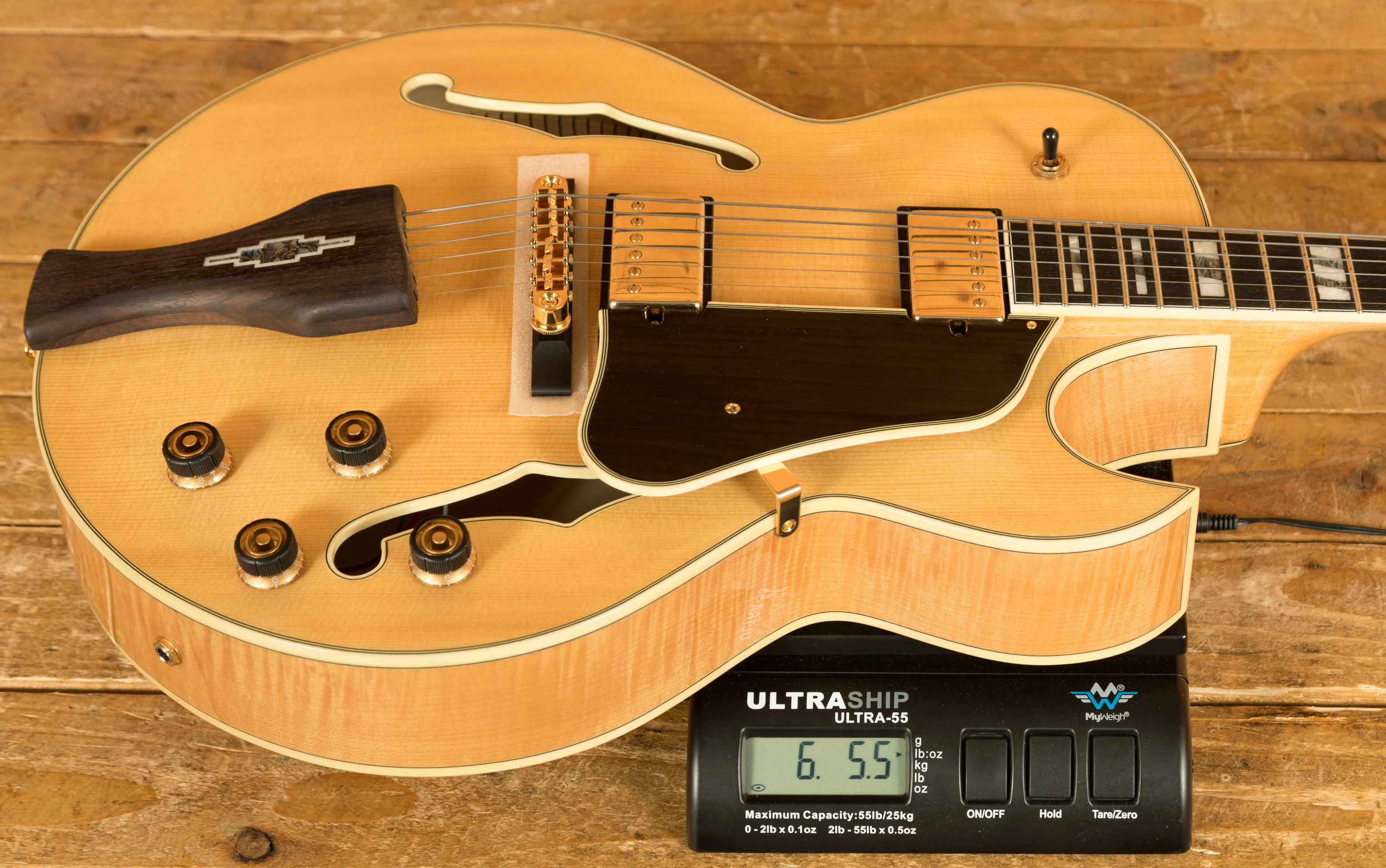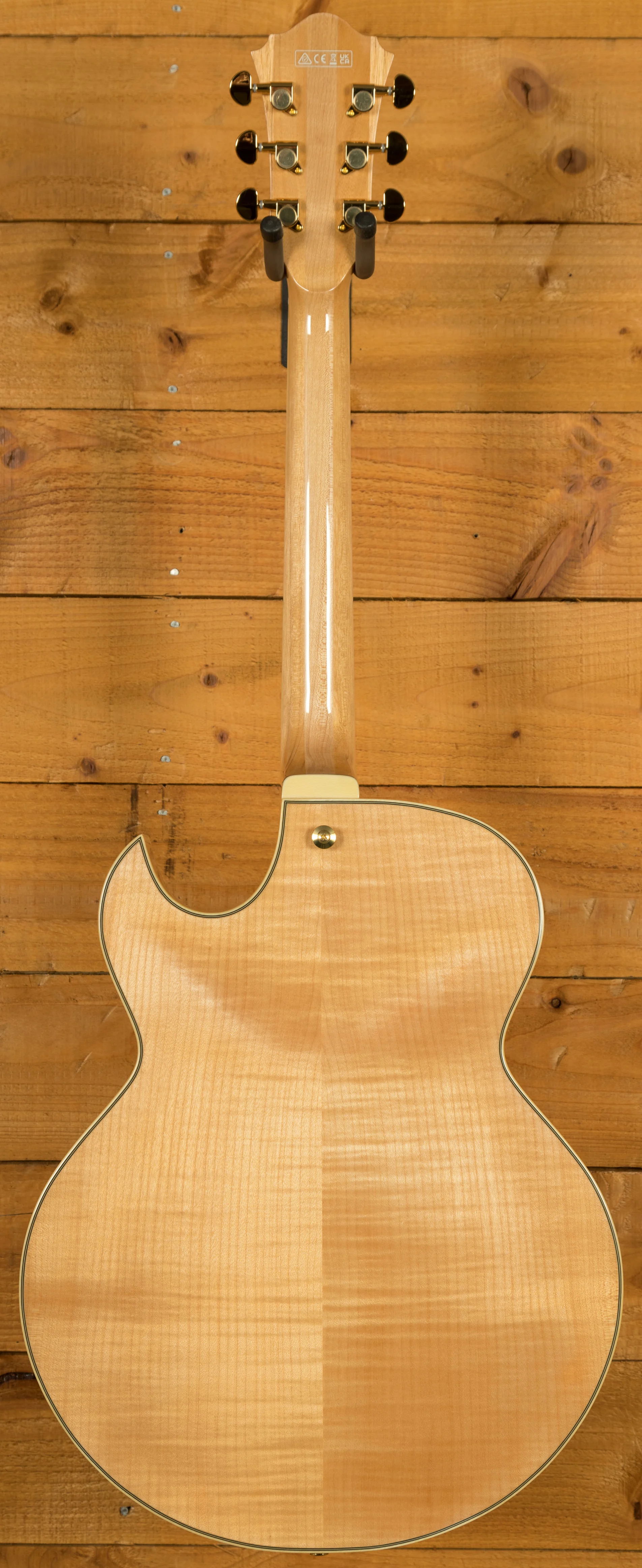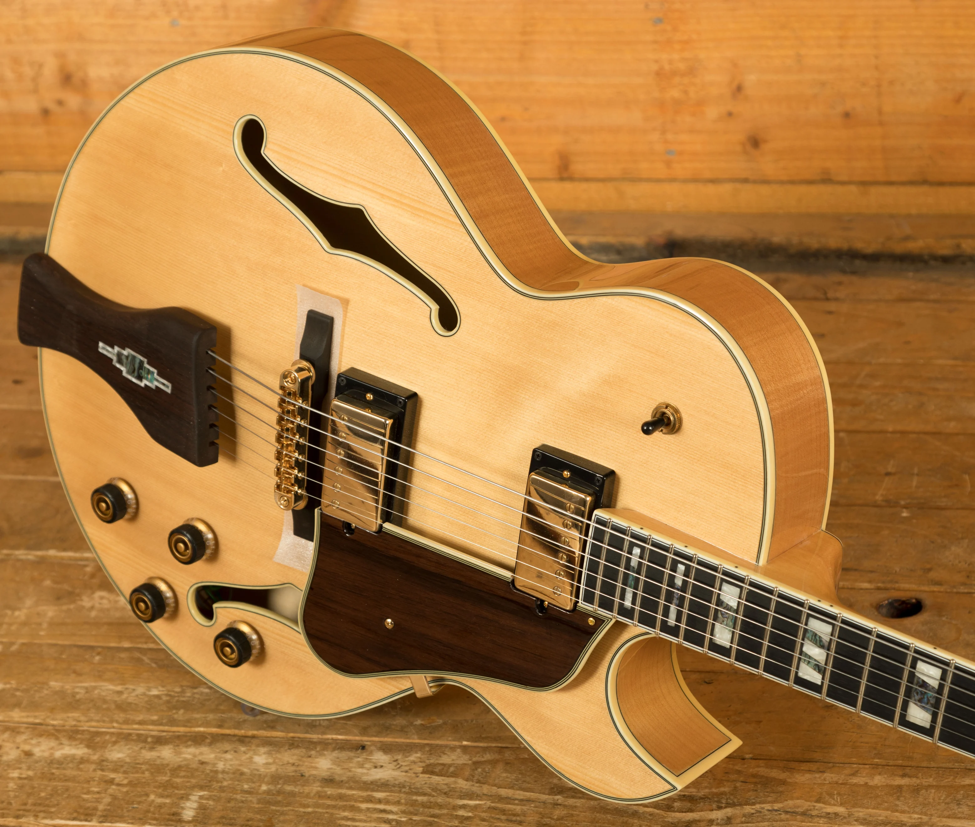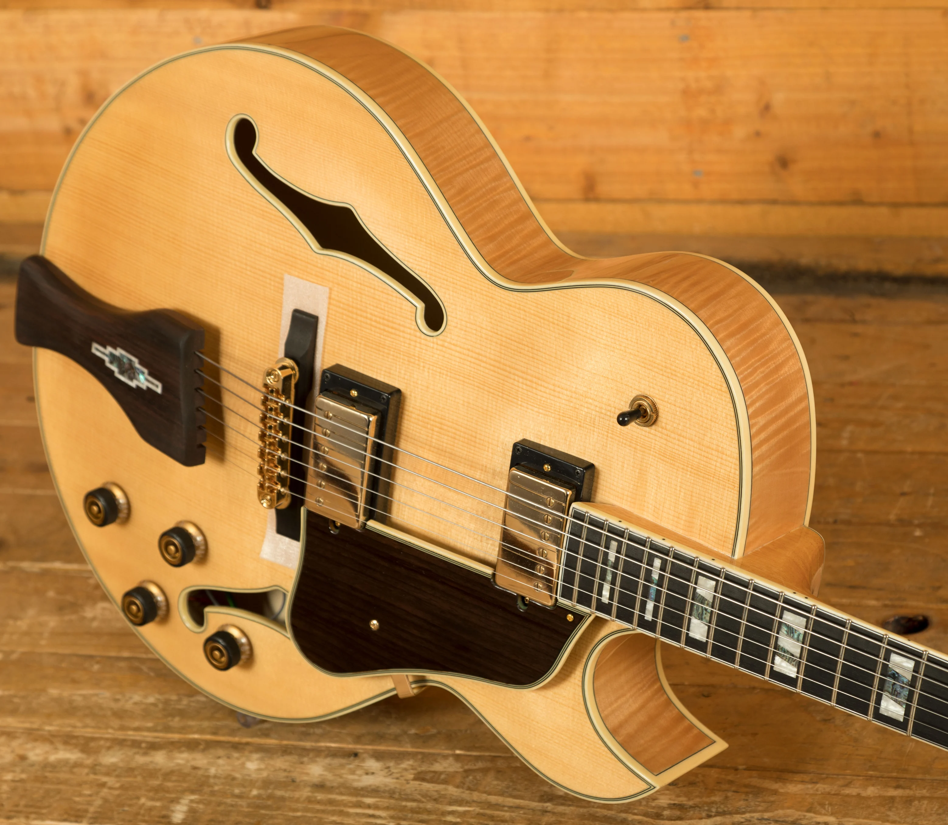 With a Vintage Yellow Sunburst Solid Spruce top on Flame Maple back and sides, you not only get stunning aesthetics but a beautiful natural tone too, rich and even, it delivers the smooth soul and jazz vibes that George Benson is so well known for. It's super dynamic and has great response.