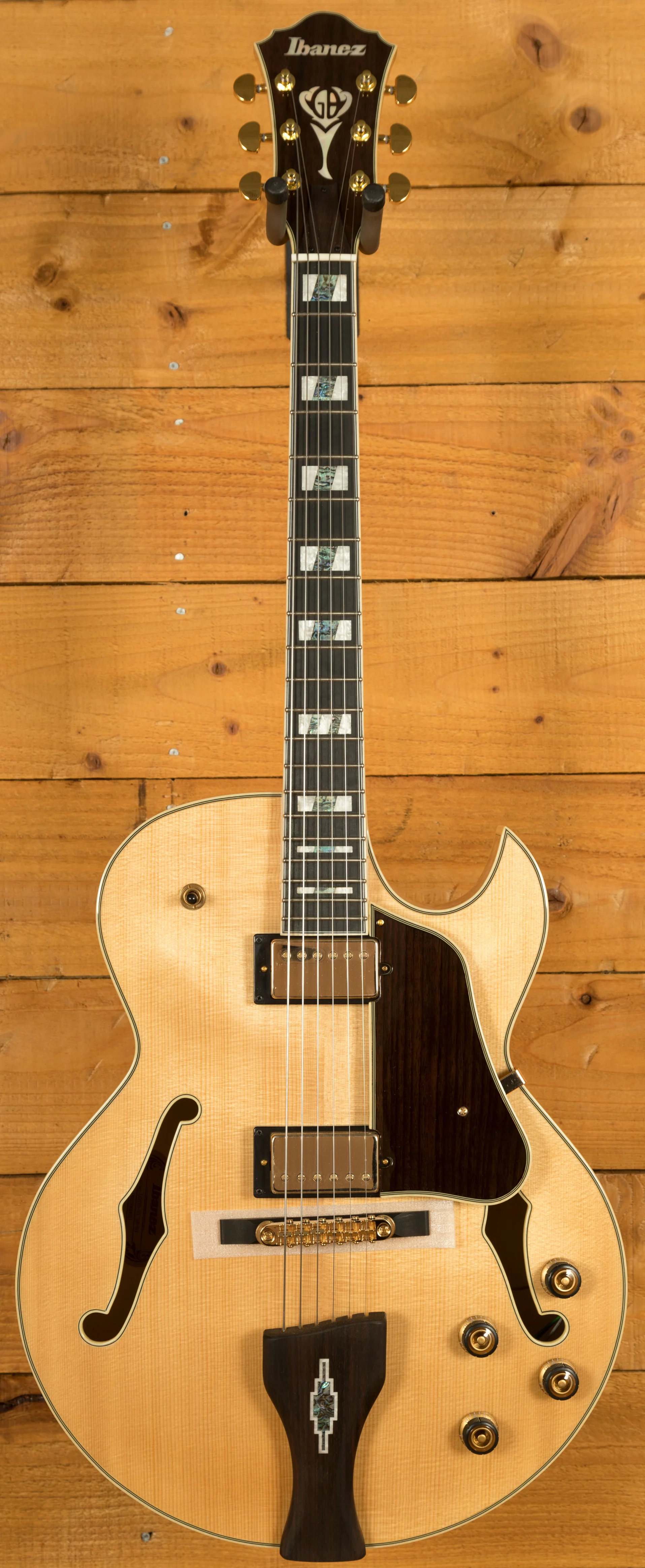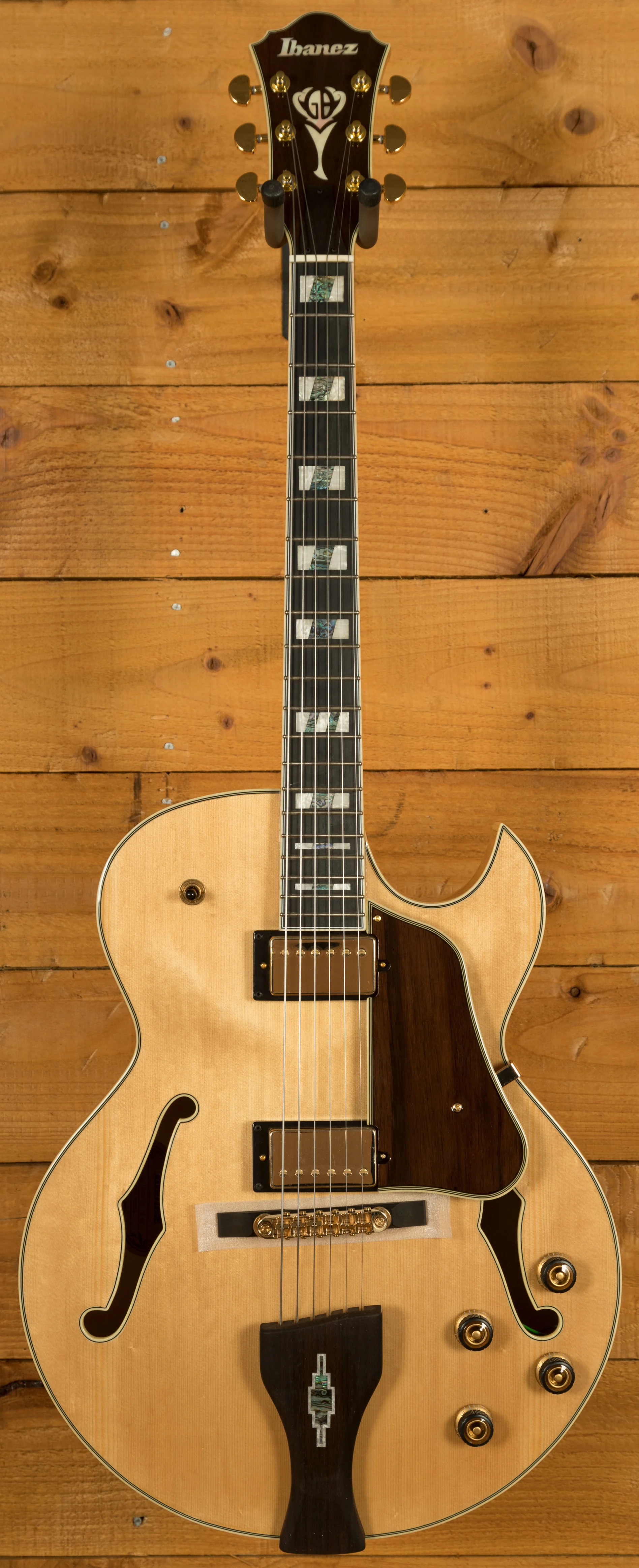 The Benson 3 piece Nyatoh/Maple set neck features a bound Ebony fingerboard, adorned with intricate Abalone inlays it has a real premium feel. With 20 medium frets, a 24.65" scale and Ibanez Artstar fret treatment, it plays like a dream.