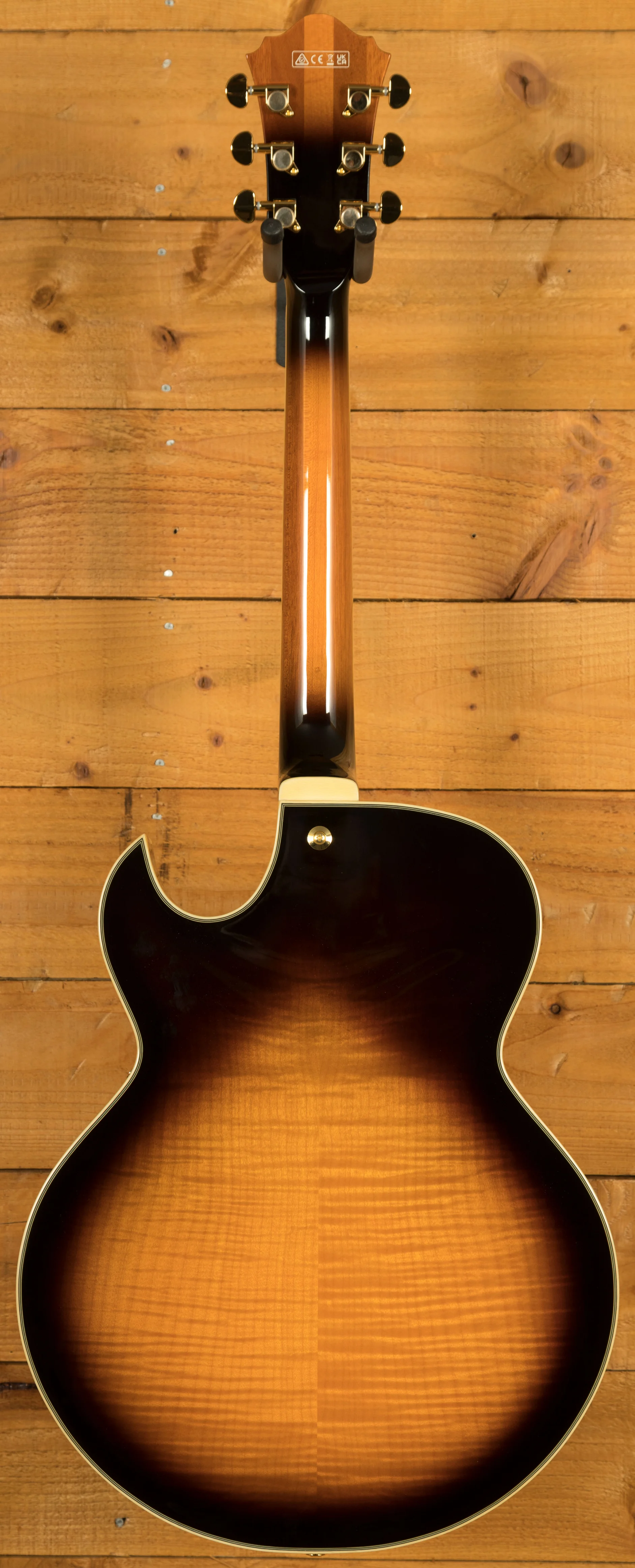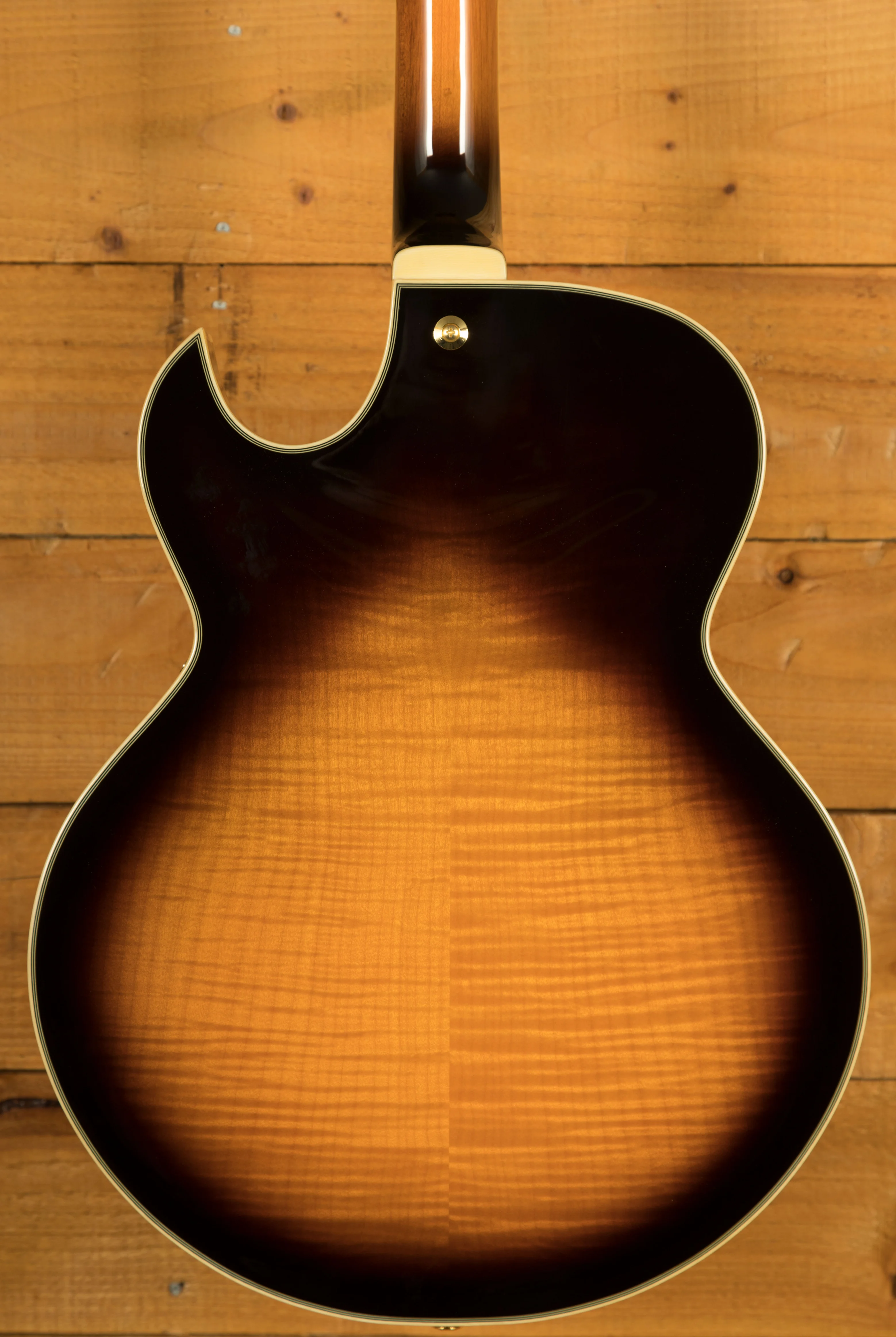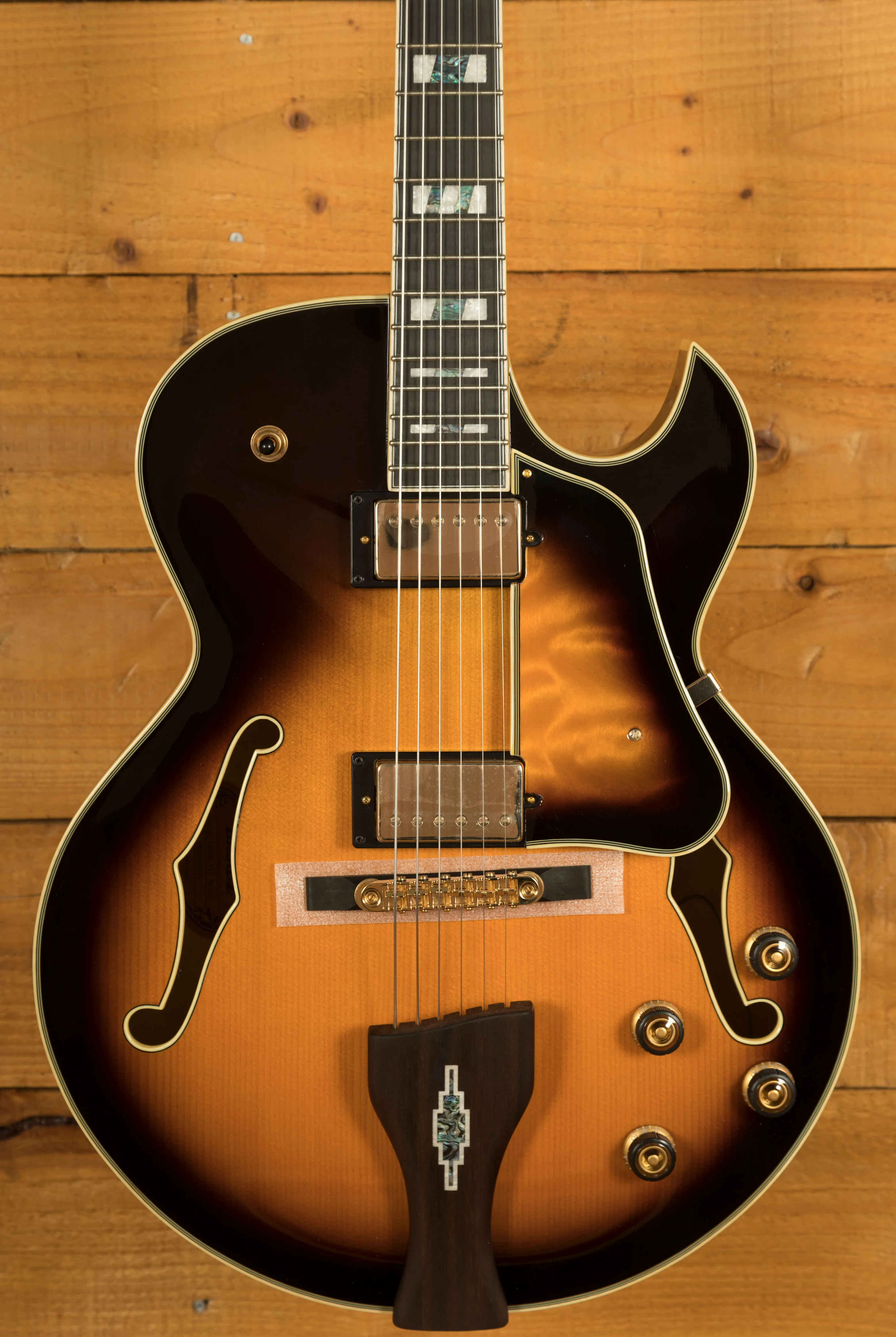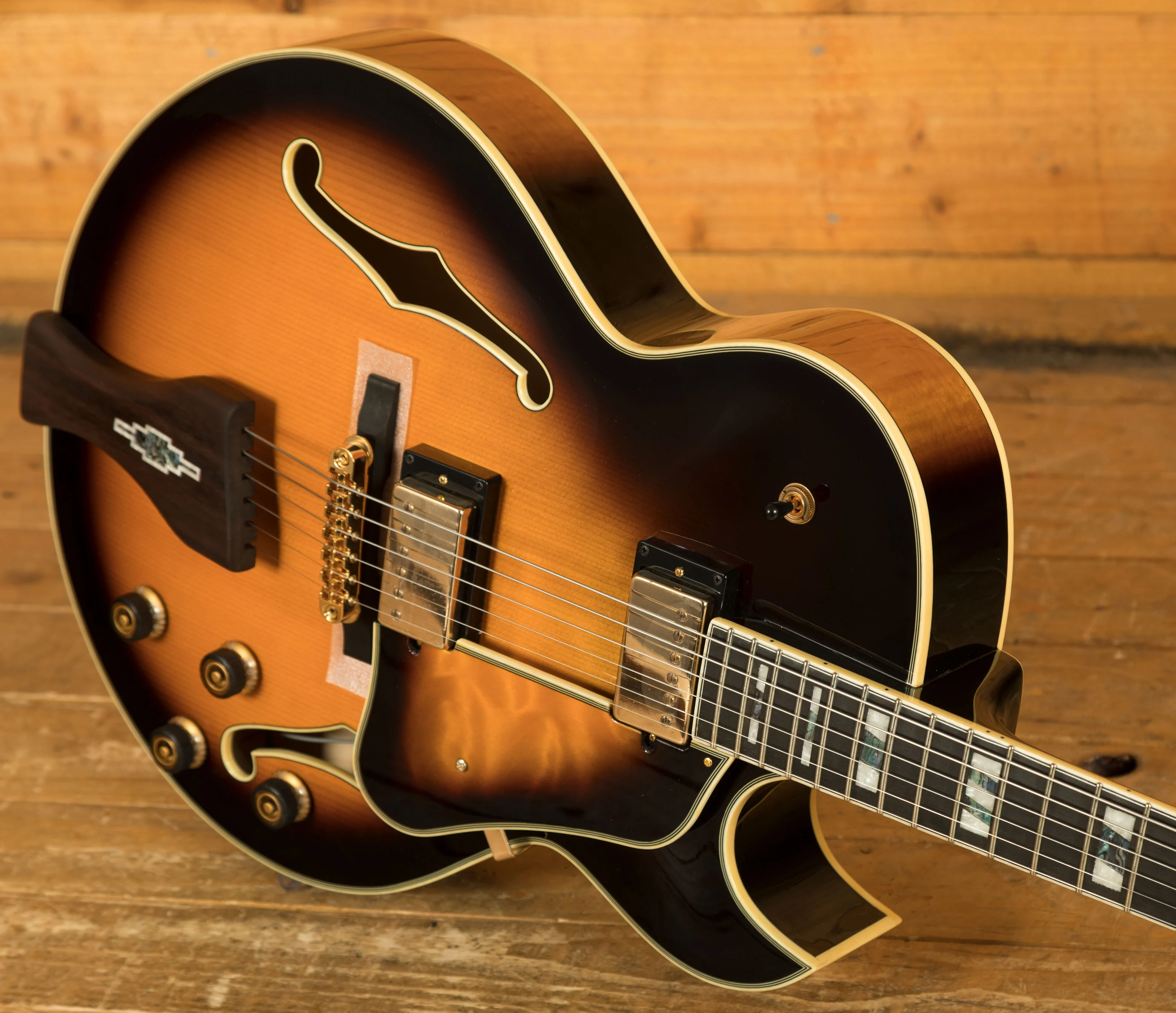 With a Vintage Yellow Sunburst Solid Spruce top on Flame Maple back and sides, you not only get stunning aesthetics but a beautiful natural tone too, rich and even, it delivers the smooth soul and jazz vibes that George Benson is so well known for. It's super dynamic and has great response.