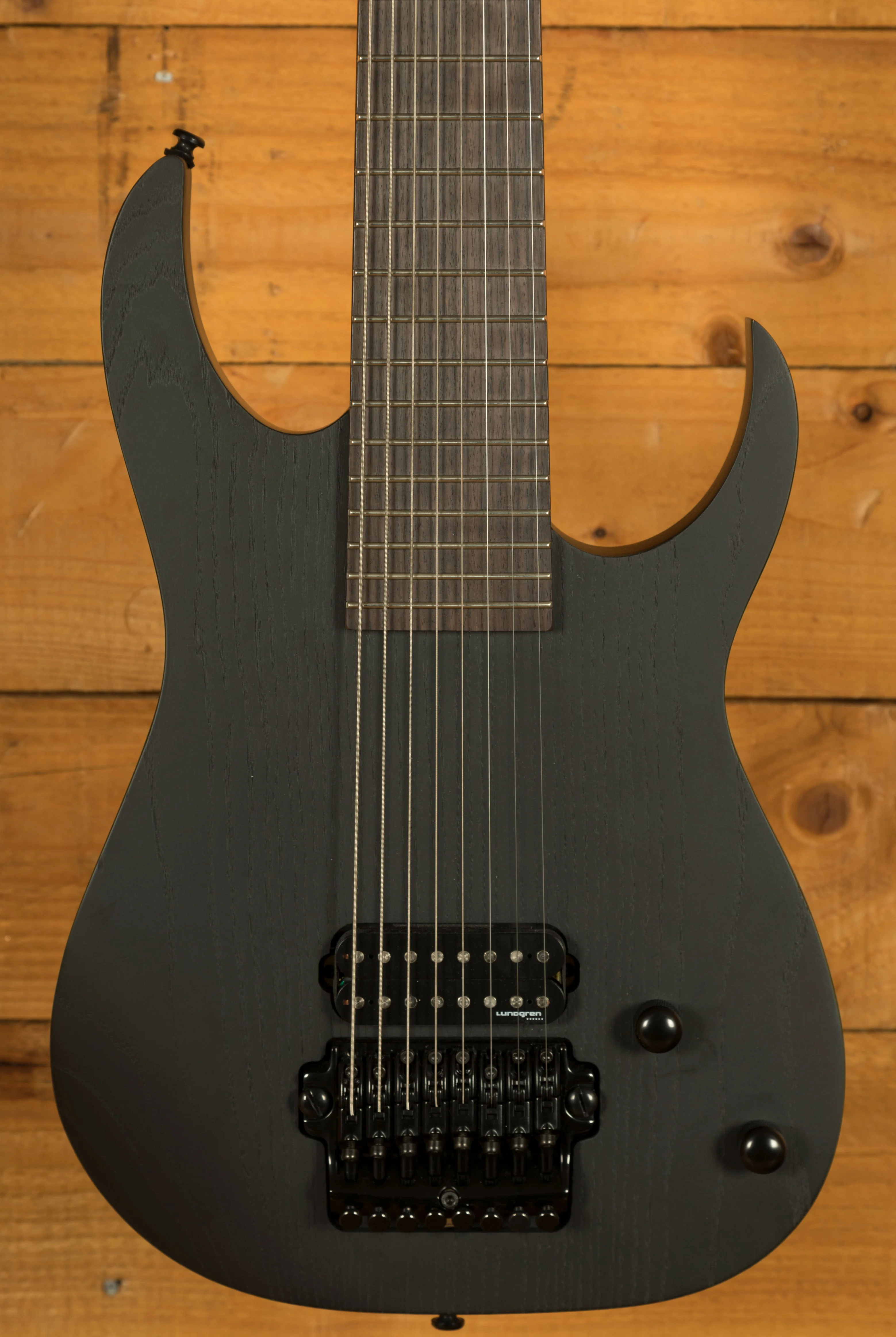 The FX Edge III-8 bridge combines fixed bridge sustain and double-locking tuning stability.