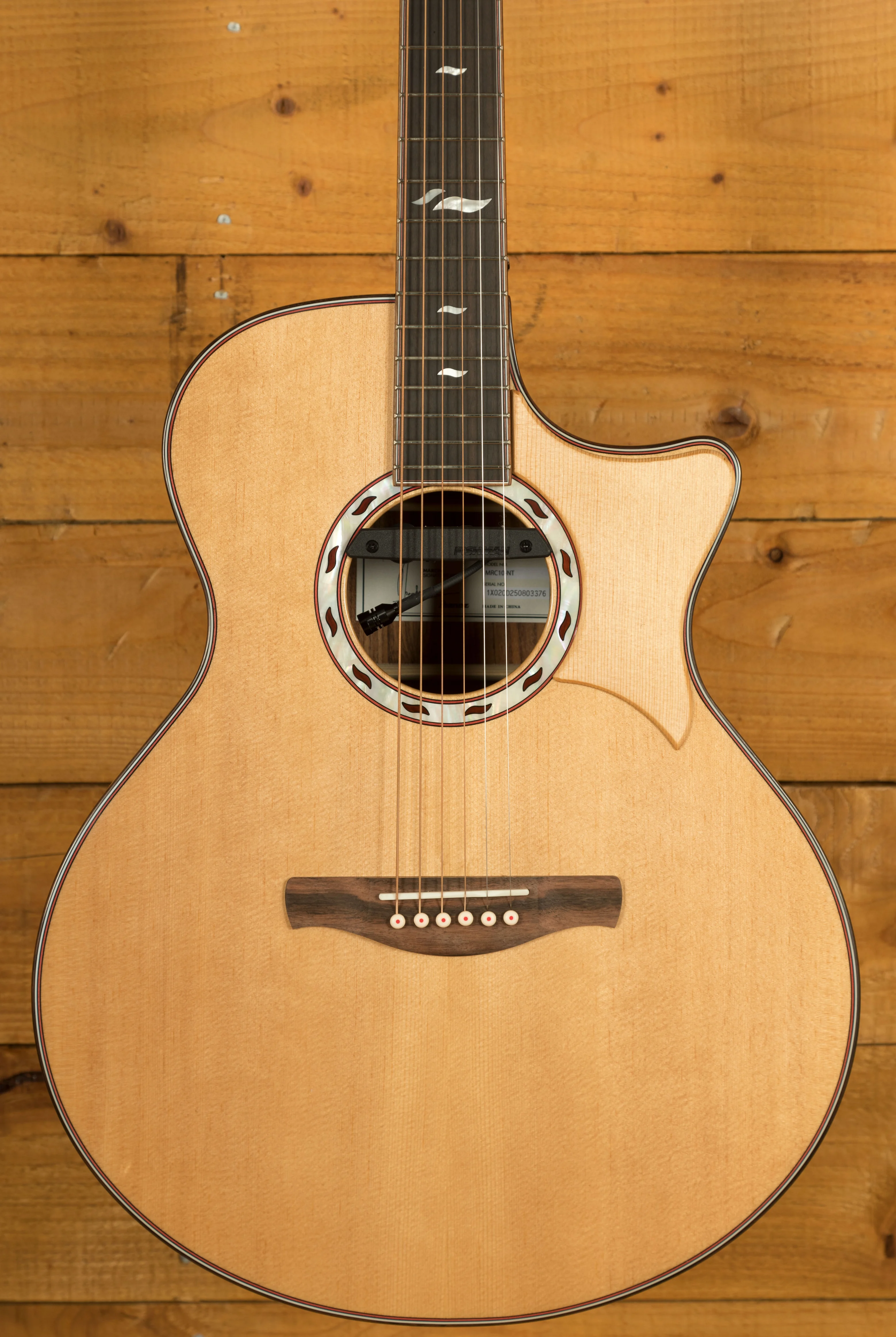 Solid Sitka Spruce top adorns this guitar to give a hugely versatile frequency range with clarity and power. The Pau Ferro back and sides help balance off the tone whilst the Nyatoh neck grants a rich mid-low end - with the added benefit of looking gorgeous. Built with X-M bracing and reinforcing wood plate, the top stands up to Marcin's energetic percussive playing, with the oil-finished solid Sitka Spruce scratch pad enhancing your scratching and tapping further.