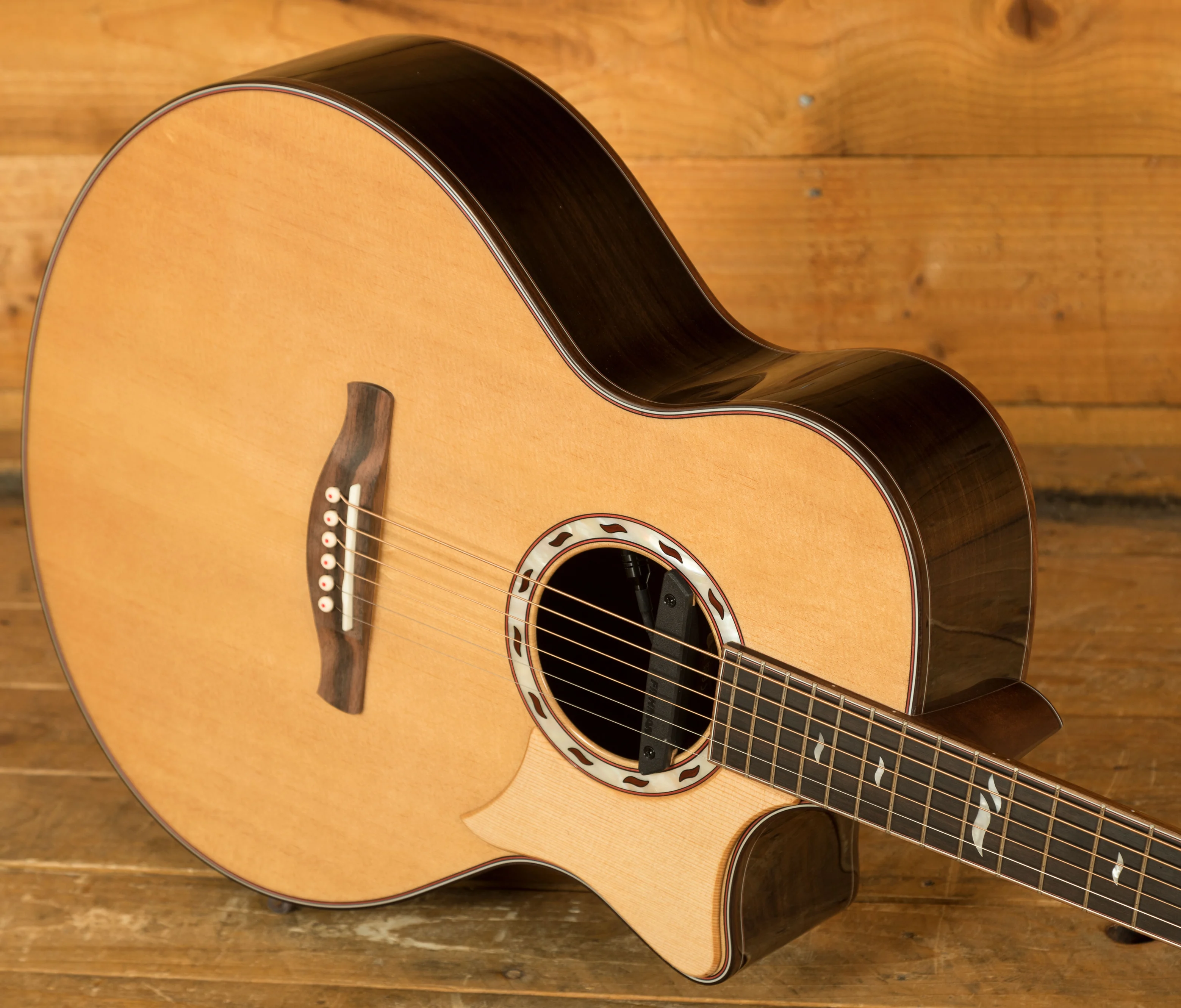 Don't let the guitar's exquisite tone be lost - the on-board Fishman Rare Earth Mic Blend Active soundhole pickup and preamp relays warm and transparent sounds from both the strings and percussive aspects of playing with a bass extension/roll-off switch to tailor it to your taste.