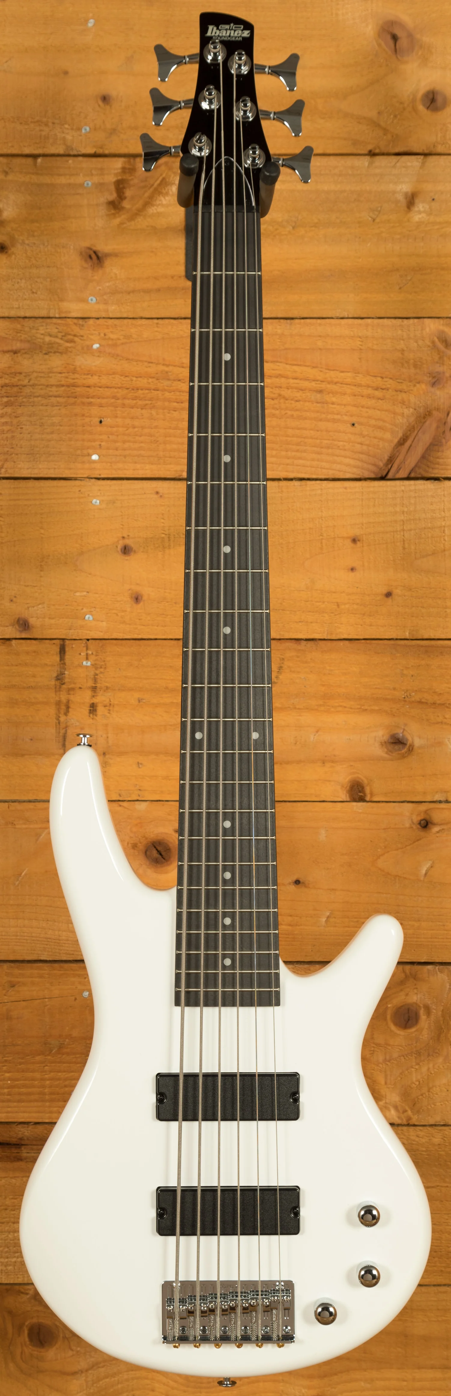 The GSR186 is Ibanez's first 6-string model in the SR Gio Series, offering extended range and sleek design at an entry-level price. Finished in Pearl White with chrome hardware, it delivers a clean, modern aesthetic with solid performance features.