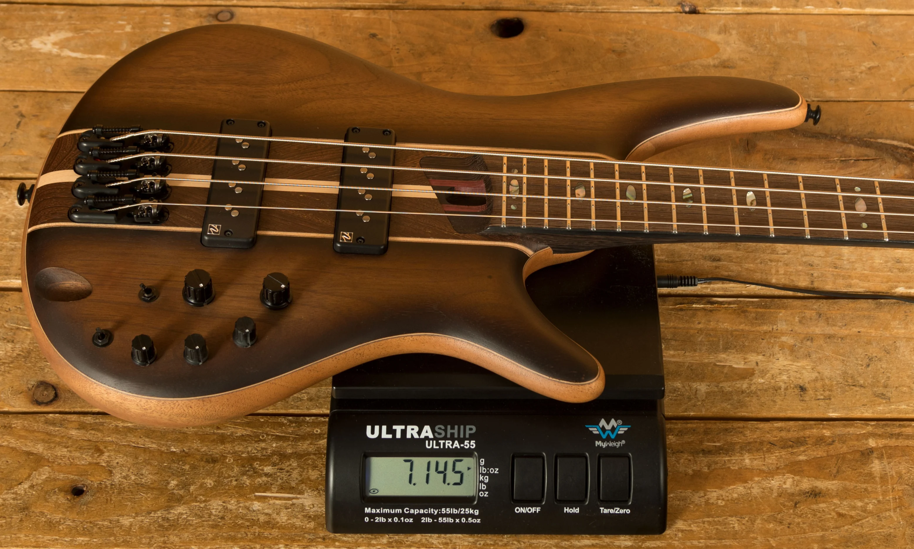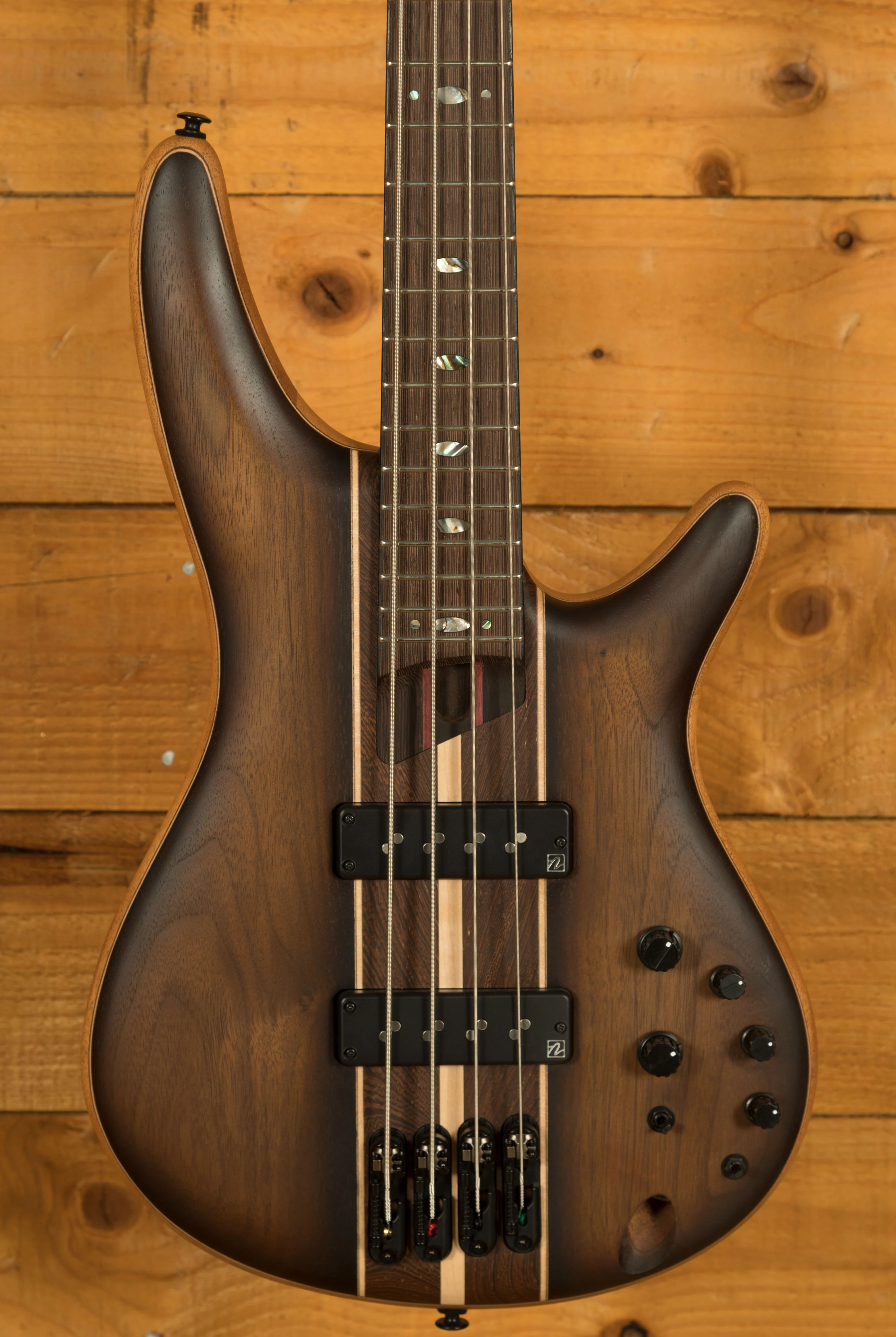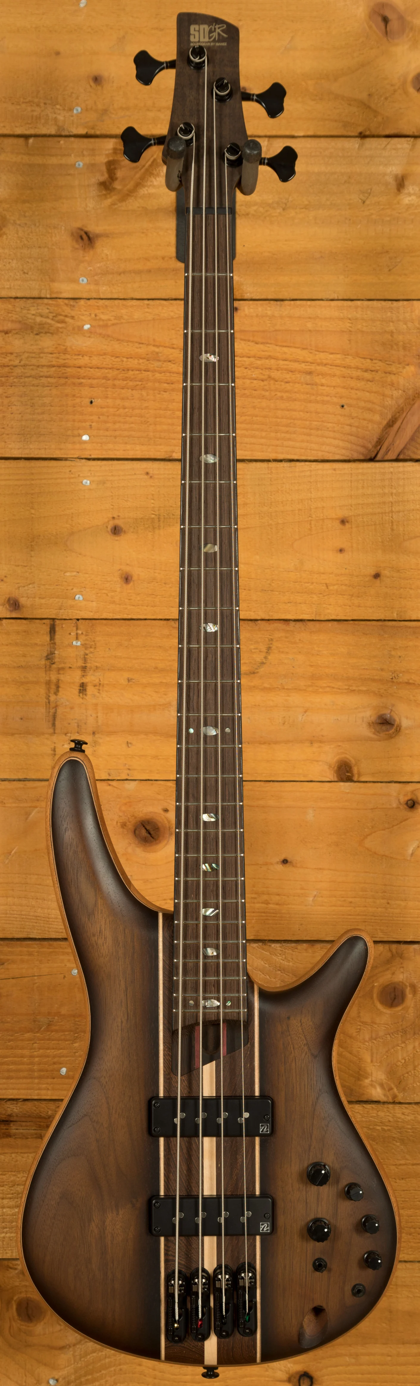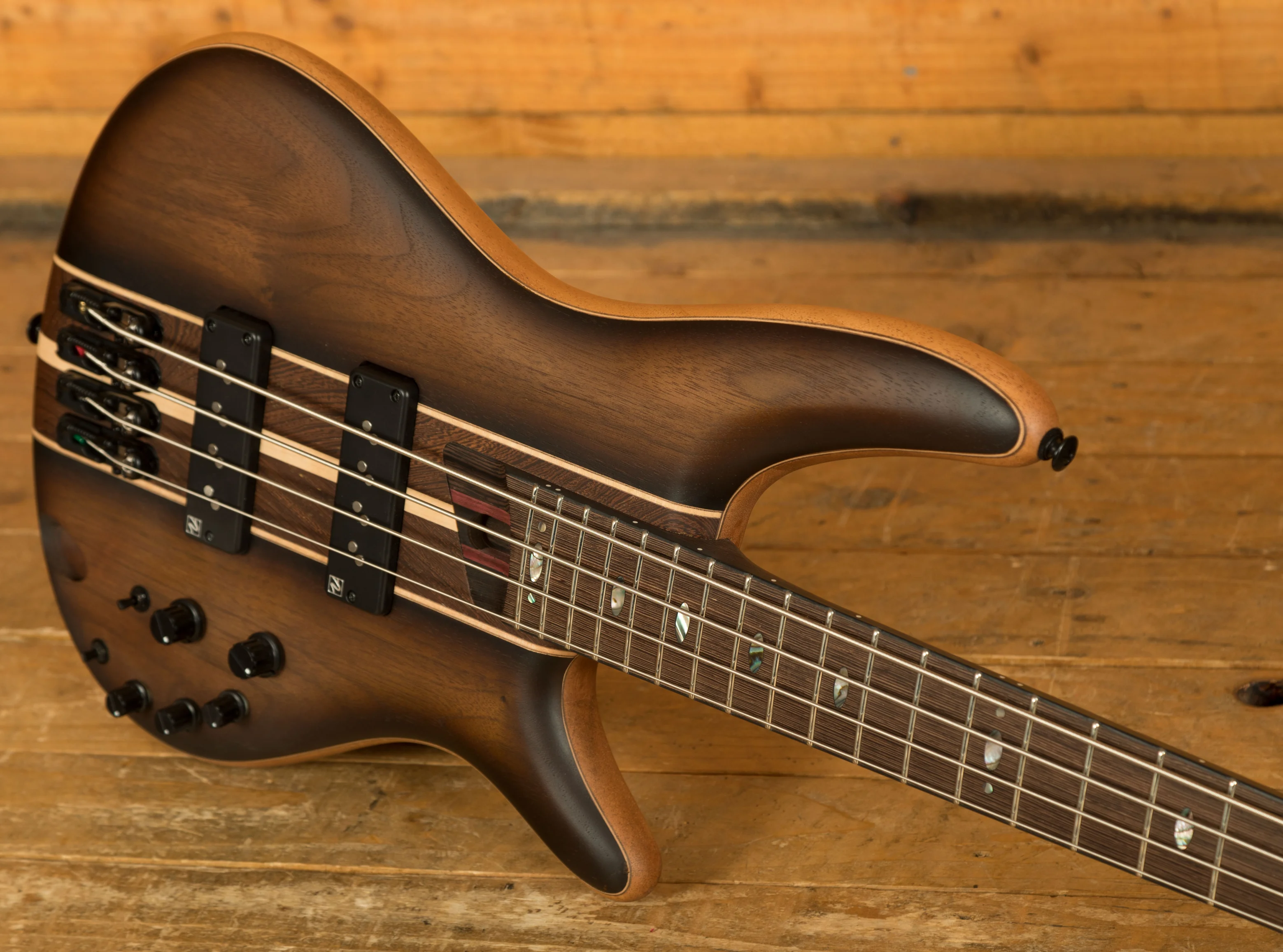 The SR1350B boasts a Walnut/Panga Panga/Maple top on an African Mahogany body, providing a stunning look and feel that exudes luxury and class. The Walnut/Panga Panga/Maple top is a standout feature of this bass guitar, flaunting a gorgeous wood grain that is sure to catch your eye. The African Mahogany body delivers a rich mid-low end, providing a well-balanced tone that is both warm and punchy.
