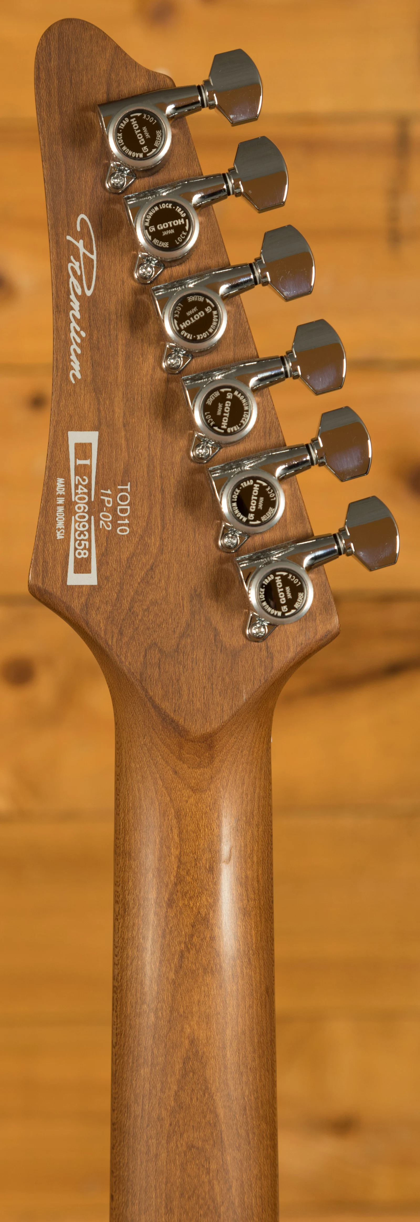 Crafted from American Basswood, the body of the TOD10 delivers a natural, flat tone with a balanced response, supporting a wide range of playing styles. The Gotoh T1502 tremolo bridge is designed for precision and stability, featuring steel saddles and a zinc tremolo block for quick response and articulation. The 10.5mm string spacing makes picking across strings effortless, while the snap-in construction allows easy loading of a tremolo arm.