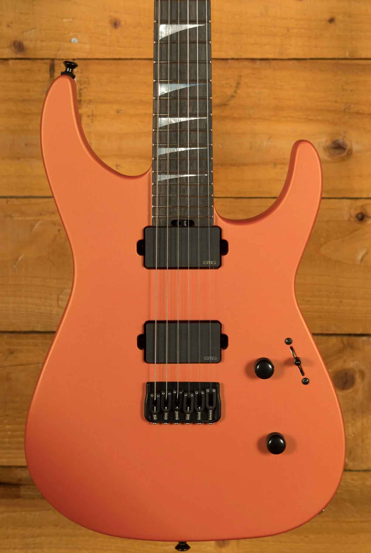 Sonically, the SL2MG HT is a force to be reckoned with, thanks to its powerful EMG 81 and EMG 85 humbucking pickups. This classic combination delivers a commanding punch with exceptional clarity and enhanced note definition - essential for modern metal styles. The EMG 81 in the bridge position offers searing high-end cut and fluid sustain, perfect for soaring leads, while the EMG 85 in the neck provides a versatile range from smooth, bluesy tones to thick, growling rhythms. A simple yet effective control layout consisting of a three-way blade switch, single volume, and single tone control allows players to dial in their ideal sound with ease.