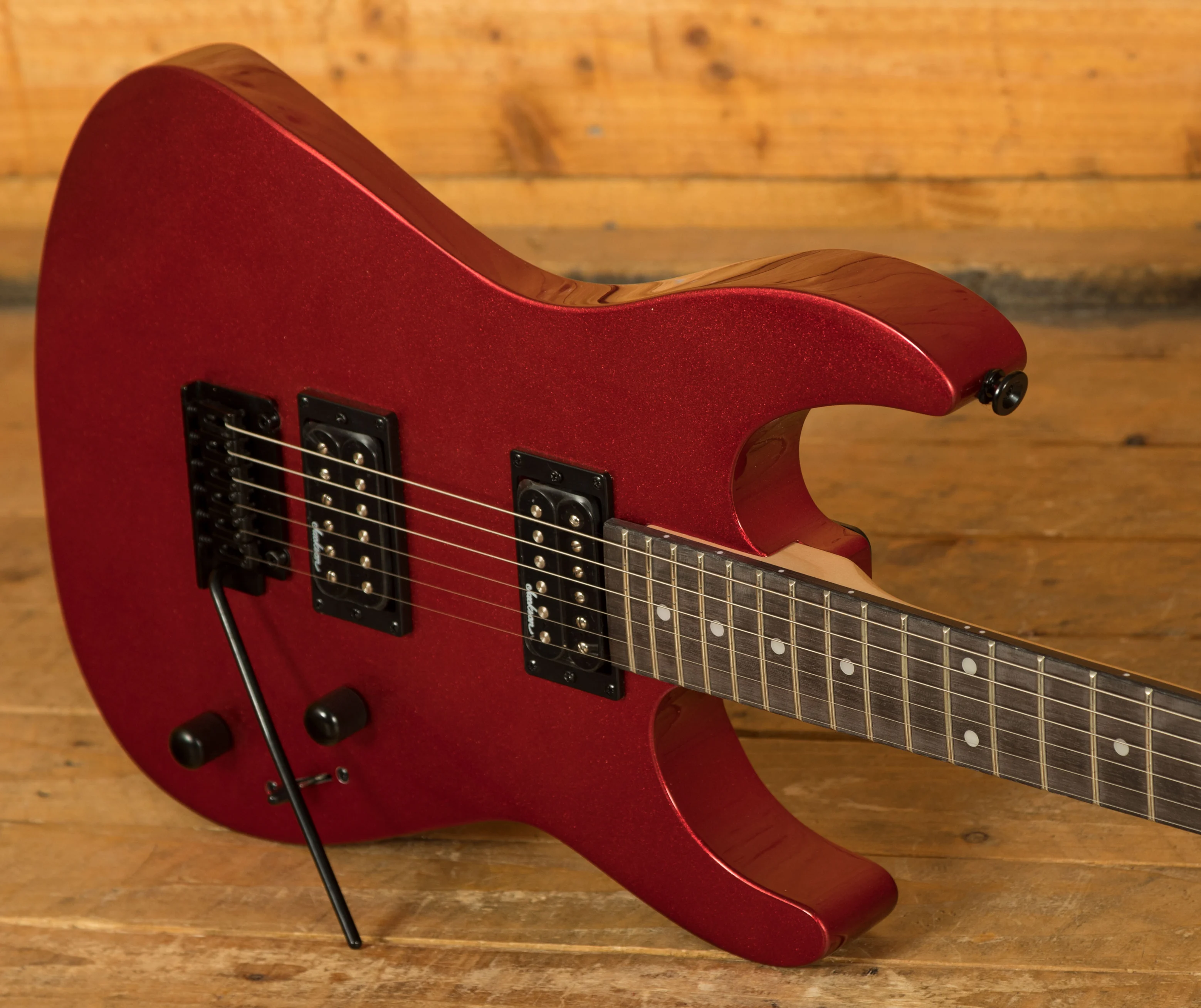 The JS Series Dinky JS11 features a poplar body, bolt-on maple speed neck with graphite reinforcement for rock-solid stability and a 12-radius amaranth fingerboard with 22 jumbo frets and white dot inlays. The flat radius allows for easier chording, feels great for rhythm playing and handles bends well during lead playing.