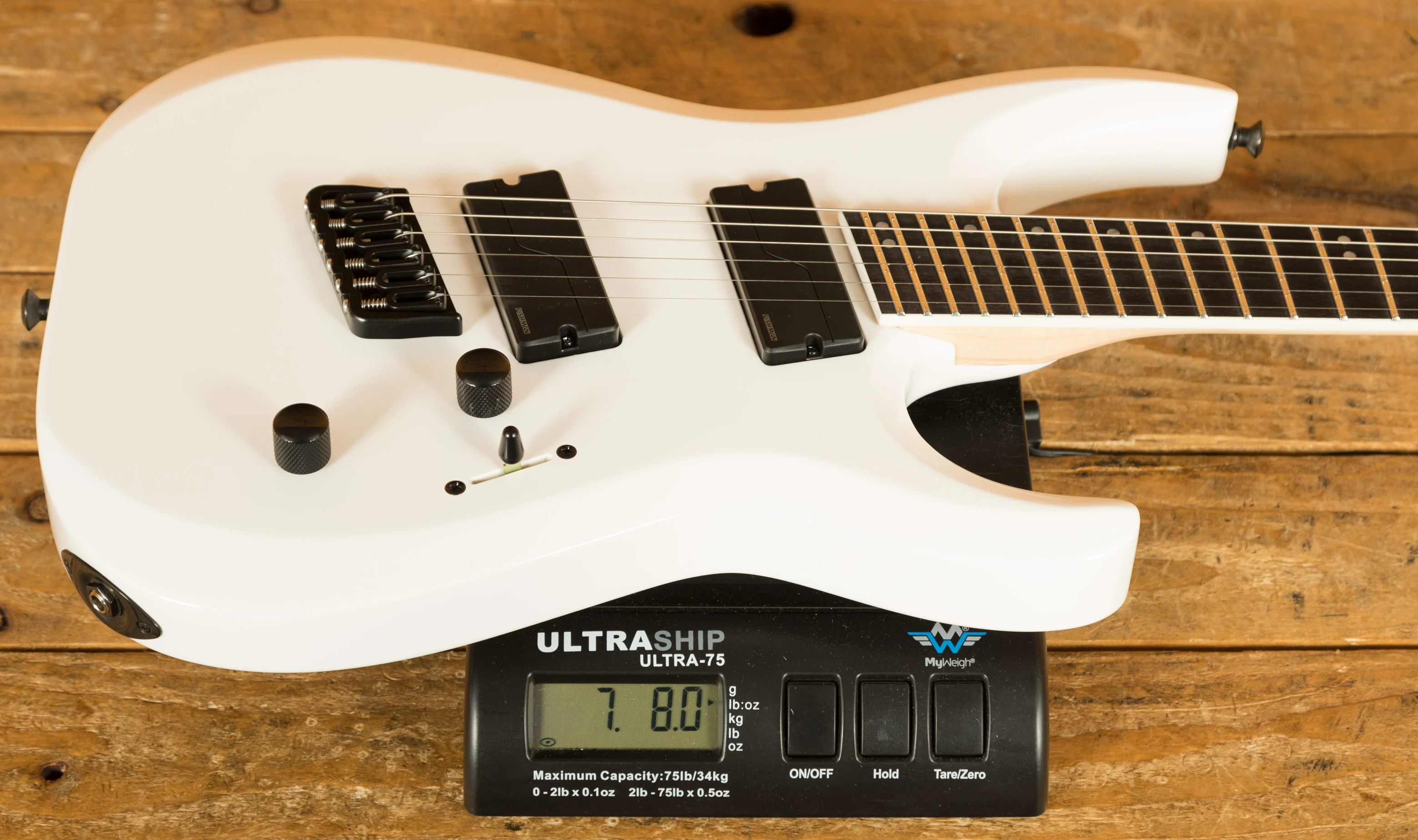 Unparalleled style arrives in the form of a dazzling Snow White finish, complete with a reverse 3x3 AT-1 color matched headstock and black hardware.