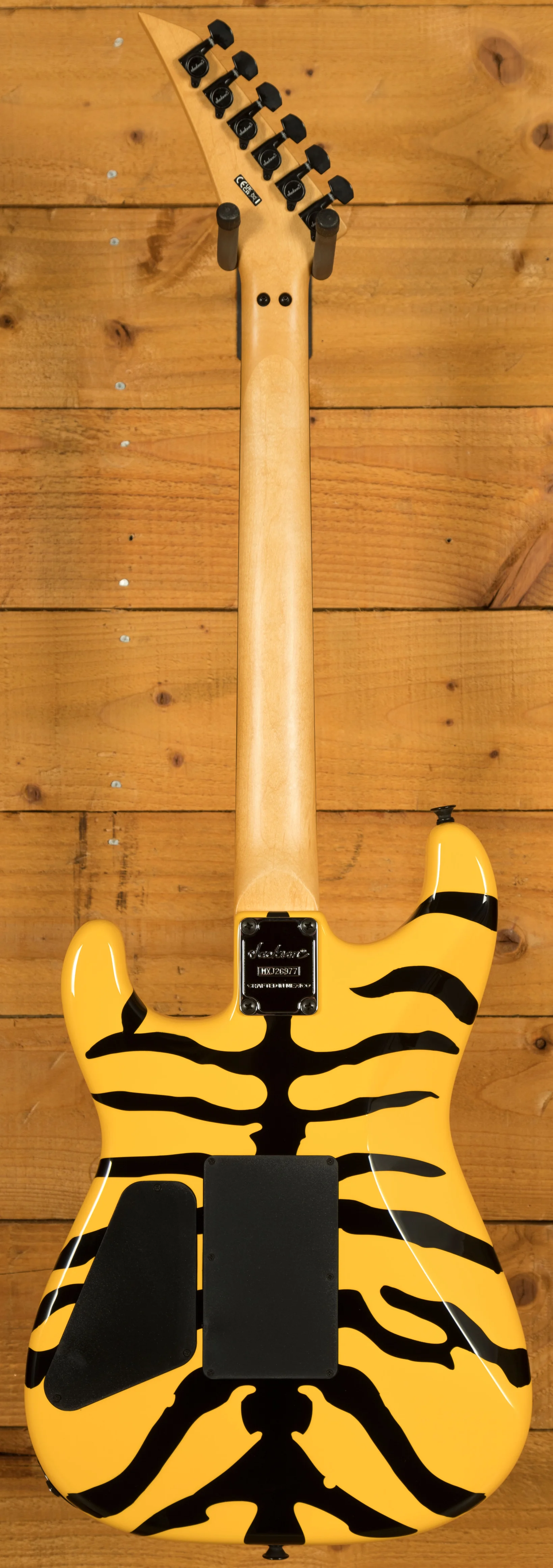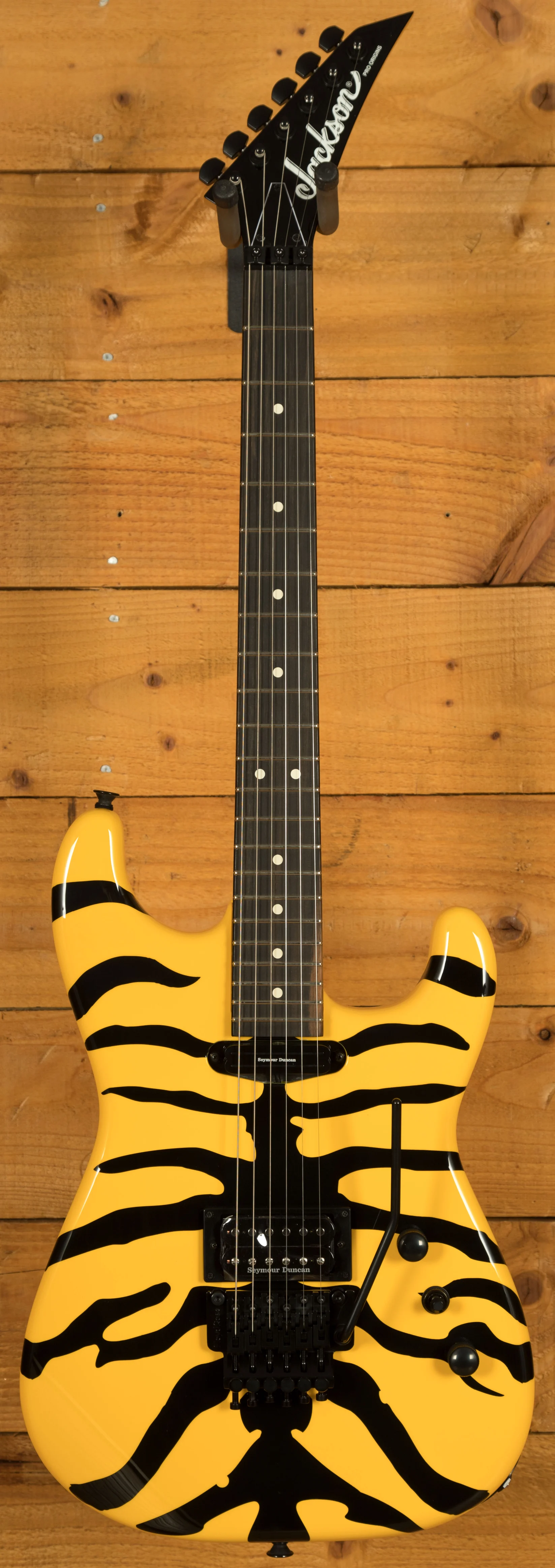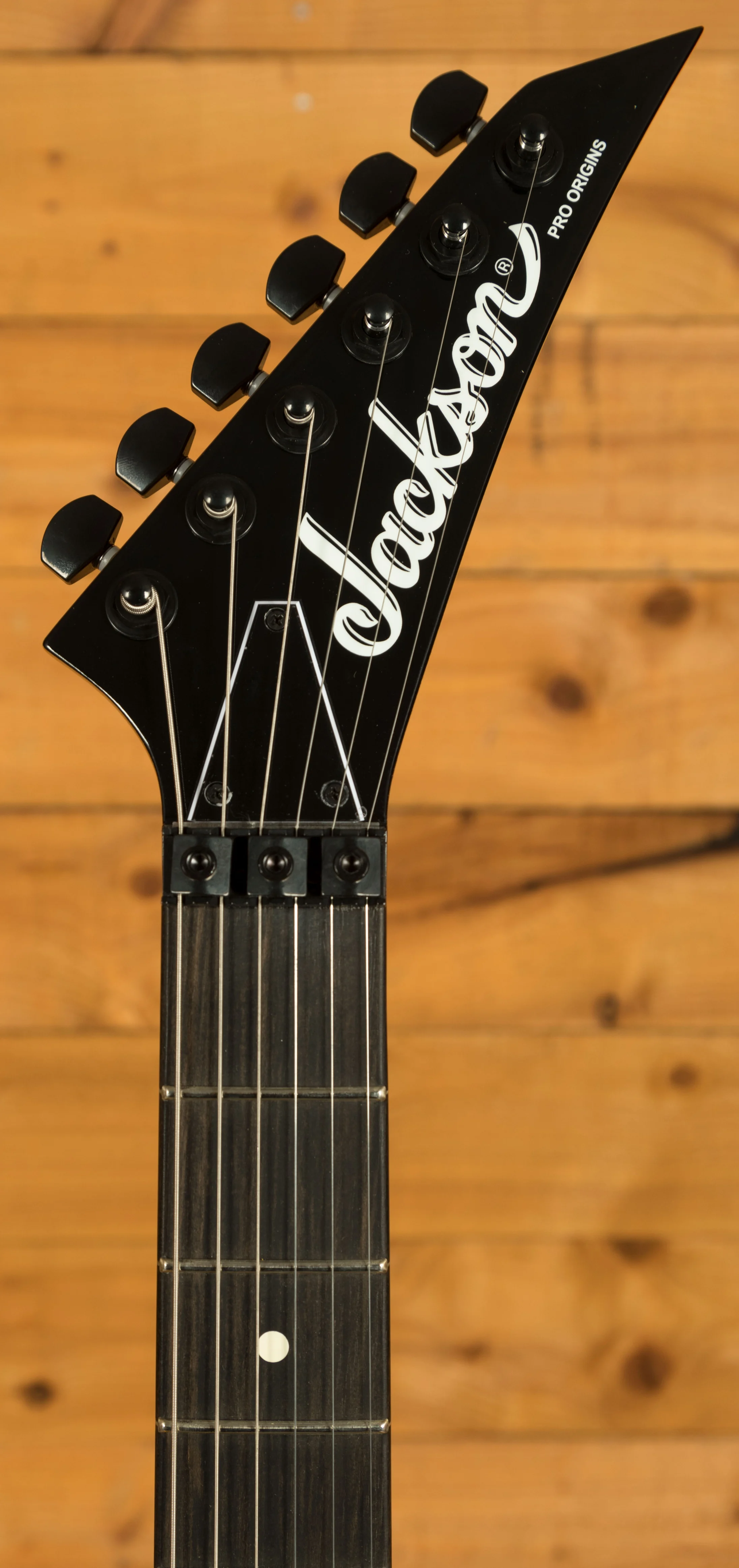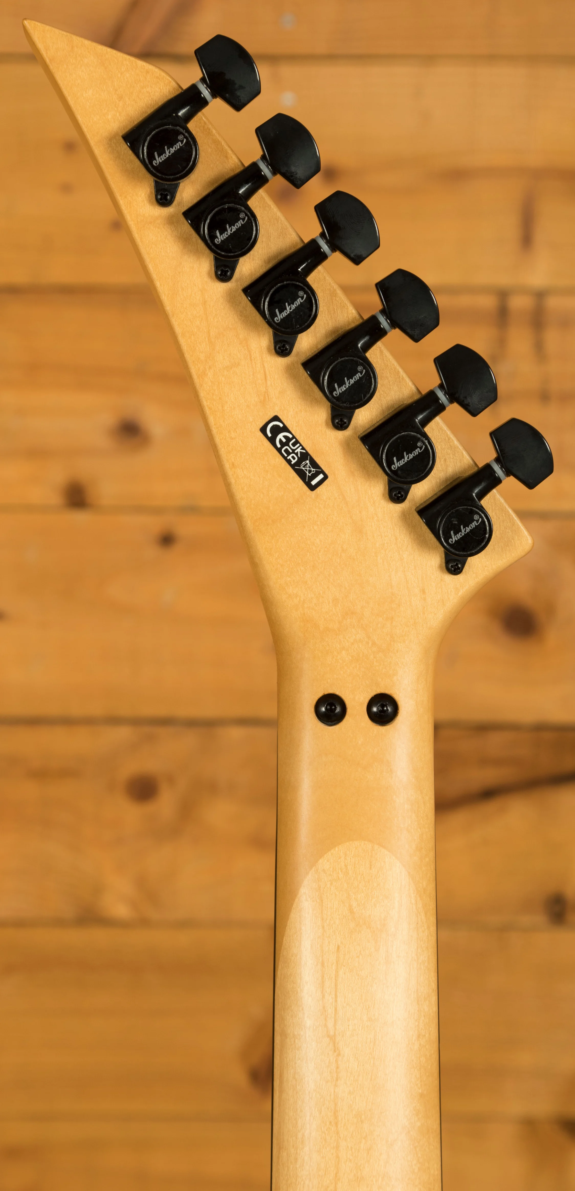 A tinted maple neck captures the amber glow of perfectly aged wood while offering a sleek, speed-optimised profile for effortless playability. Paired with a 12"-16" compound radius ebony fingerboard, large dot inlays and a top-mounted Floyd Rose 1000 Series double-locking tremolo, the Pro Origin 1985 Series blends vintage inspiration with modern performance - delivering the unmistakable attitude, tone and innovation that made Jackson a legend.