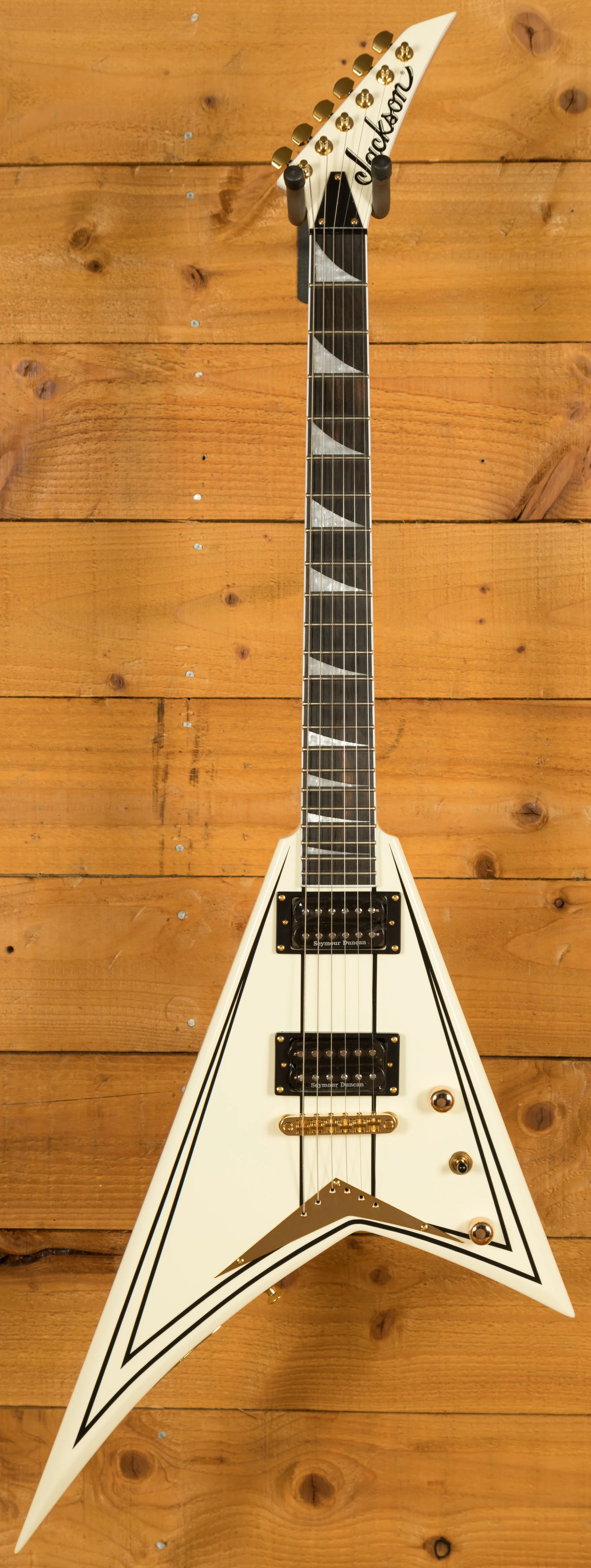Chosen specifically for their incredible sound, a pair of modern Seymour Duncan Distortion humbucking pickups drive this guitar's voice, offering highly balanced, flexible tone, with plenty of high output for pristine cleans and snarling distortion. This guitar also features three-way toggle pickup switching and a Jackson compensated and adjustable TOM-style bridge with anchored tailpiece.