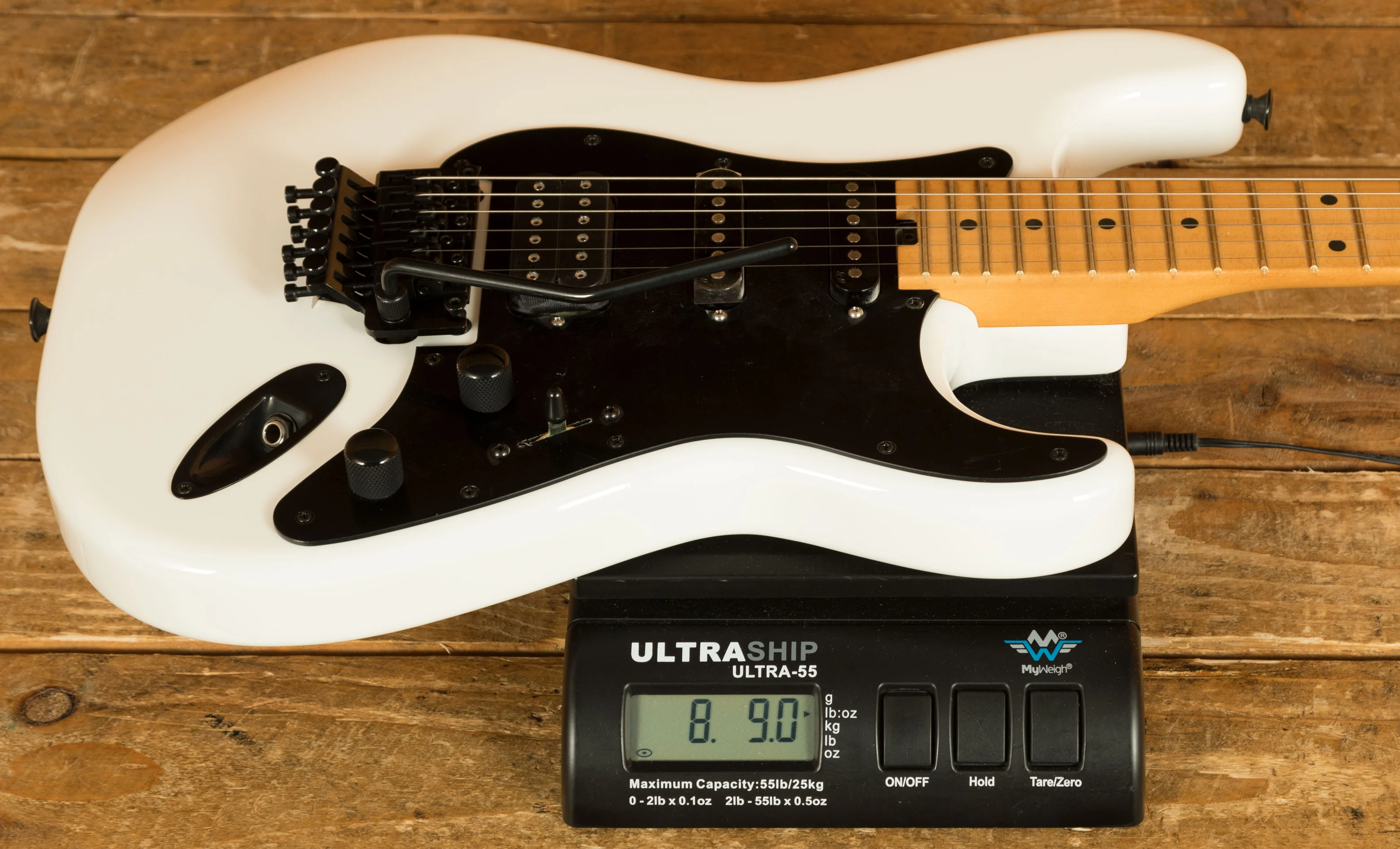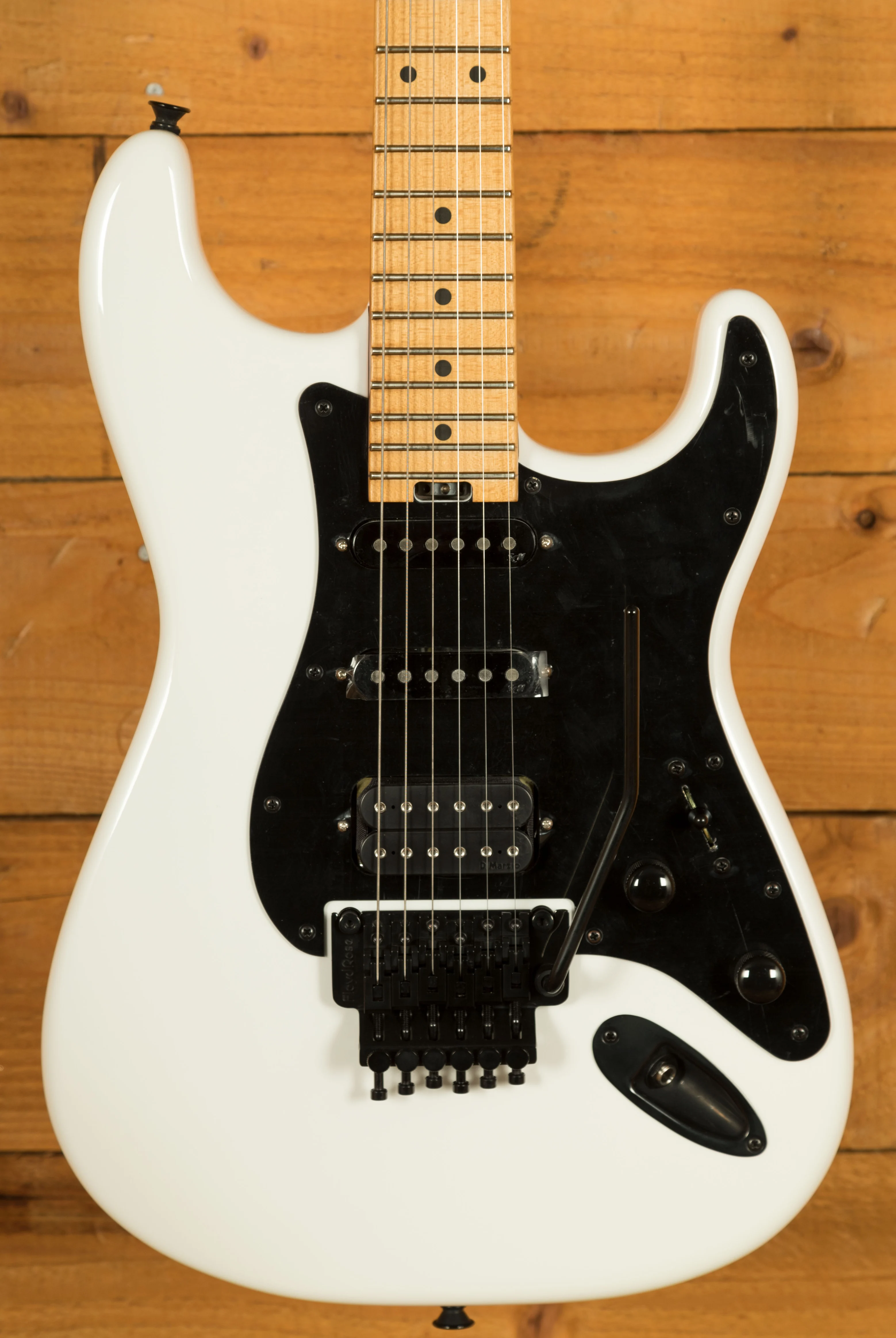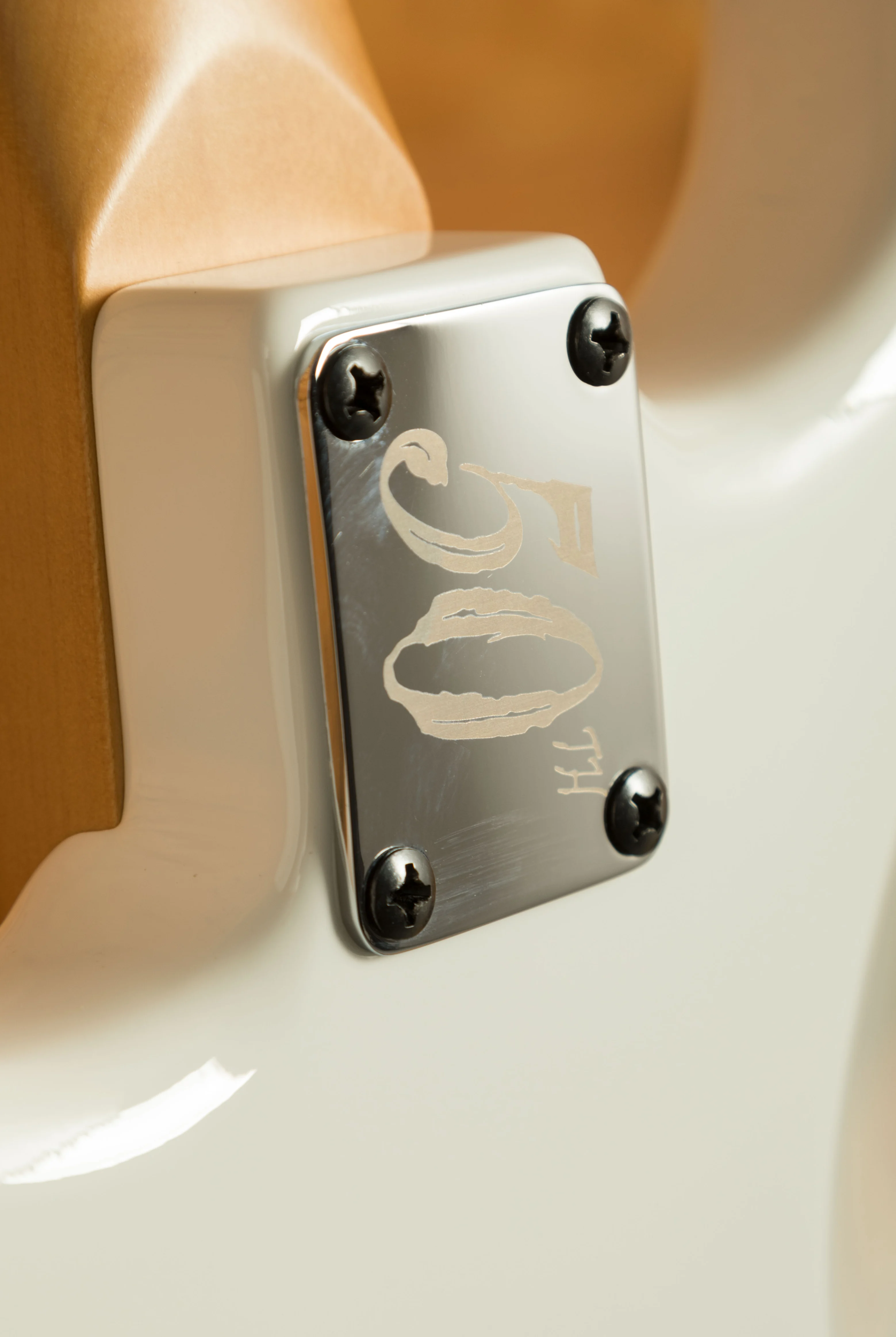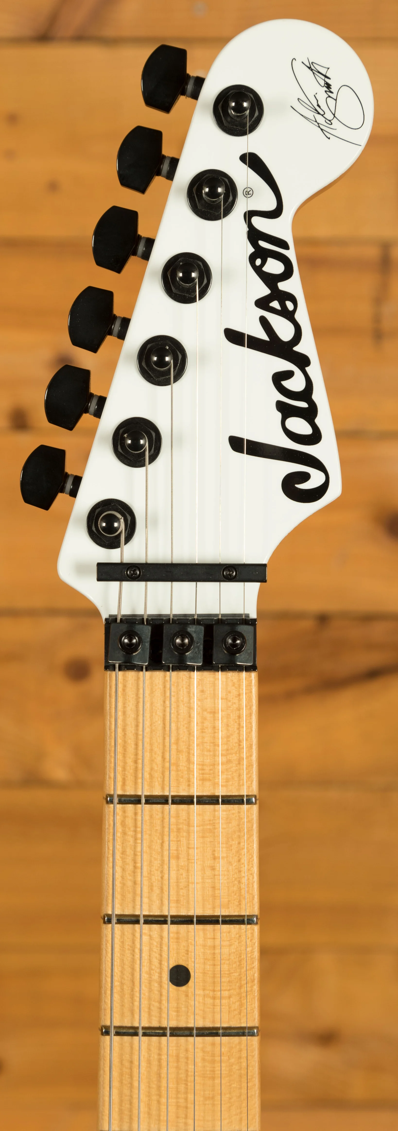 This guitar sits beautifully between his cheaper X Series models and his full-fat USA Signature. Adrian's main guitar live is still his Jackson USA model and this guitar has many of the same features, giving it the edge over the X Series model. You can get to the heel-mount truss rod easily, it has the alder body (as opposed to poplar), and a quartersawn maple neck. It has the hand-rubbed urethane neck, as Adrian loves the feel of necks worn back a bit, and this echos that smooth feel. He's also likes the Eric Clapton worn-in maple look, which this will give over time. He also loves having the Fender Strat sound on the neck and middle pickups whilst being able to provide the Maiden heaviness with the bridge pickup. The pickups in this mirror the pickups in his USA signature - DiMarzio Super Distortion DP100 in the bridge, and Samarium Cobalt Noiseless in the middle and neck. I think this version of his guitar looks killer, with the maple being tinted and with the white headstock. It's worth noting that the Floyd on this version is also top mounted, rather than recessed like the X Series version. These won't hang around and nor should they - Adrian has been delivering his killer playing and writing for decade after decade, inspiring many of us to start and continue playing. The guitar also features a cool 50th Anniversary neckplate.