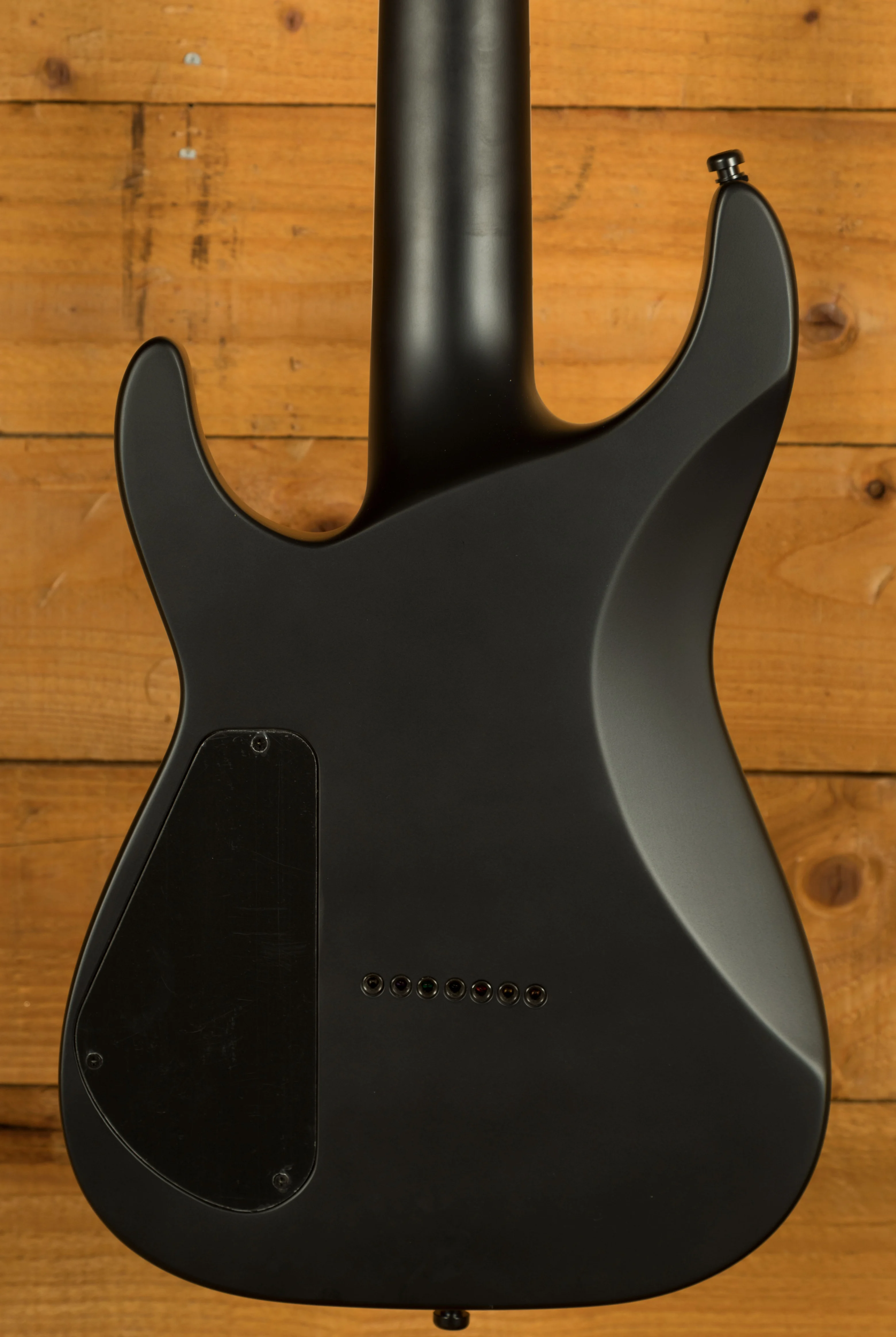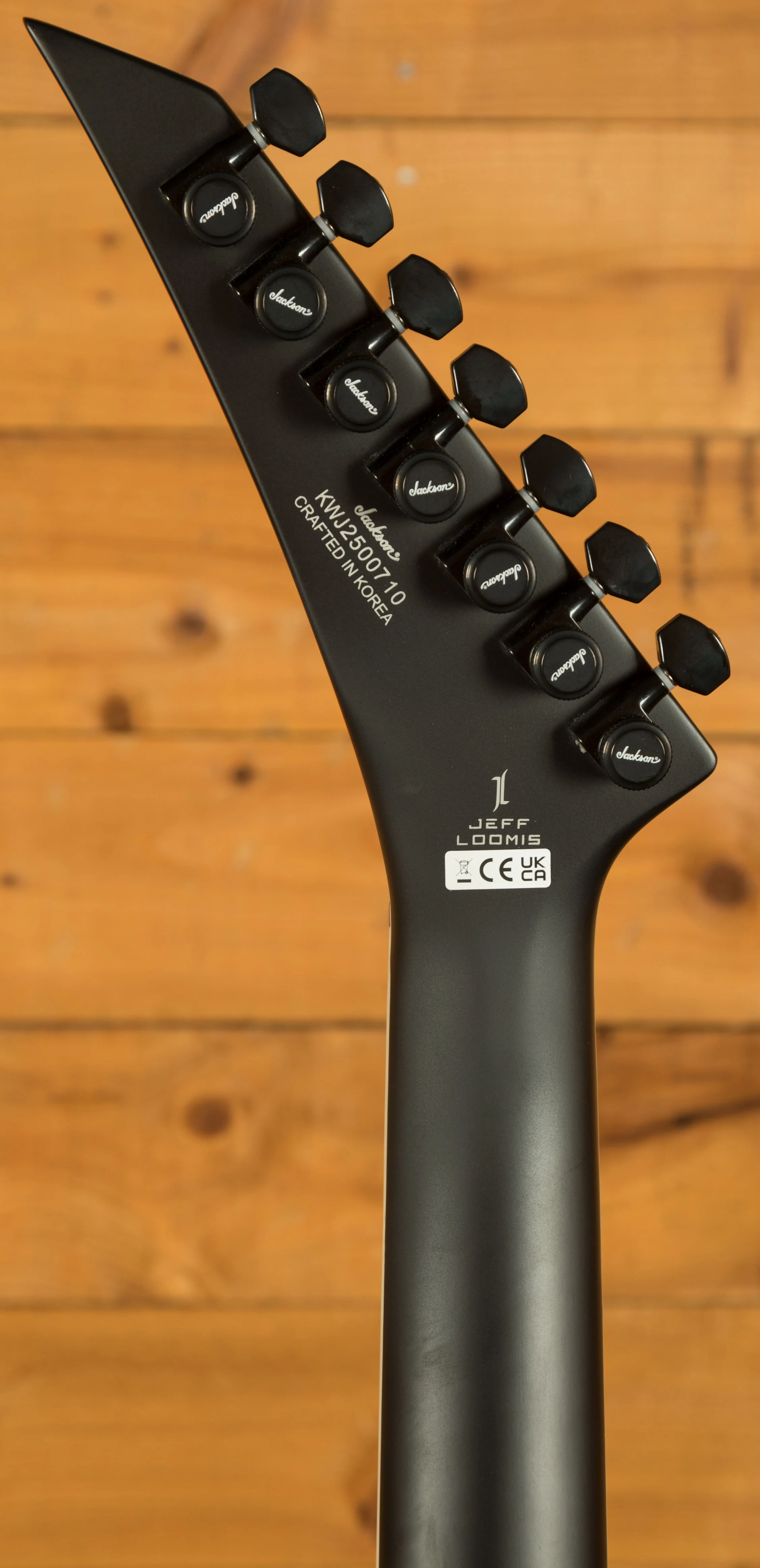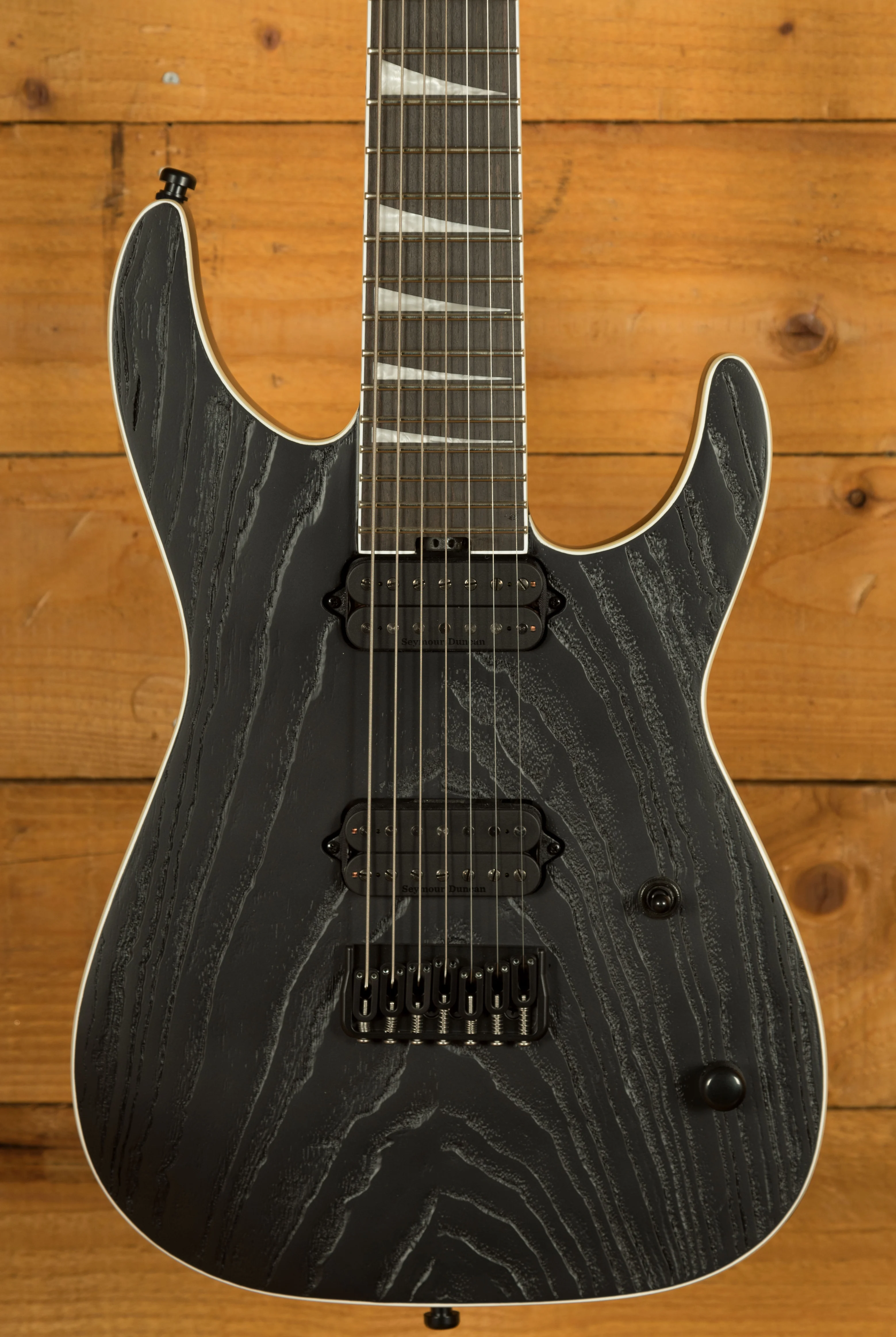 Additional hardware includes a Hipshot hardtail bridge with string-thru body construction and Jackson locking tuners, ensuring excellent tuning stability and intonation, even during intense performances. The sleek Satin Black finish, Jackson’s signature pointed 7-in-line headstock, and black hardware give the guitar a stylish, modern look that matches its powerful performance capabilities.
