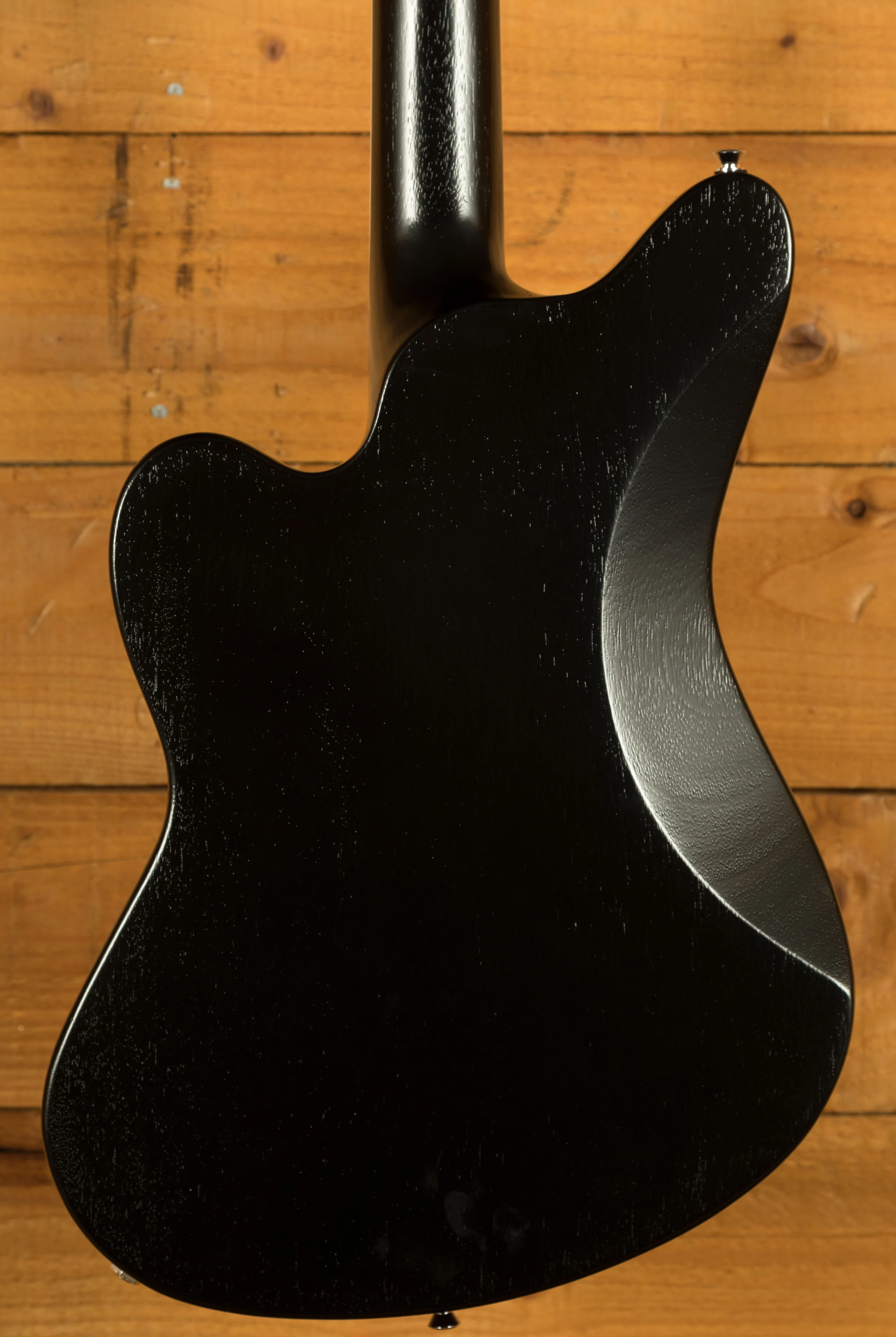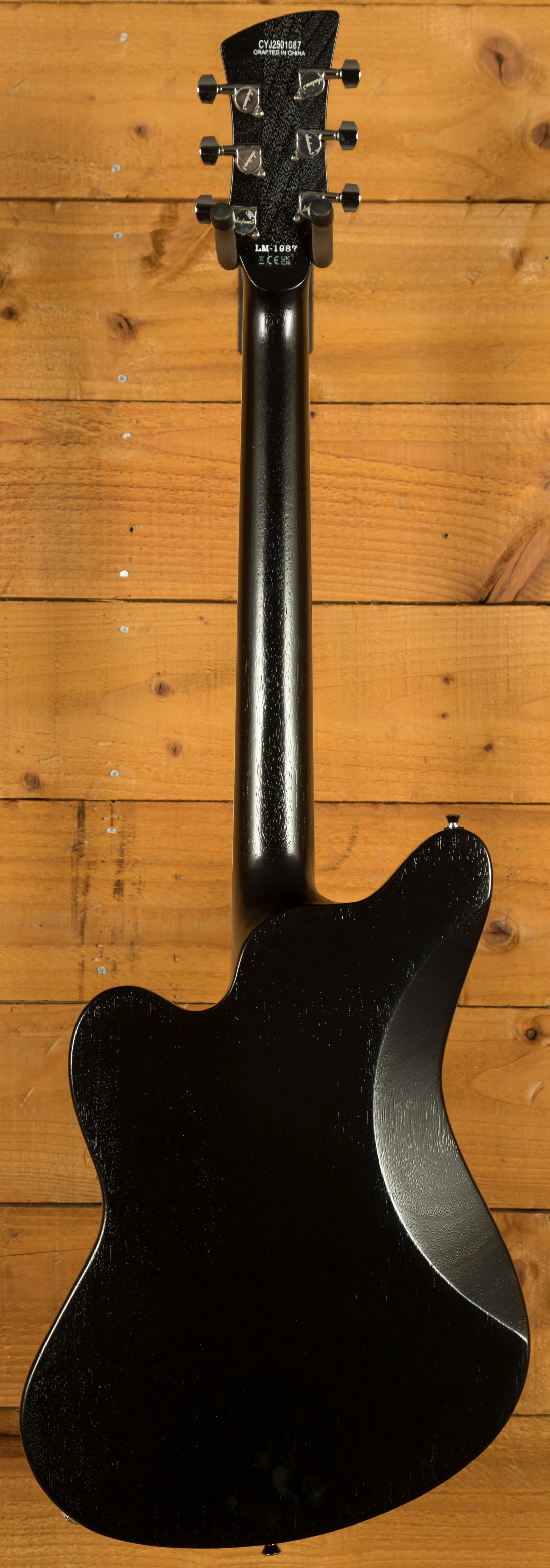 The LM-87's offset Surfcaster body shape offers a unique blend of vintage aesthetics and contemporary appeal. Constructed from okoume, a tonewood known for its warm resonance and balanced response, the body is finished with a thin open-pore finish, allowing the wood's natural grain to shine through. This finish not only contributes to the guitar's organic look but also allows the wood to breathe, enhancing its tonal characteristics. The bound body and neck add a touch of elegance, while the distinct 3-ply pickguard and chrome hardware provide striking visual accents.