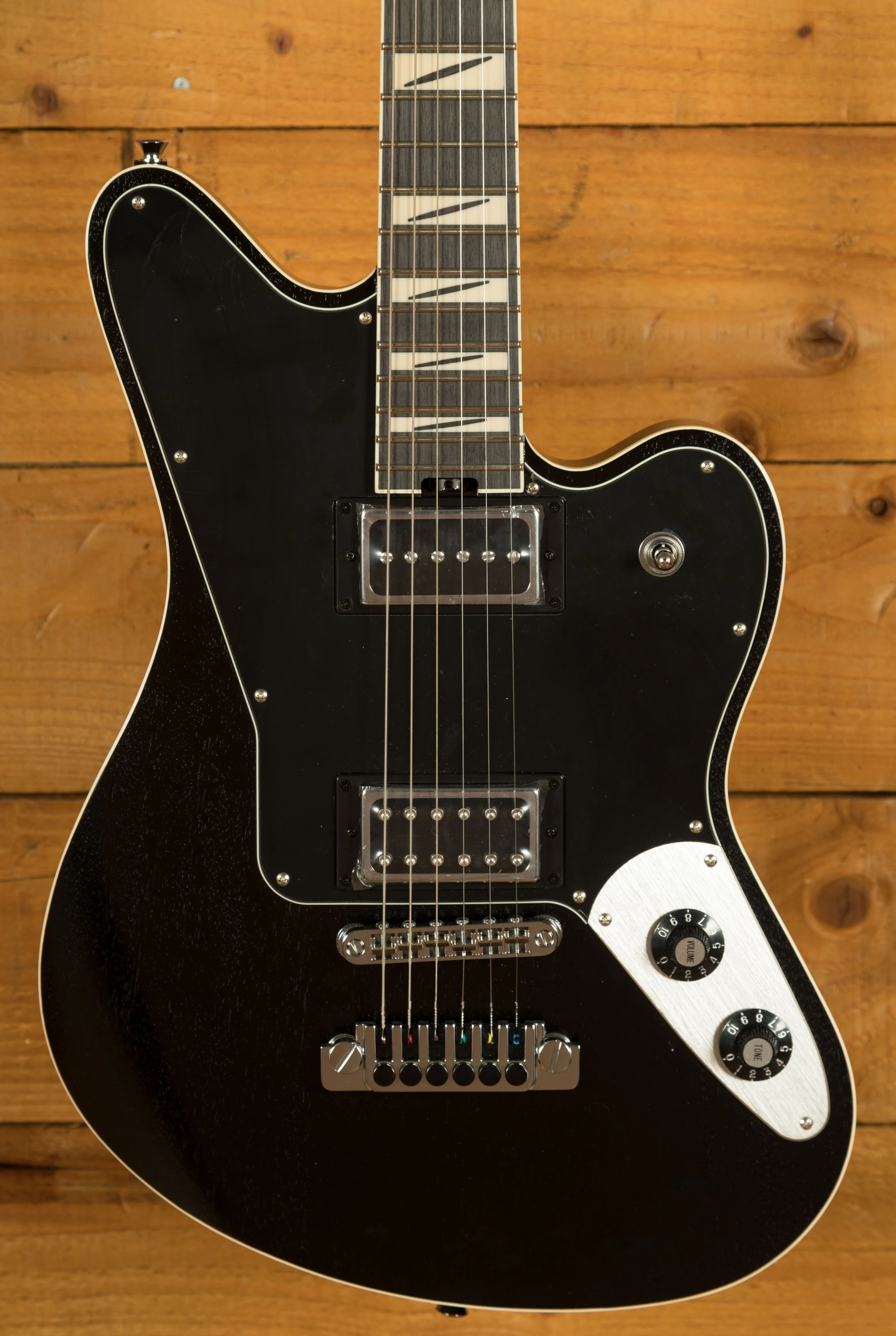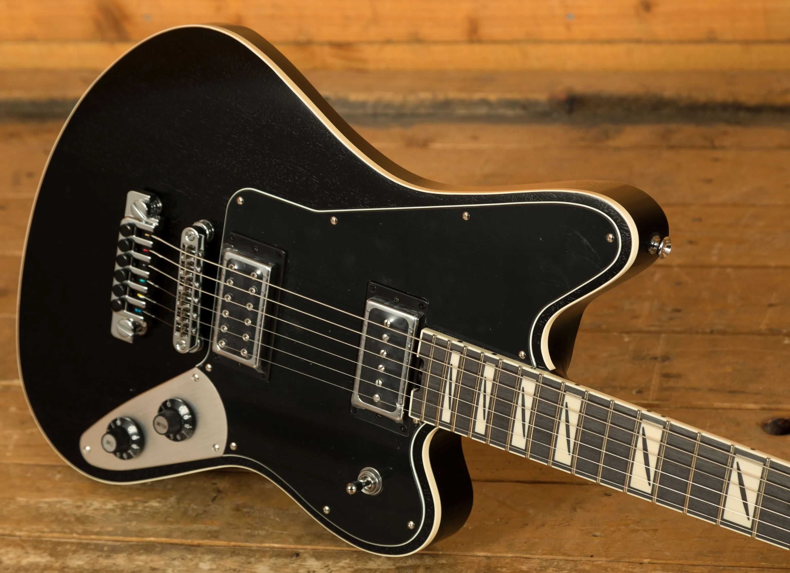 The guitar's hardware is designed for maximum stability and performance. The TOM-style bridge with anchored tailpiece and fine tuners ensures rock-solid tuning stability, even with heavy picking and aggressive playing. This is particularly important for players who utilise drop tunings, as it prevents unwanted string slippage and maintains accurate intonation.
