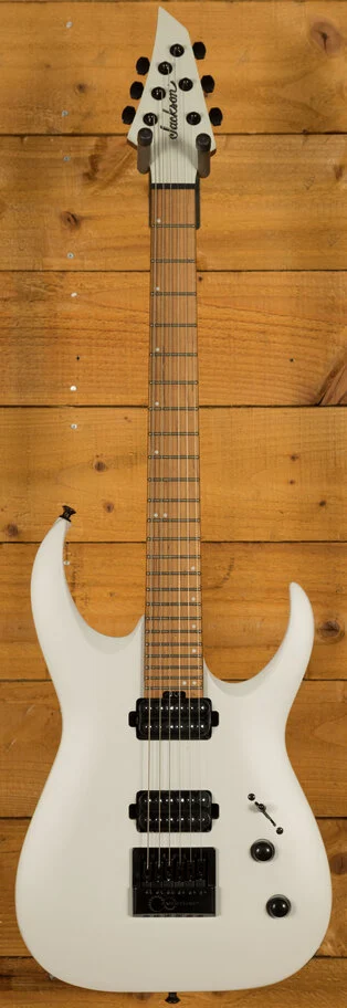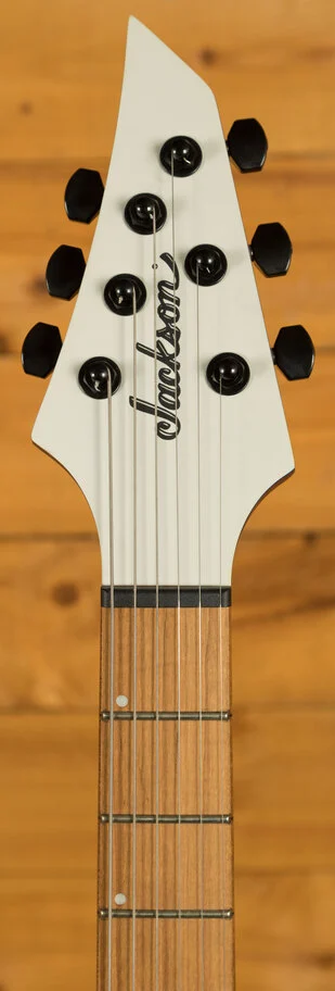 This 6-string Juggernaut is wrapped in a statement-making Chalk Gray finish with a color matched reverse Jackson 3x3 AT-1 headstock and black hardware.