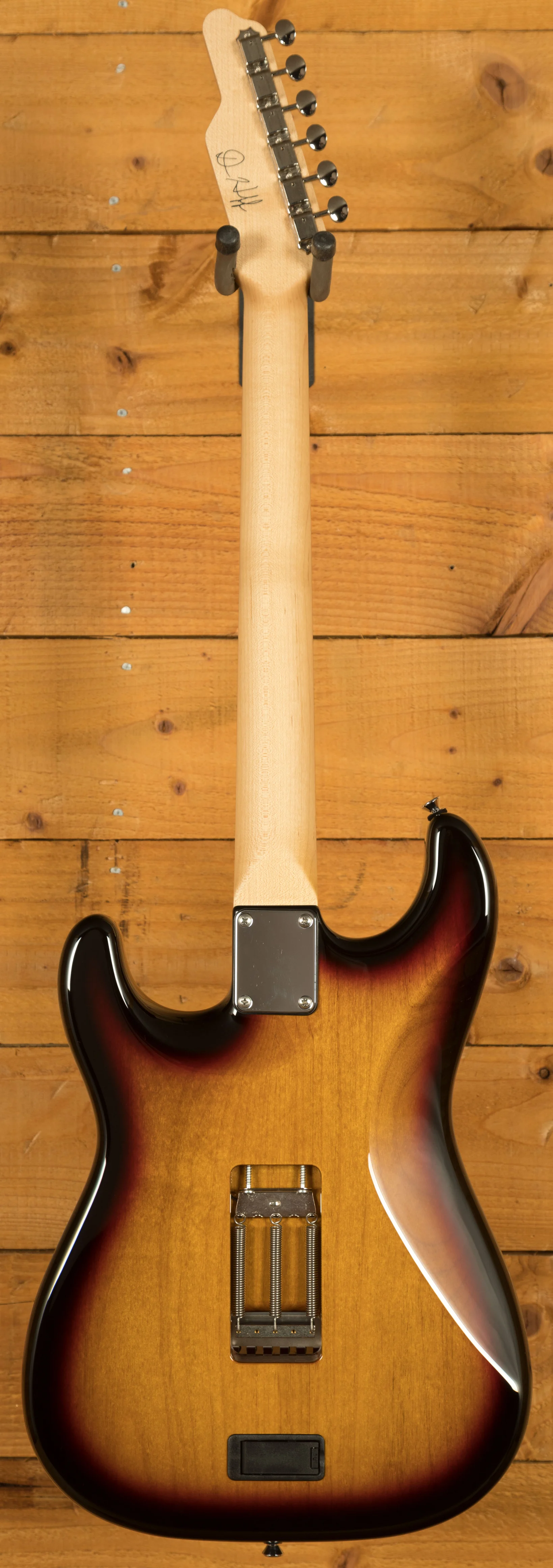 Pickups: The pickups on this guitar are actually Seymour Duncans like those in Dann's original. The Hot Stacks in neck and middle positions offer a powerful ceramic bar magnet with stacked coils, delivering more midrange and a stronger attack than standard single-coil pickups. Its overwound design, with a blade instead of rod magnets, ensures even string balance, no drop-outs during bends, and a beefed-up tone without the usual single-coil hum. The JB(50mm) is one of the most popular pickups on the market with its versatile tones thanks to the full low end, crisp highs, and upper-midrange bump.