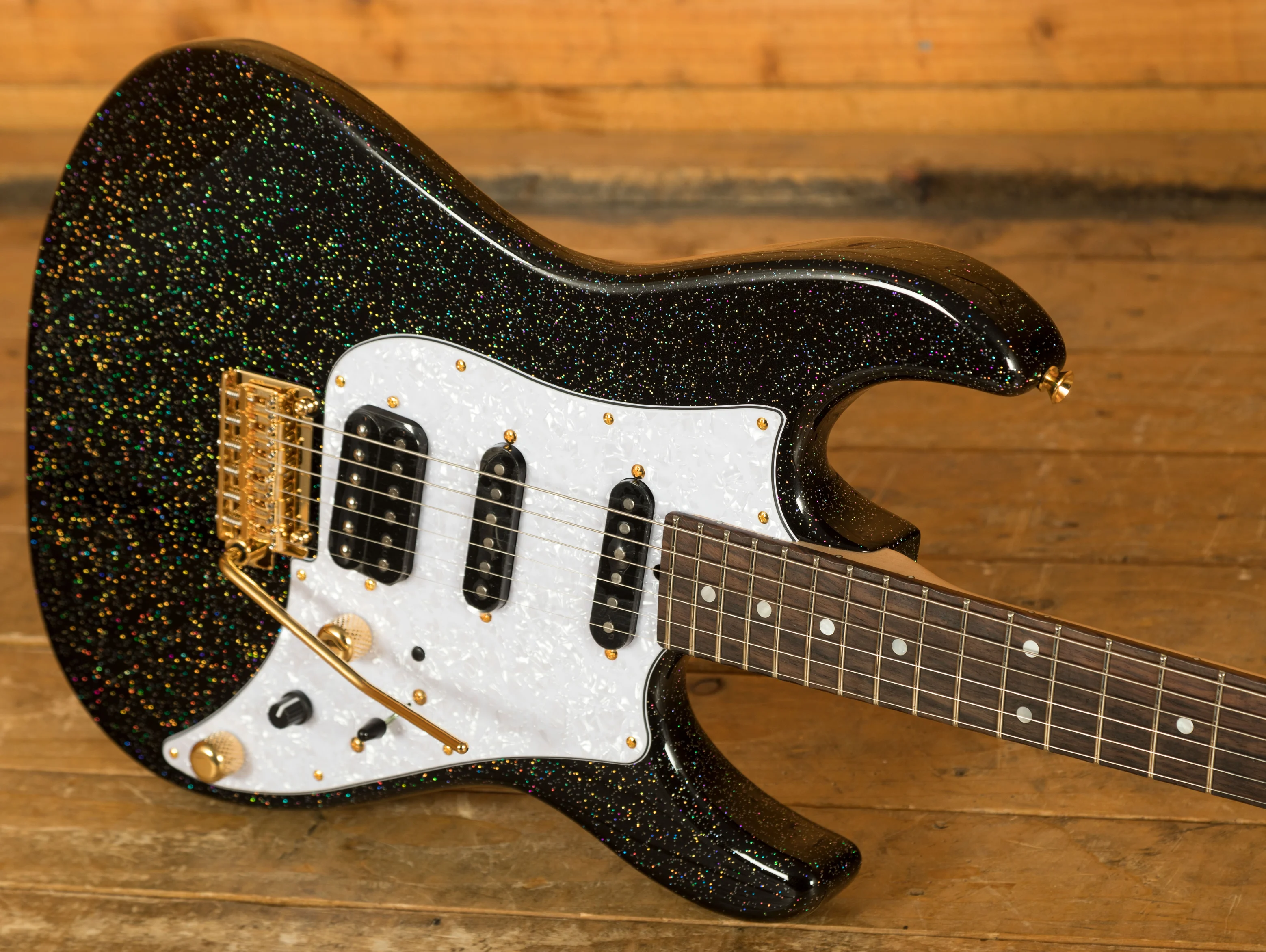 Neck and Fretboard: The neck is made from Canadian maple, paired with an Indian rosewood fretboard inlayed with Mother of Pearl dots and Luminlay side dots. This combination provides exceptional smooth playability and a warm, rich tonal character. Featuring a comfortable Standard 59 neck, this guitar feels amazing to play on, measuring .850" at the 1st fret and .980" at 12th. A 10"-14" compound radius helps to keep chords easy to fret on the lower frets and stops bends fretting out on the higher frets. Paired with a 42mm bone nut width for a familiar feel. Fretted with Jescar 51100 frets.