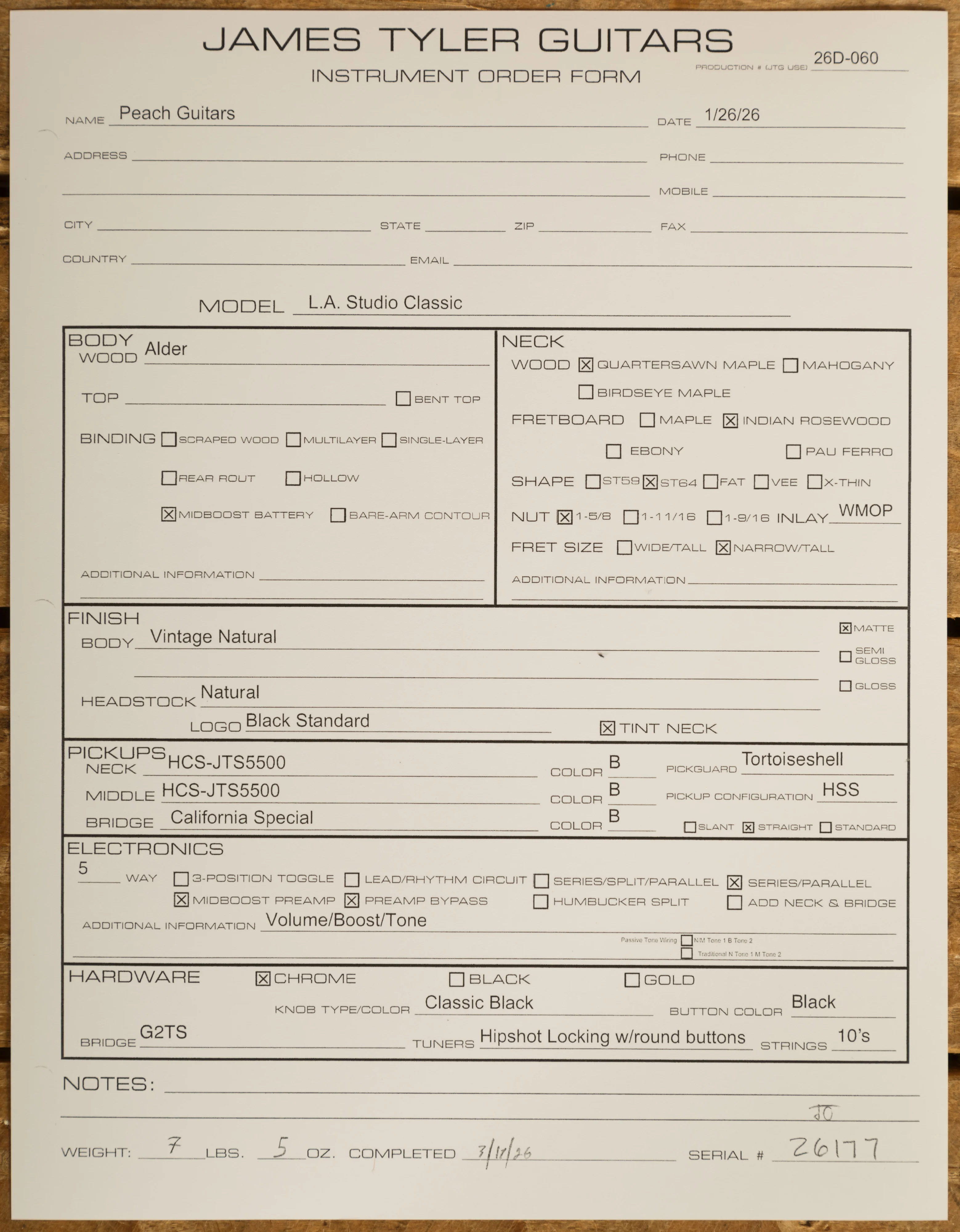 Case: The guitar comes with a Tyler Signature Hardshell Case, providing premium protection and durability.
